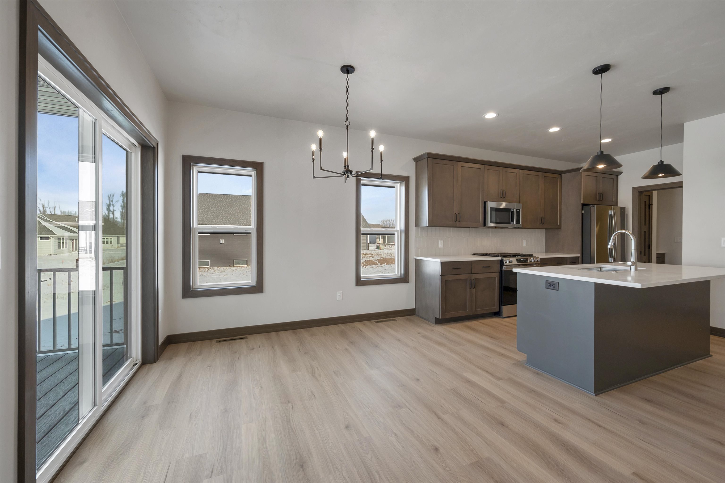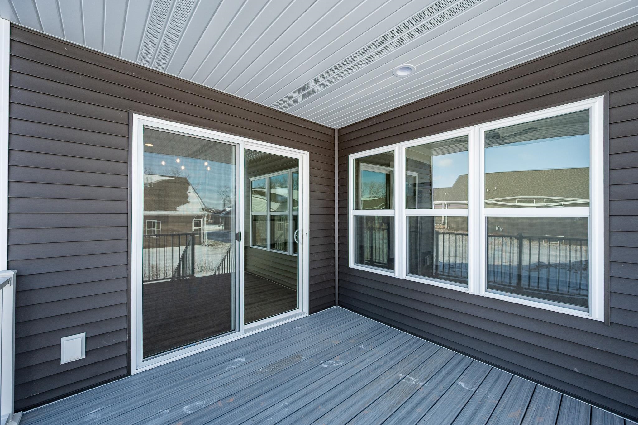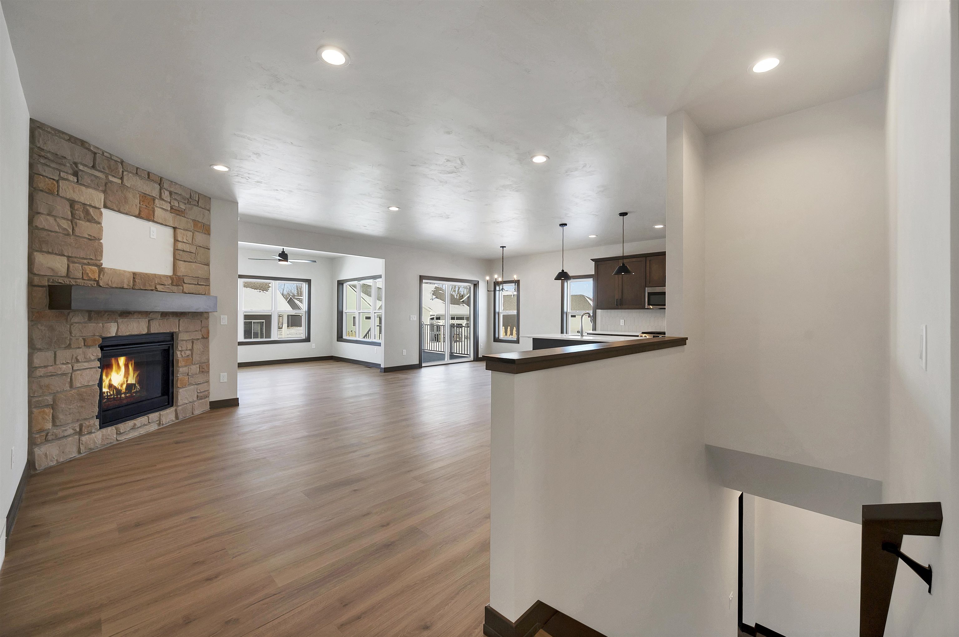 Welcome to the Hidden Creek HOA community. This thoughtfully designed new construction home offers 2 beds & 2 baths with an open-concept layout designed for everyday living. The zero-entry design includes an 11x7 covered front porch and easy main-level access throughout. The living room features a cozy fireplace & opens to a 10x10 covered deck, creating comfortable indoor and outdoor living year-round. The kitchen includes a large island, walk-in pantry, & modern finishes. The primary suite offers a tray ceiling, walk-in closet, & custom tiled shower. Additional highlights include first-floor laundry & an unfinished lower level with an egress window, ready for future expansion. HOA amenities include a clubhouse, pool, fitness area, lawn care, and snow removal for low-maintenance living.