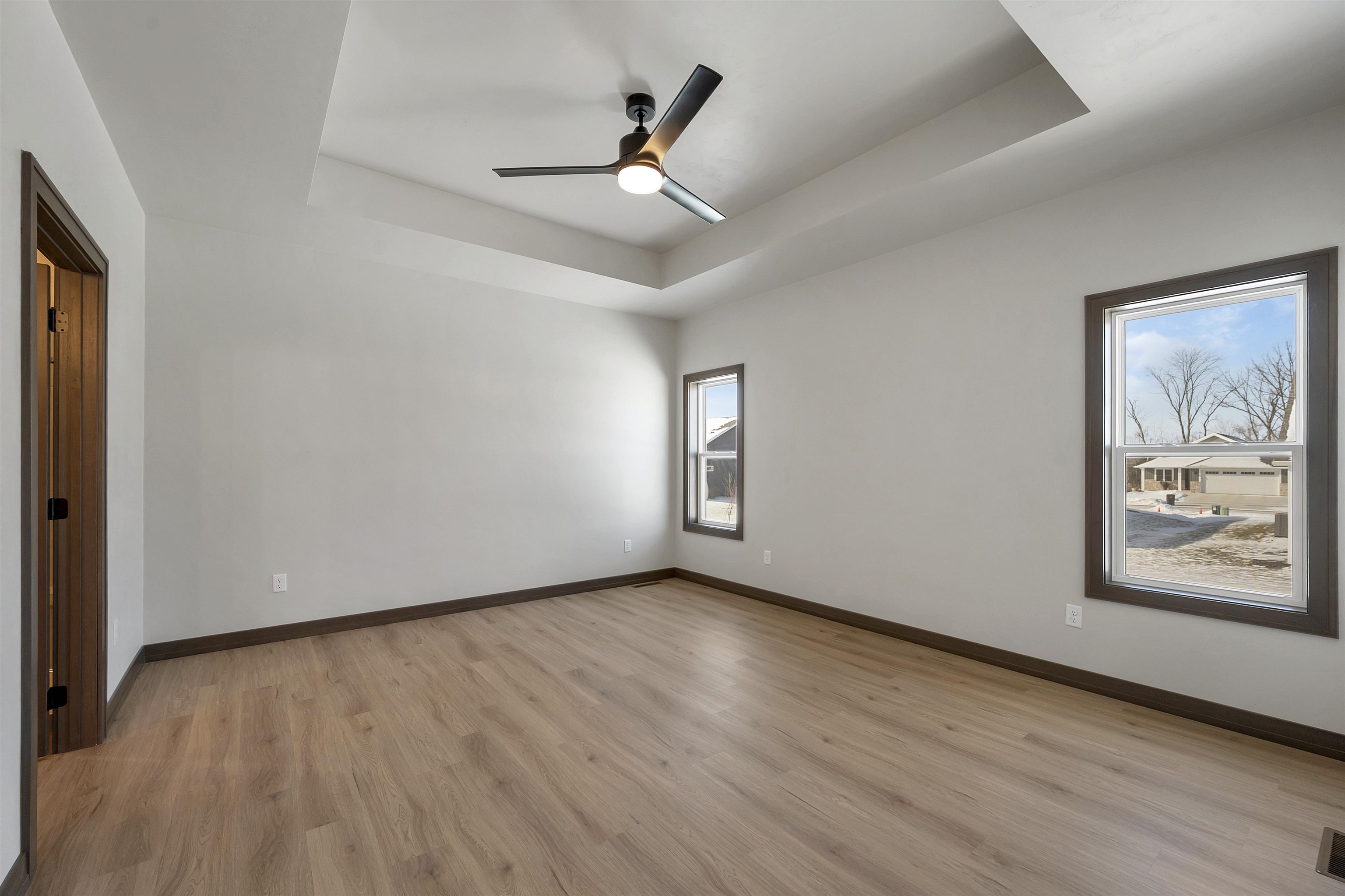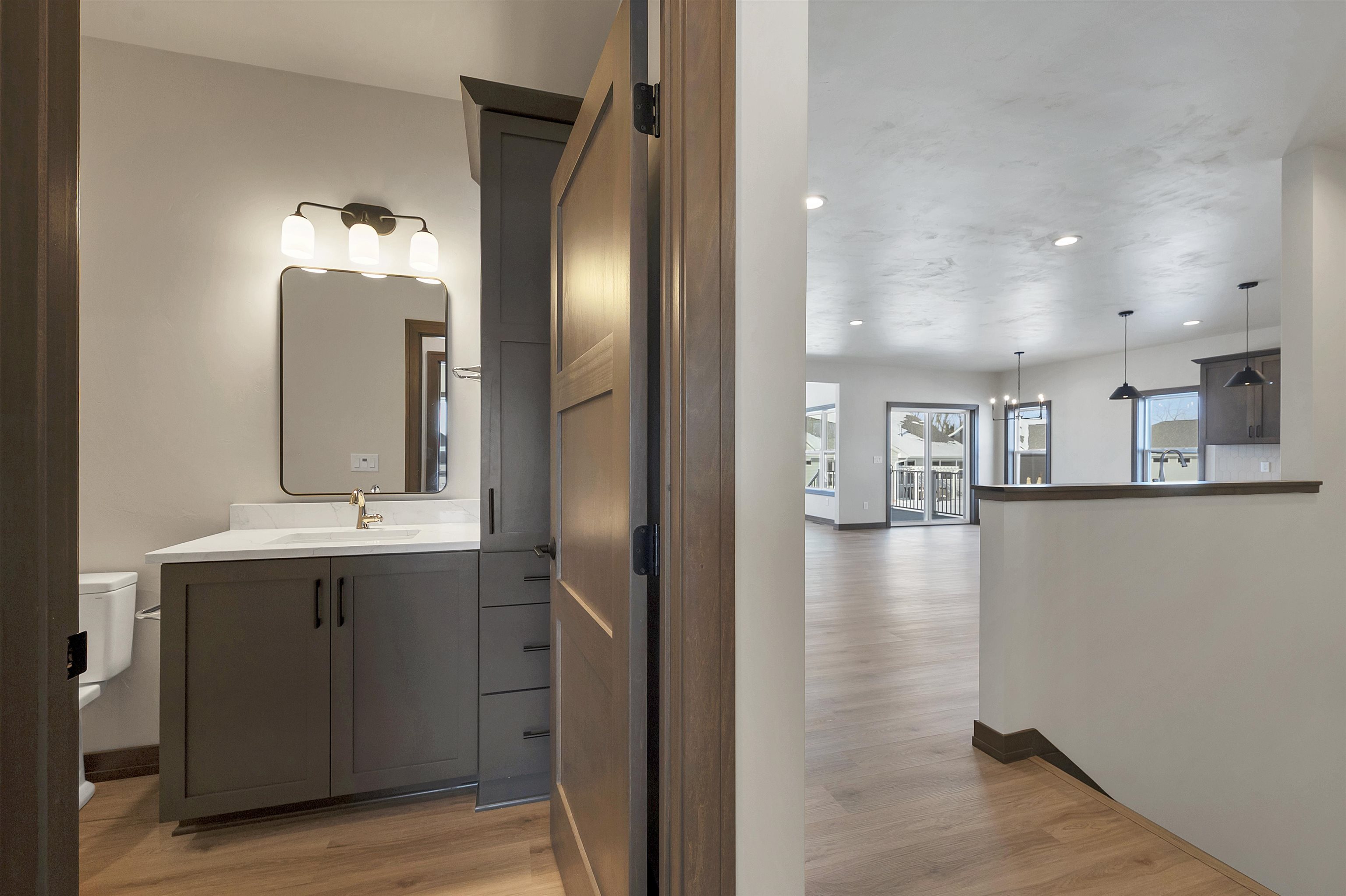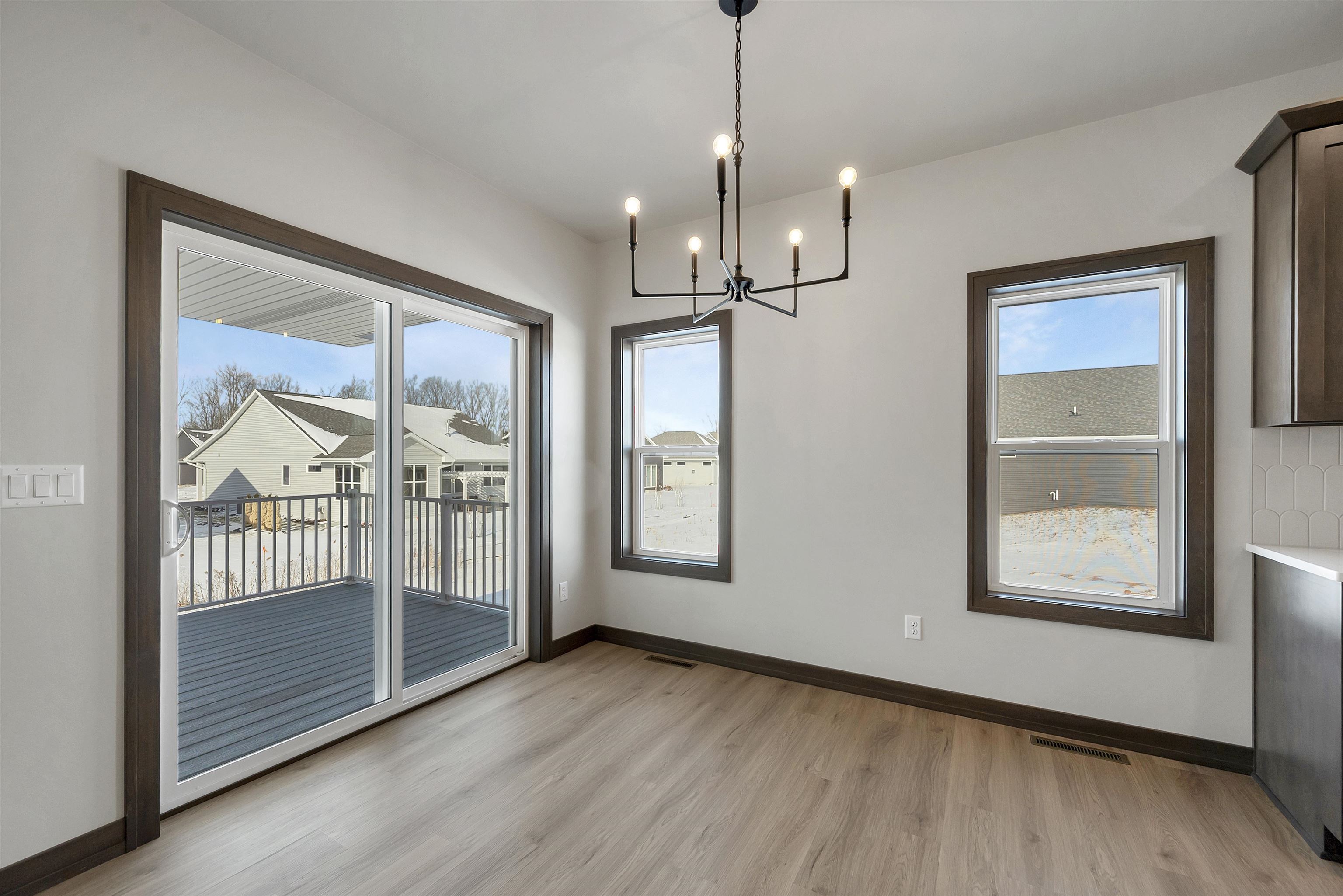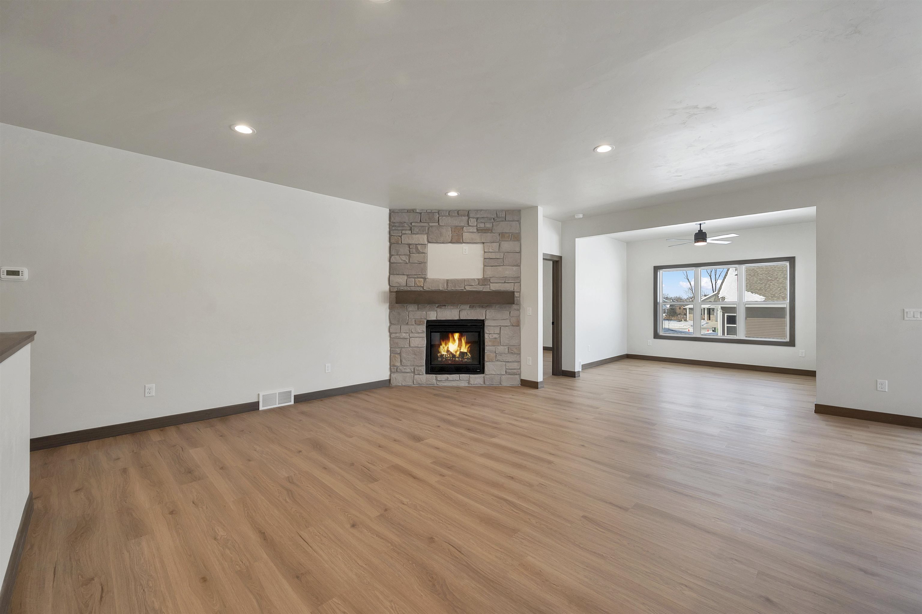 Welcome to the Hidden Creek HOA community. This thoughtfully designed new construction home offers 2 beds & 2 baths with an open-concept layout designed for everyday living. The zero-entry design includes an 11x7 covered front porch and easy main-level access throughout. The living room features a cozy fireplace & opens to a 10x10 covered deck, creating comfortable indoor and outdoor living year-round. The kitchen includes a large island, walk-in pantry, & modern finishes. The primary suite offers a tray ceiling, walk-in closet, & custom tiled shower. Additional highlights include first-floor laundry & an unfinished lower level with an egress window, ready for future expansion. HOA amenities include a clubhouse, pool, fitness area, lawn care, and snow removal for low-maintenance living.