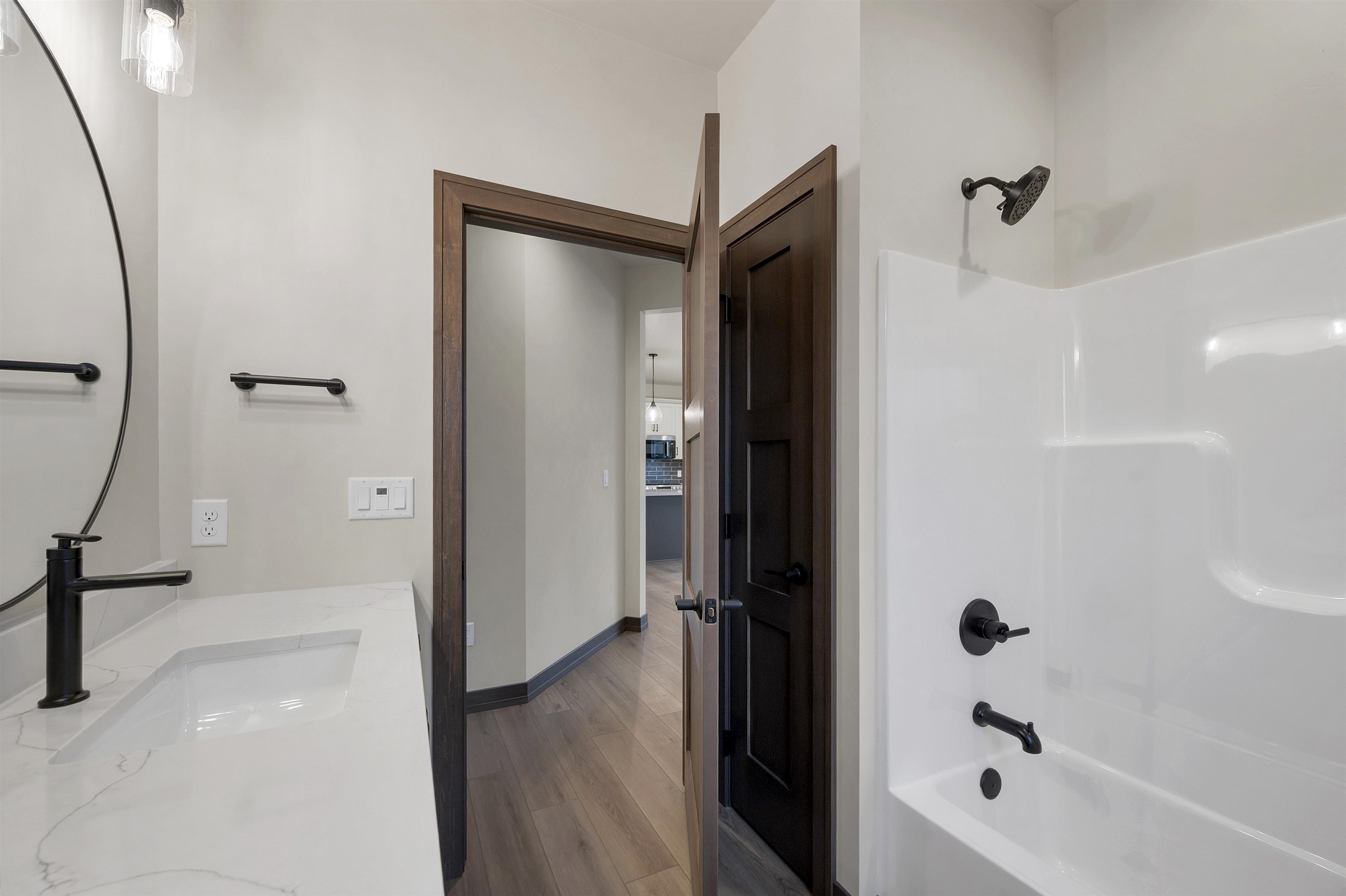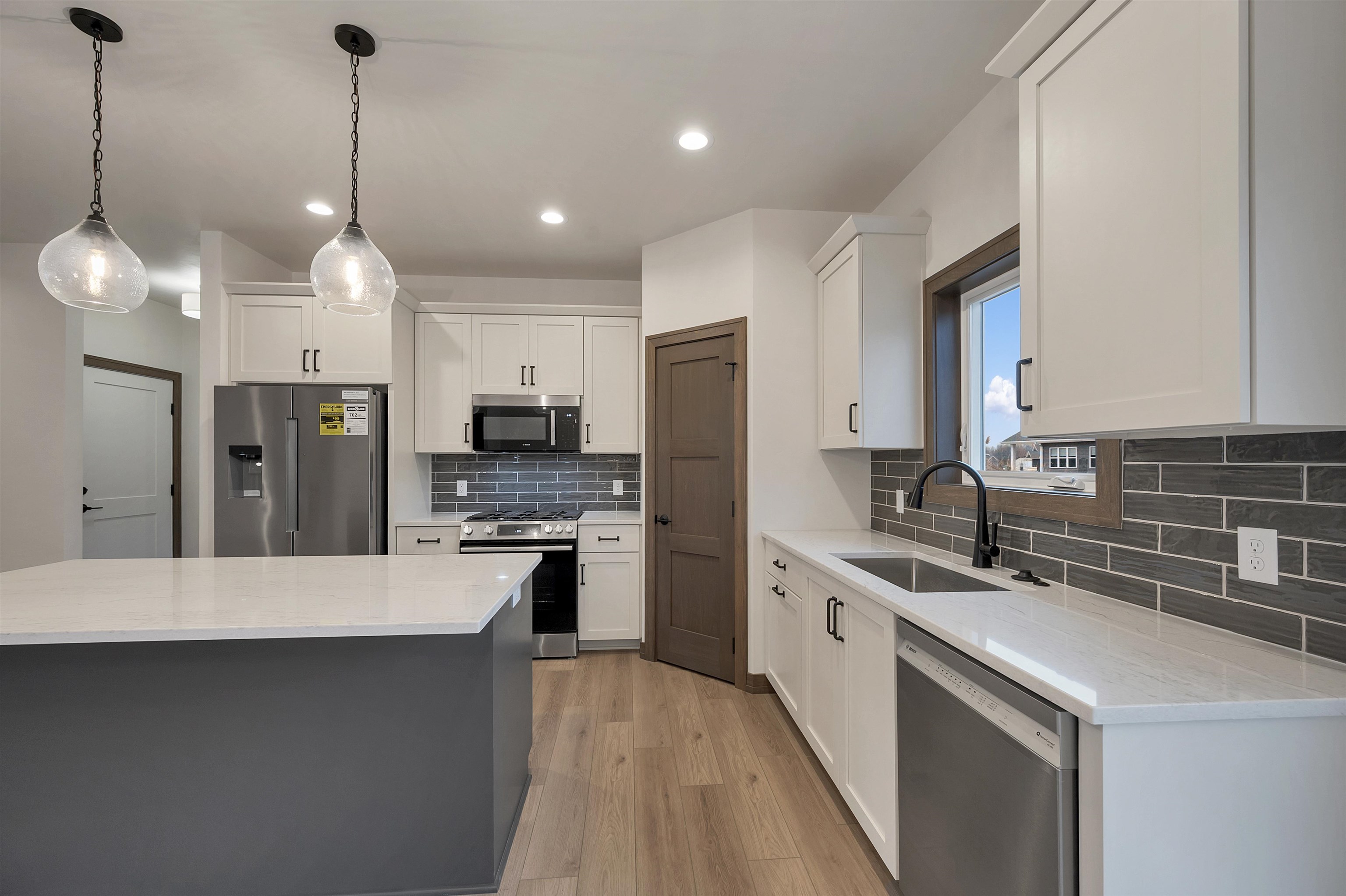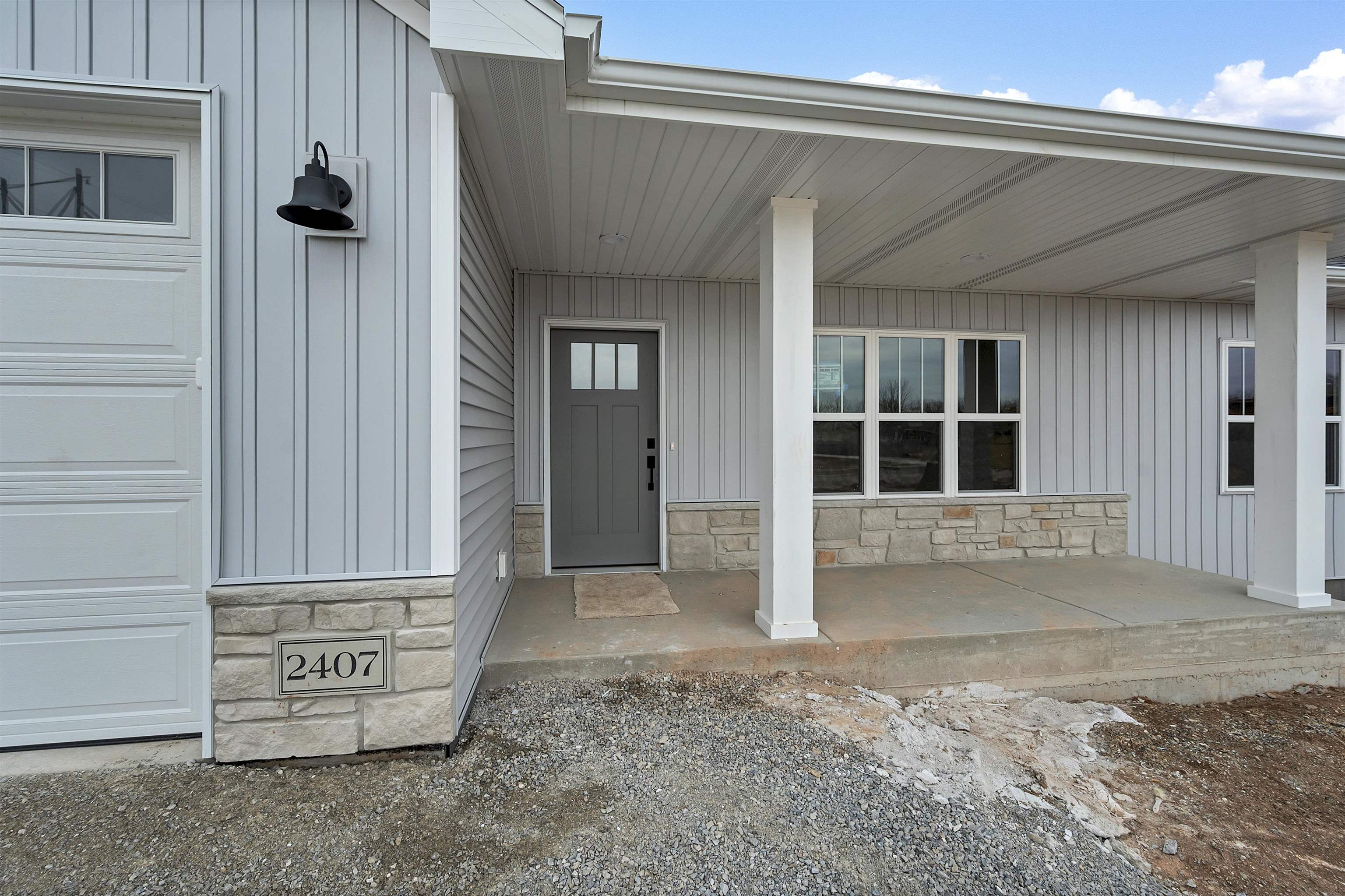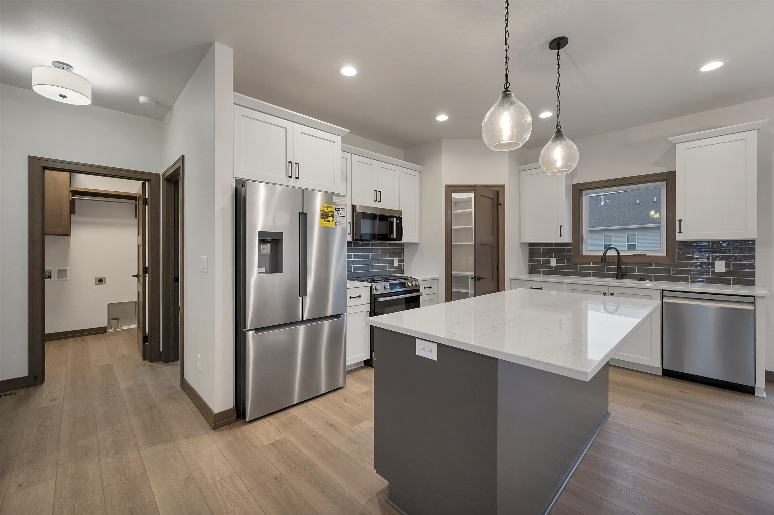 Welcome to the Hidden Creek HOA community. This thoughtfully designed new construction home offers 3 bedrooms and 2 bathrooms with an open-concept layout designed for everyday living. The zero-entry design includes an 18x6 covered front porch and easy main-level access throughout. The living room features a cozy fireplace and opens to a 12x12 patio for outdoor enjoyment. The kitchen includes a large island, walk-in pantry, and modern finishes. The primary suite offers a tray ceiling, walk-in closet, and a custom tiled shower. Additional features include first-floor laundry and an unfinished lower level with an egress window, ready for future expansion. HOA amenities include a clubhouse, pool, fitness area, lawn care, and snow removal for low-maintenance living. Photo is digitally enhanced.