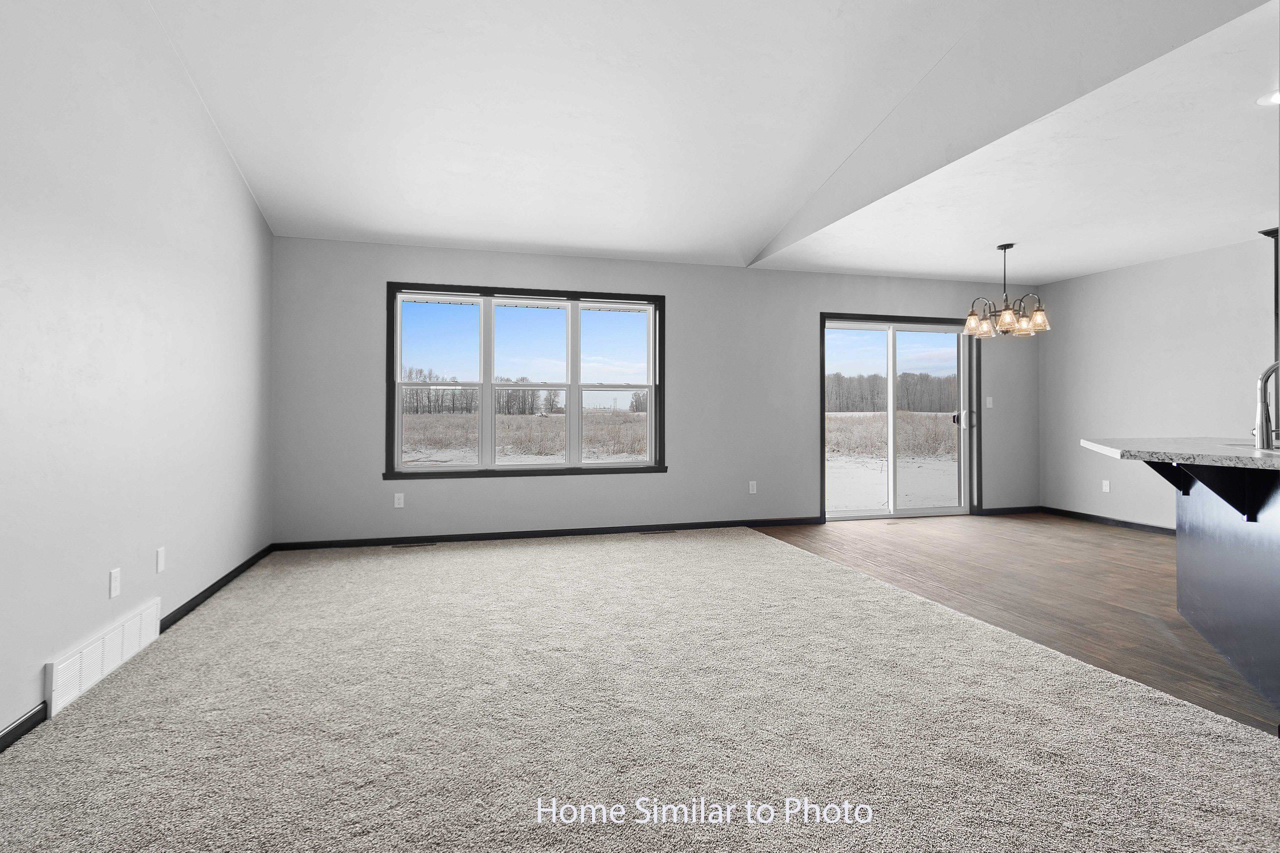 Stunning newly built 1,461sf ranch-style home located in the Village of Howard. This home has a split bdrm layout, welcoming you w/spacious foyer that leads to LR w/cathedral ceilings. The beautiful dinette & kitchen showcase custom maple cabinets, island w/snack counter & sink, & SS dishwasher & microwave. The master bdrm has a walk-in closet & private bath featuring walk-in shower. Enjoy the convenience of first-floor lndry. The bsmt has exposure & plumbing in place for future bathroom. Park w/ease in the attached 2-stall garage. Outside, the home features horizontal vinyl siding per plan, stone per plan & shakes in roof peaks. Main photo is computer generated. Photos are similar but may not be exact. Virtual staging in photos.