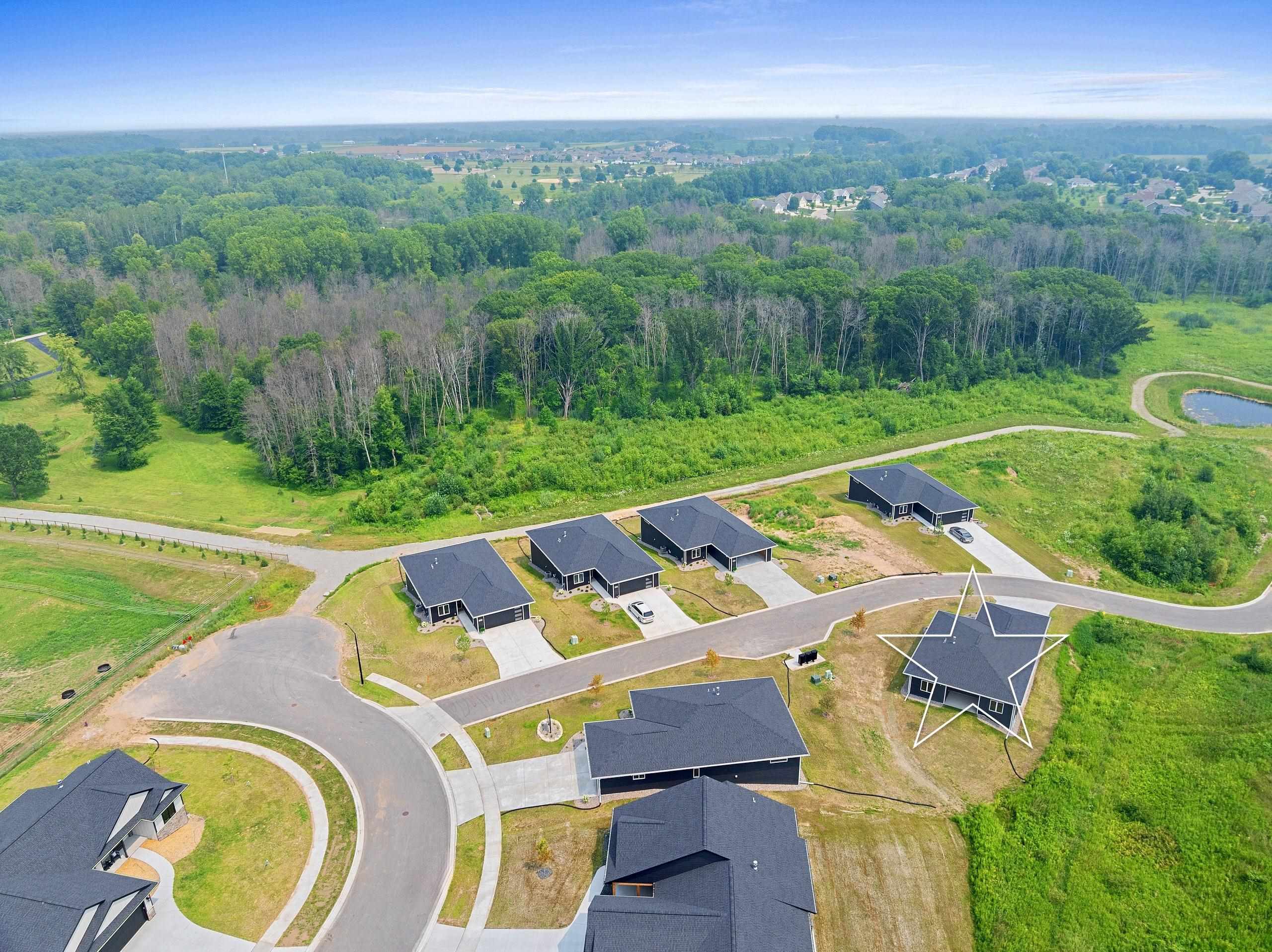 This is a free standing condo MLS #50313229. Gentle rolling hills provide a peaceful calming nature setting for this serence free standing condo community. Enjoy walks on the trail that includes a meadow area, woods & quiet streets. An equestrian center borders the property which further enhances the feeling of calm & provides beautiful visual interest. Competed unti 32 offers a zero entry from garage & front door, a gorgeous color palette, stunning nature views from all main living area, 2 bdrms, 2 full baths, great room w/ fp, dining area opens to a covered porch overlooking woods, all kitchen appliances & is a full LL w/ large daylight windows for plenty of future expansion if desired. Some pics virtually staged for inspo. Seller is a licensed agent in Arizona.