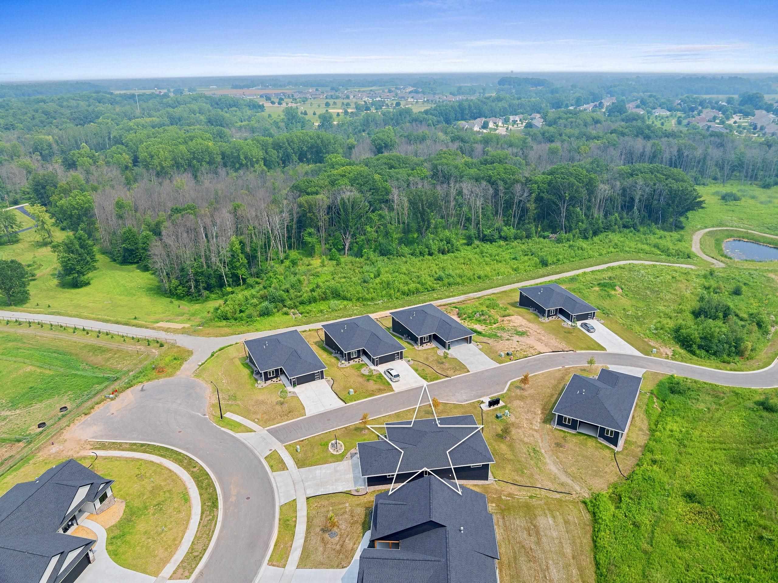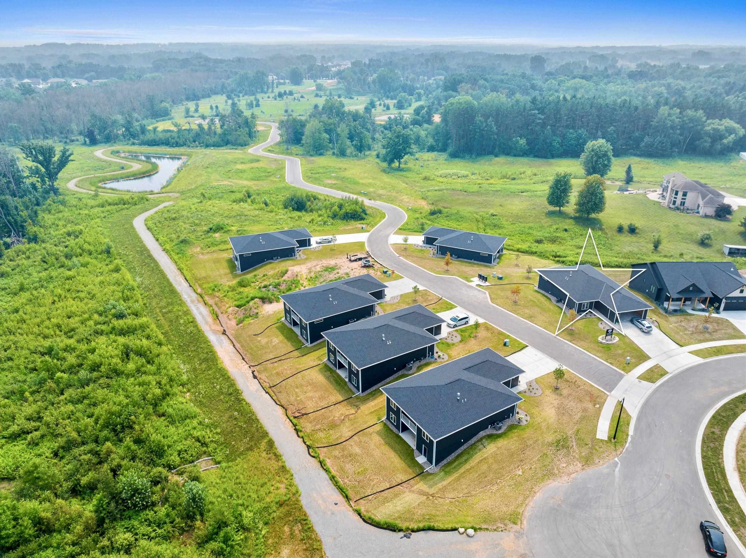 This is a free standing condo MLS #50313089. Gentle rolling hills provide a peaceful calming nature setting for this serene free standing condo community. Enjoy walks on the trail that includes a meadow area, woods & quiet streets. An equestrian center borders the property which further enhances the feeling of calm & provides beautiful visual interest. Complete unit 33 offers a zero entry from garage & front door, a gorgeous color palette, stunning nature views from all main living areas, 2 bdrms, 2 full baths, great room w/ fp, dining area opens to a covered porch overlooking woods, all kitchen appliances & full LL w/ large daylight windows/stubbed for bath for plenty of future expansion if desired. Some pics virtually staged for inspo. Seller is a licensed agent in Arizona.