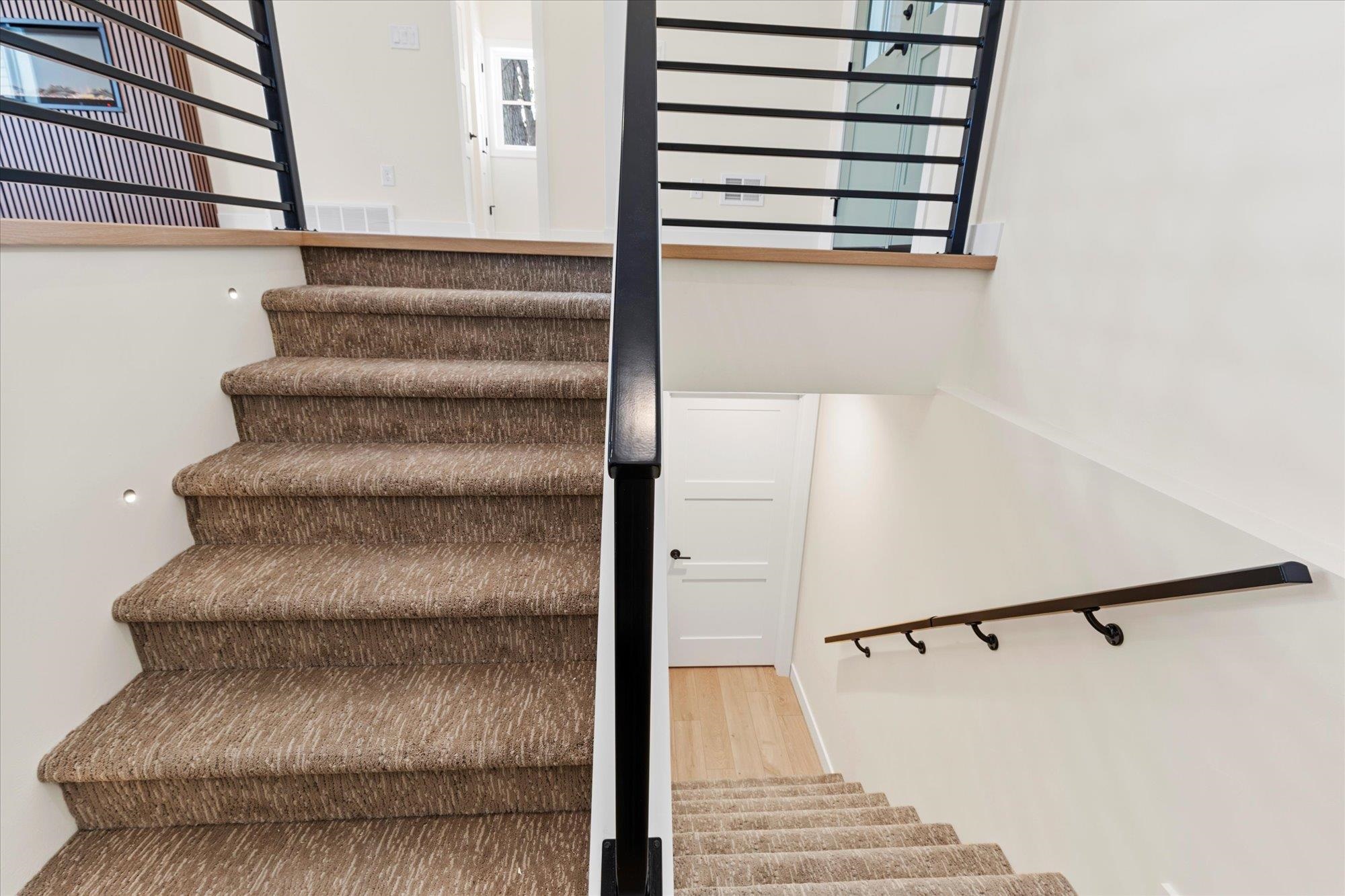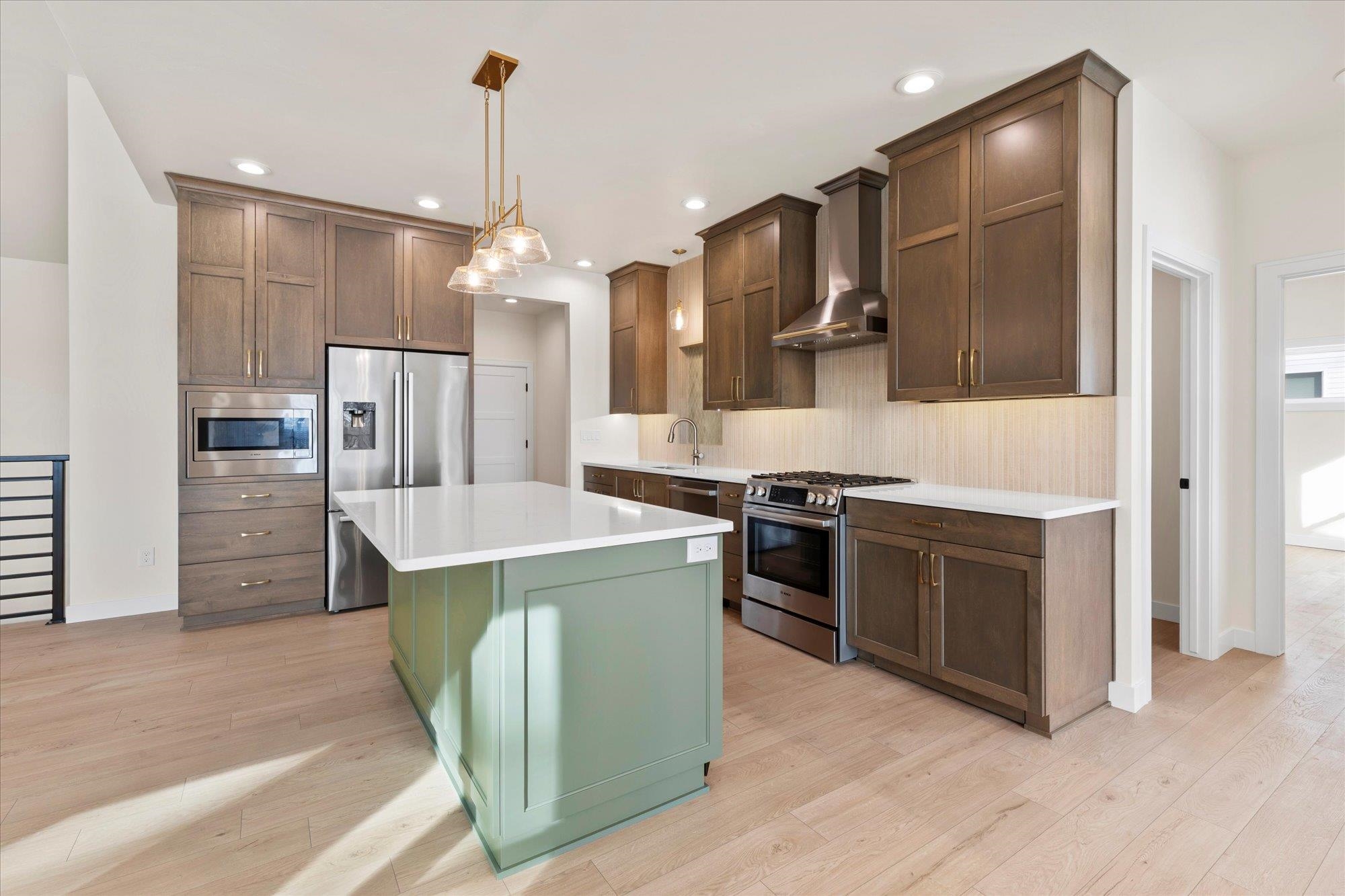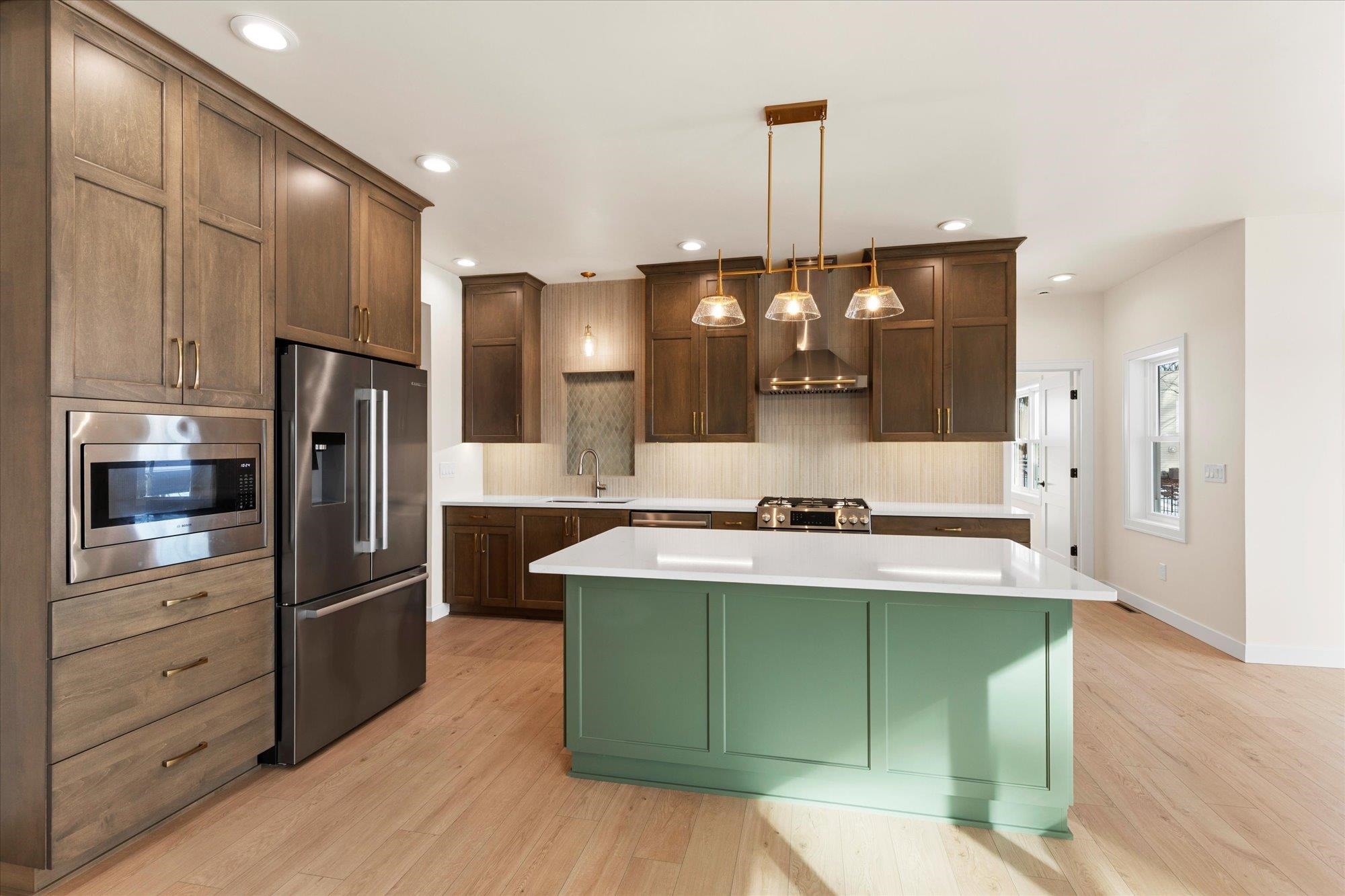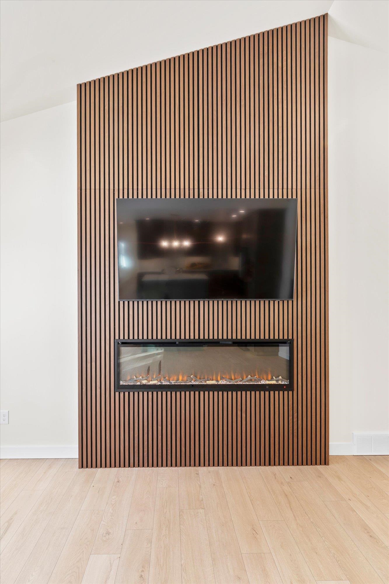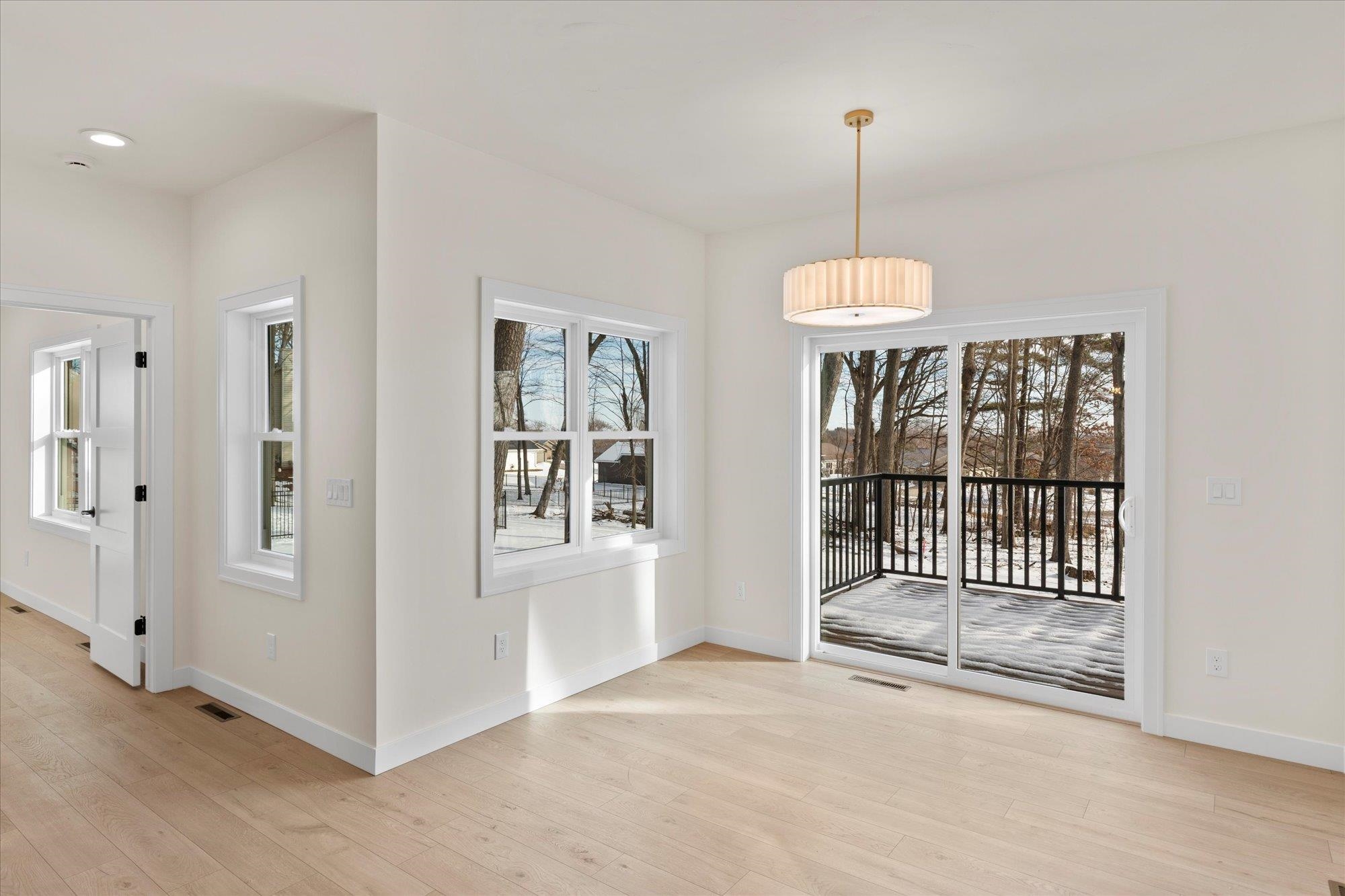 Beautiful 3-bedroom, 2.5-bath home in the sought-after Howard-Suamico School District offering 1,750 sq ft on a private wooded .42-acre lot. The open-concept main level features vaulted ceilings, expansive windows, and a floor-to-ceiling custom slat fireplace with sleek linear insert. The kitchen includes rich cabinetry, quartz countertops, stainless appliances, designer lighting, tile backsplash with accent niche, and a contrasting island. The primary suite offers dual vanities and a tiled walk-in shower. Exposed lower level is pre-plumbed for a future bath with space for a bedroom and family room. Focus on Energy Certified with high-efficiency systems.
