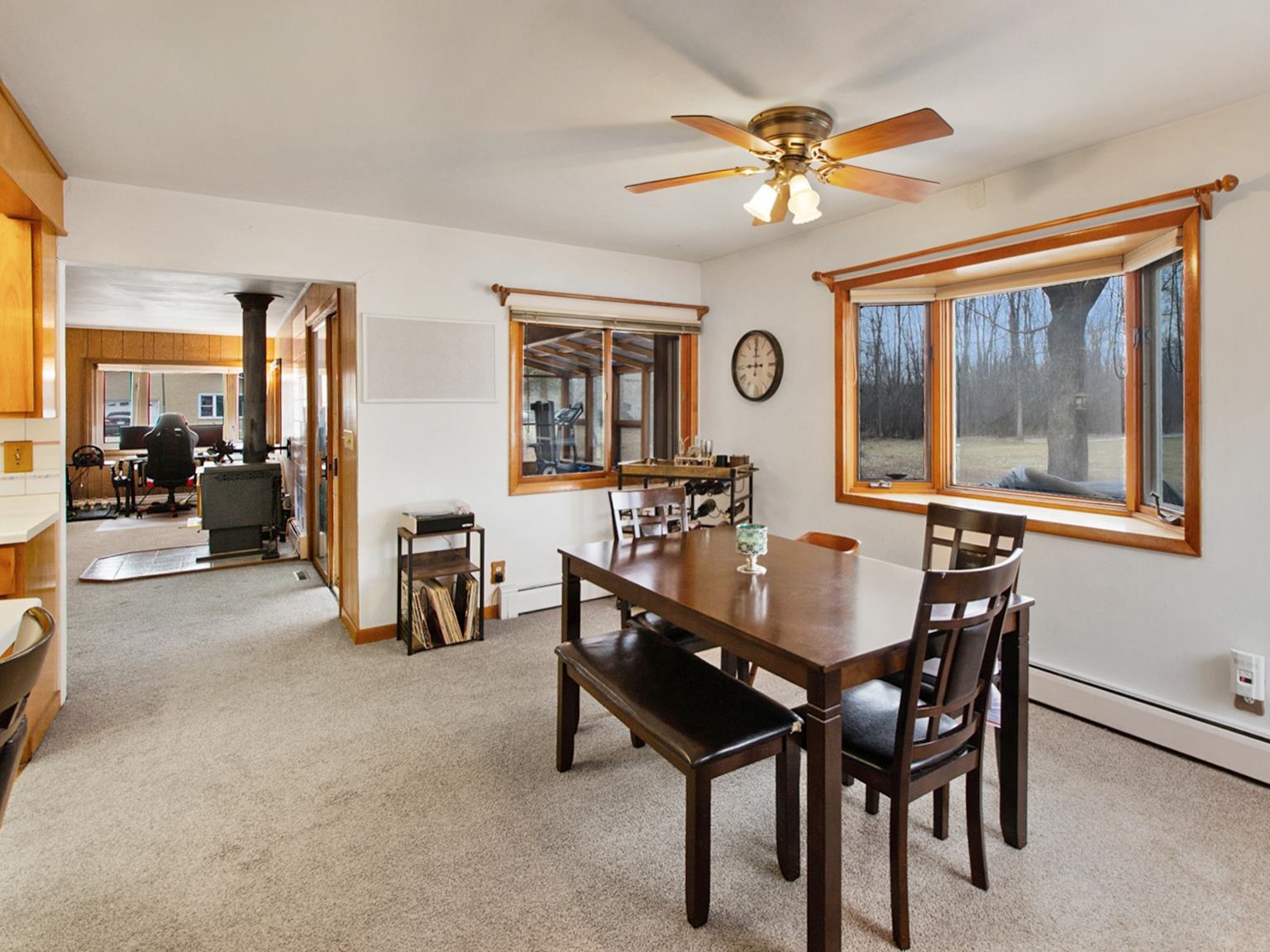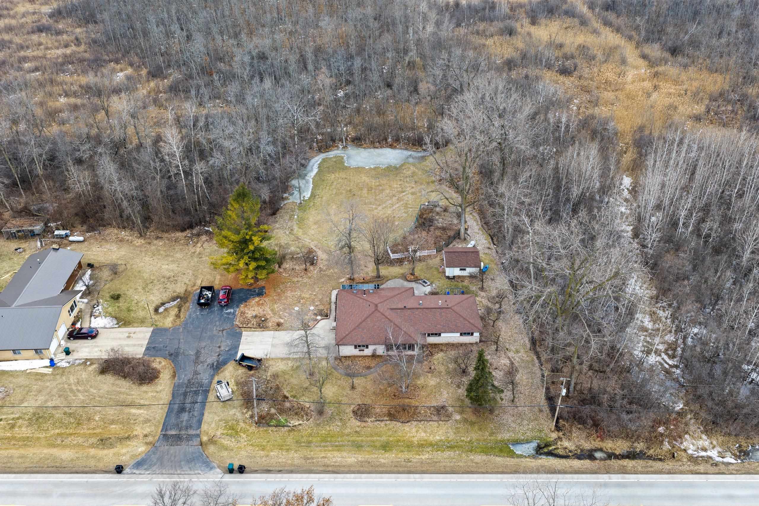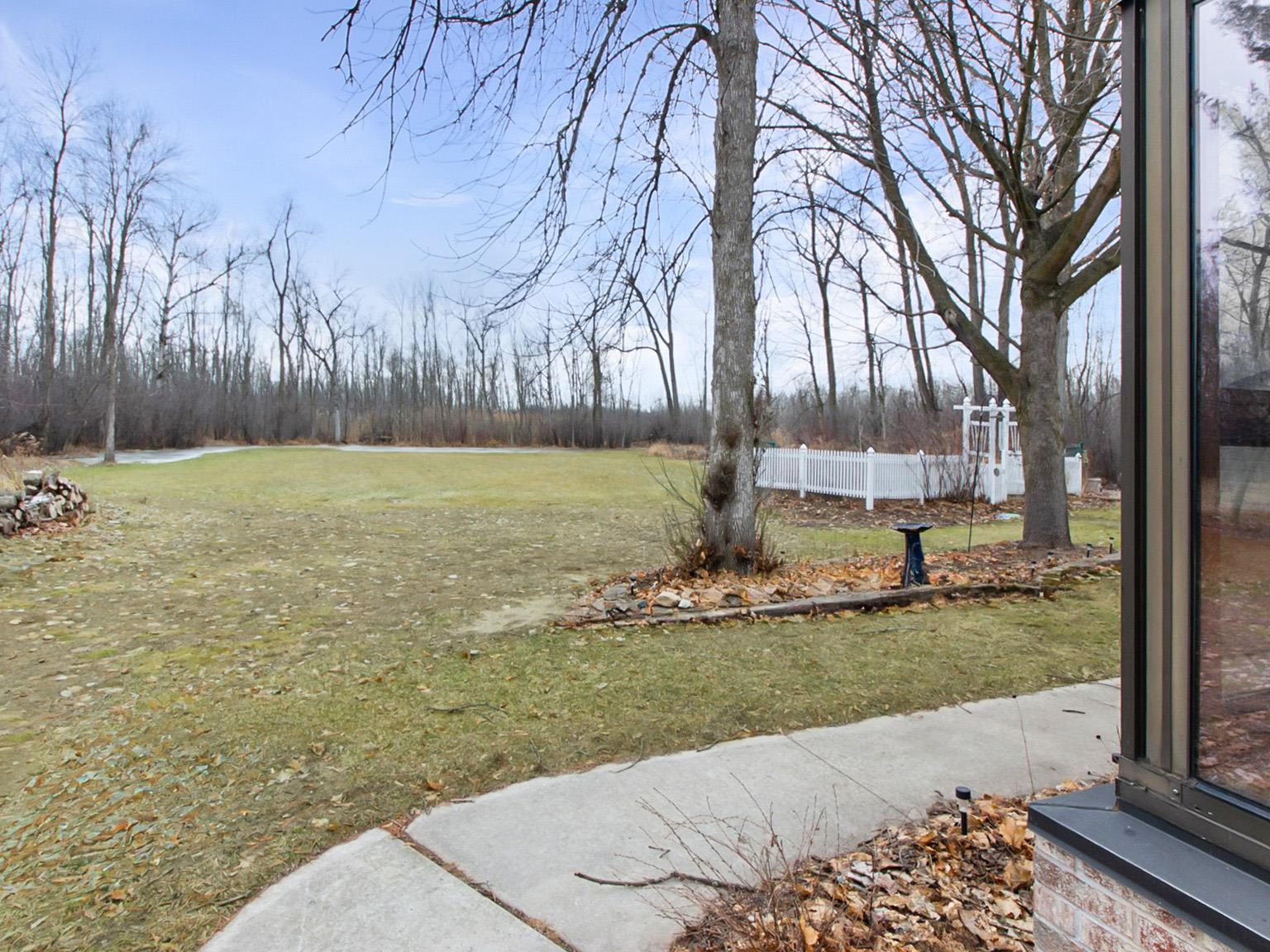 Spacious ranch set on a beautiful tree-lined 1-acre lot! Built in 1977, this well-maintained home offers 3 bedrooms, 2.5 baths, and a thoughtfully designed floor plan with a separate bedroom wing from the main entertaining spaces. The large kitchen provides abundant workspace and flows into the generous dining and family areas. A spectacular four-season sunroom, with zoned heating, offers the perfect place to enjoy morning coffee or relax year-round while overlooking the backyard. The primary bedroom features an ensuite bathroom with a new step-in tiled shower. Outside you'll find a large patio, perennial, and a fenced garden area, plus an additional 2-stall detached garage for extra storage or hobbies. A rare opportunity to enjoy space, privacy, and comfort on a scenic acre!