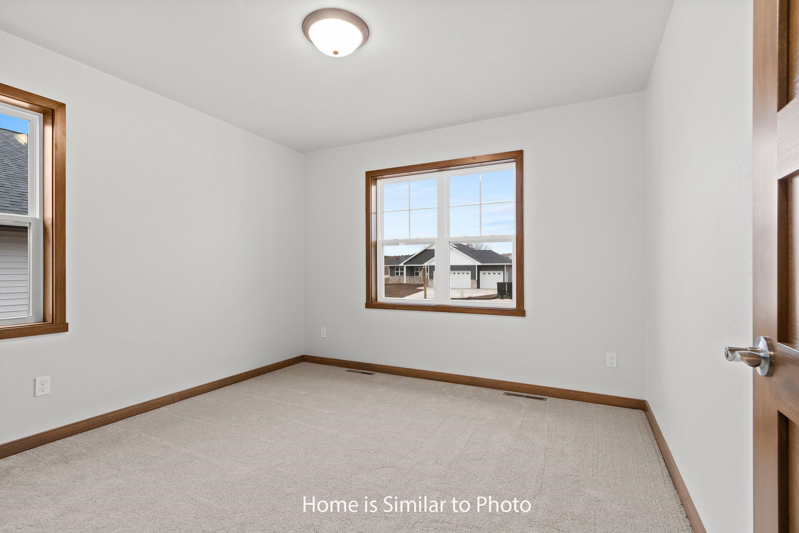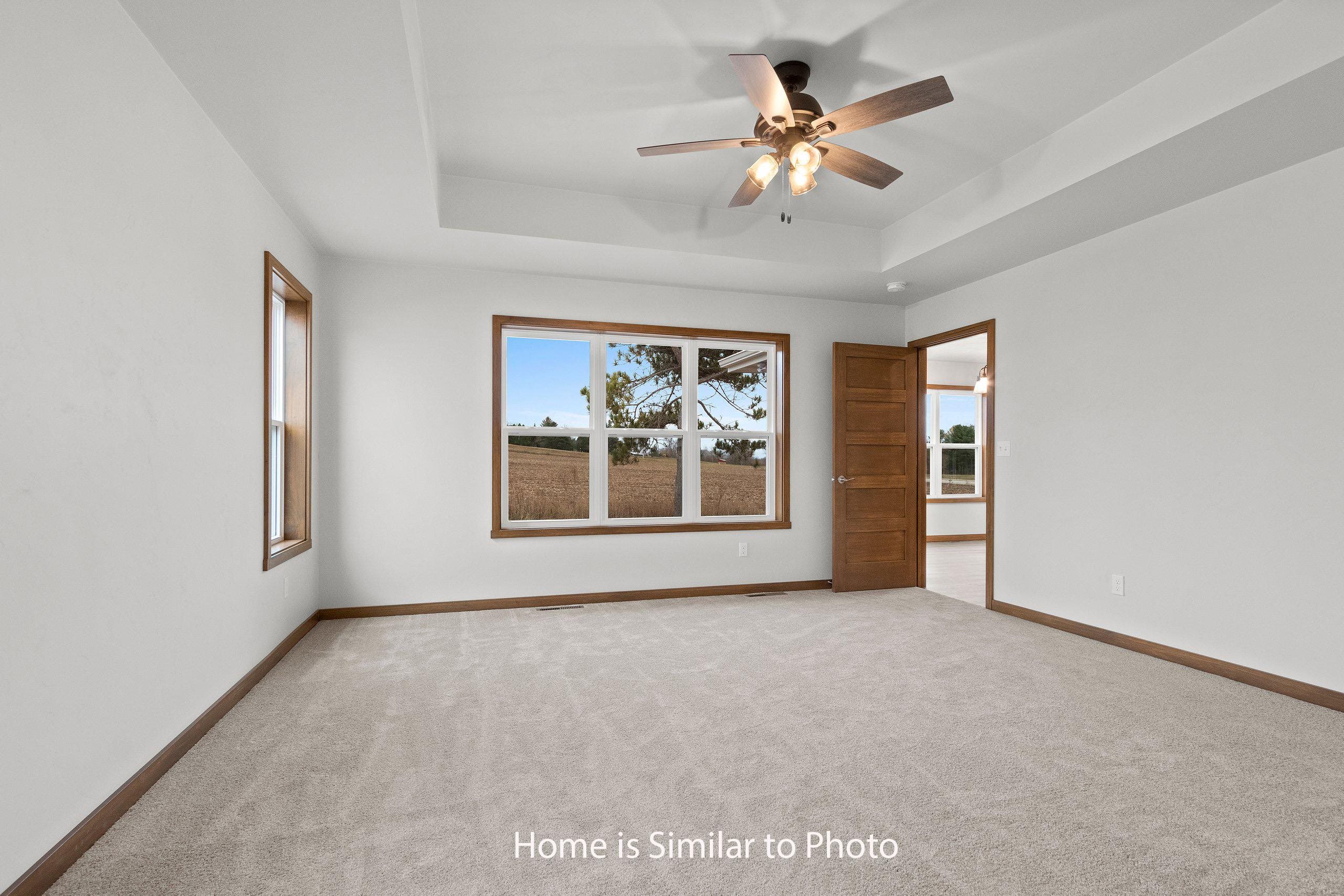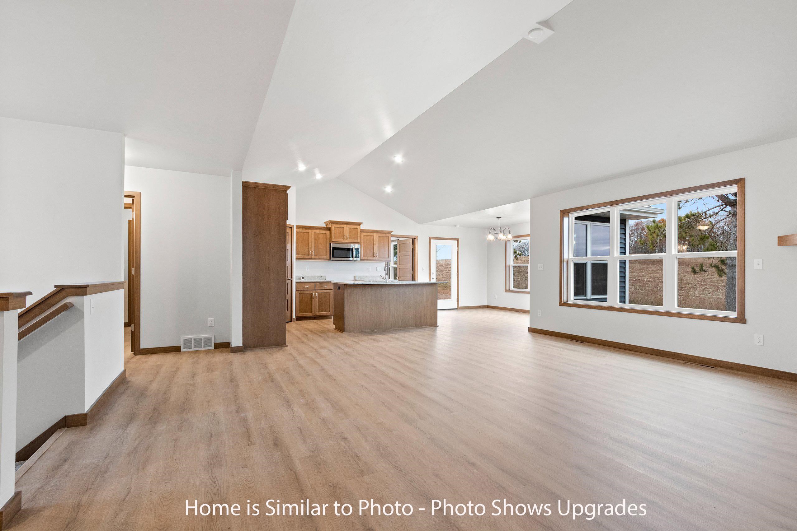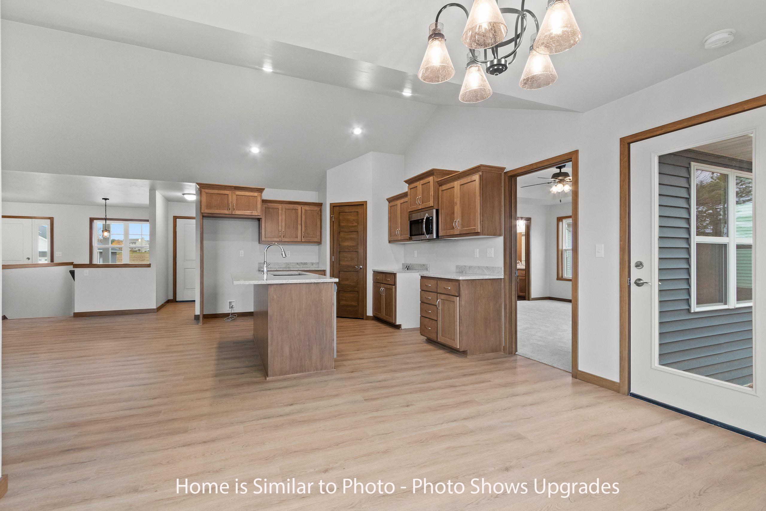 Must see new 1,800sf ranch located in the Village of Howard. Offers split bedroom design w/3 bedrooms & 2.5 baths. Step into large foyer opening up to nice sized living rm w/cathedral ceilings & gas FP. Kitchen has custom maple cabinets, walk-in pantry, island w/seating & storage & SS dishwasher & microwave. Dinette looking out to backyard. Convenient 1st-flr laundry w/lockers located off the half bath. Master suite w/tray ceiling, large walk-in closet w/laundry access & private bath w/double sinks & walk-in shower. Basement has egress window & is plumbed for a future bath. 3-stall attached garage. Exterior of home features stone, vertical vinyl siding & shakes in peaks all per plan. Main photo is computer generated. Photos are similar but may not be exact. Virtual staging in photos.