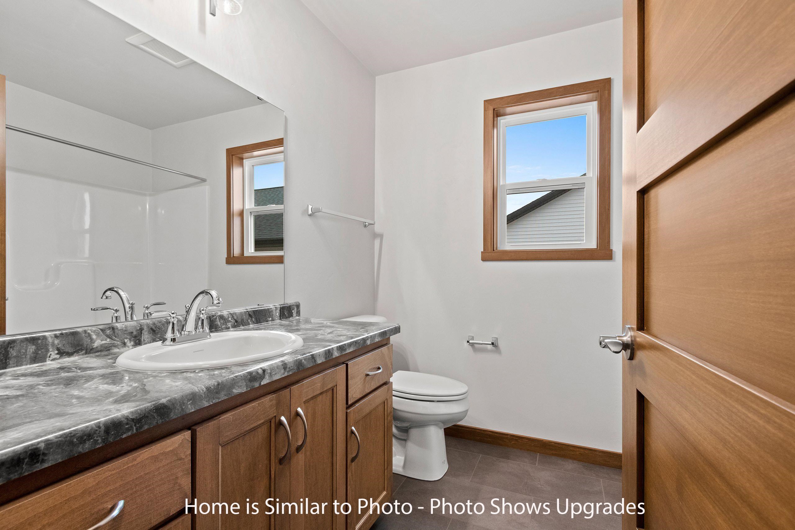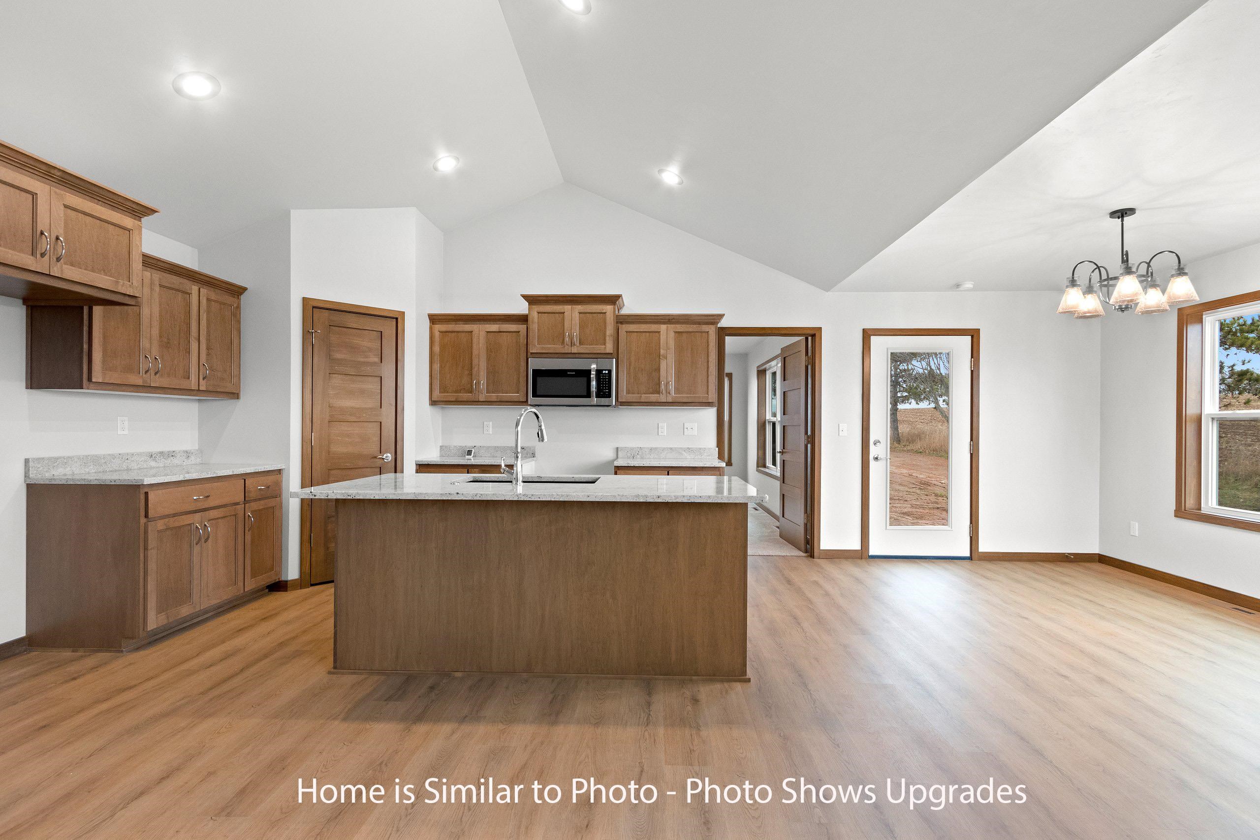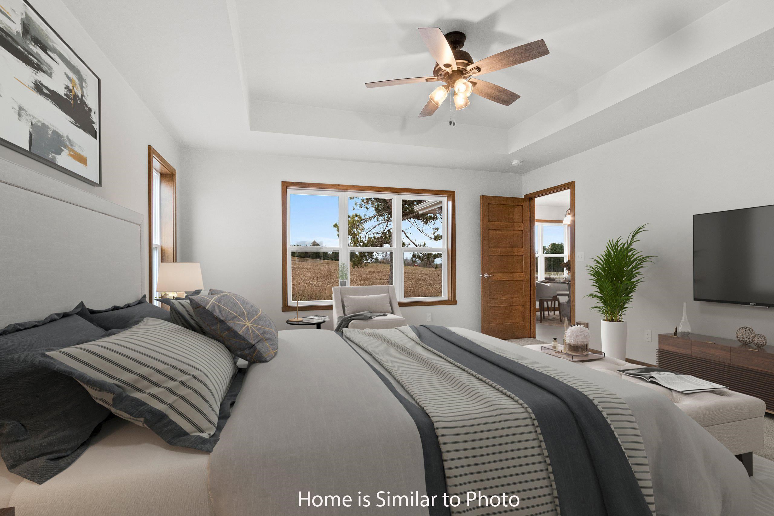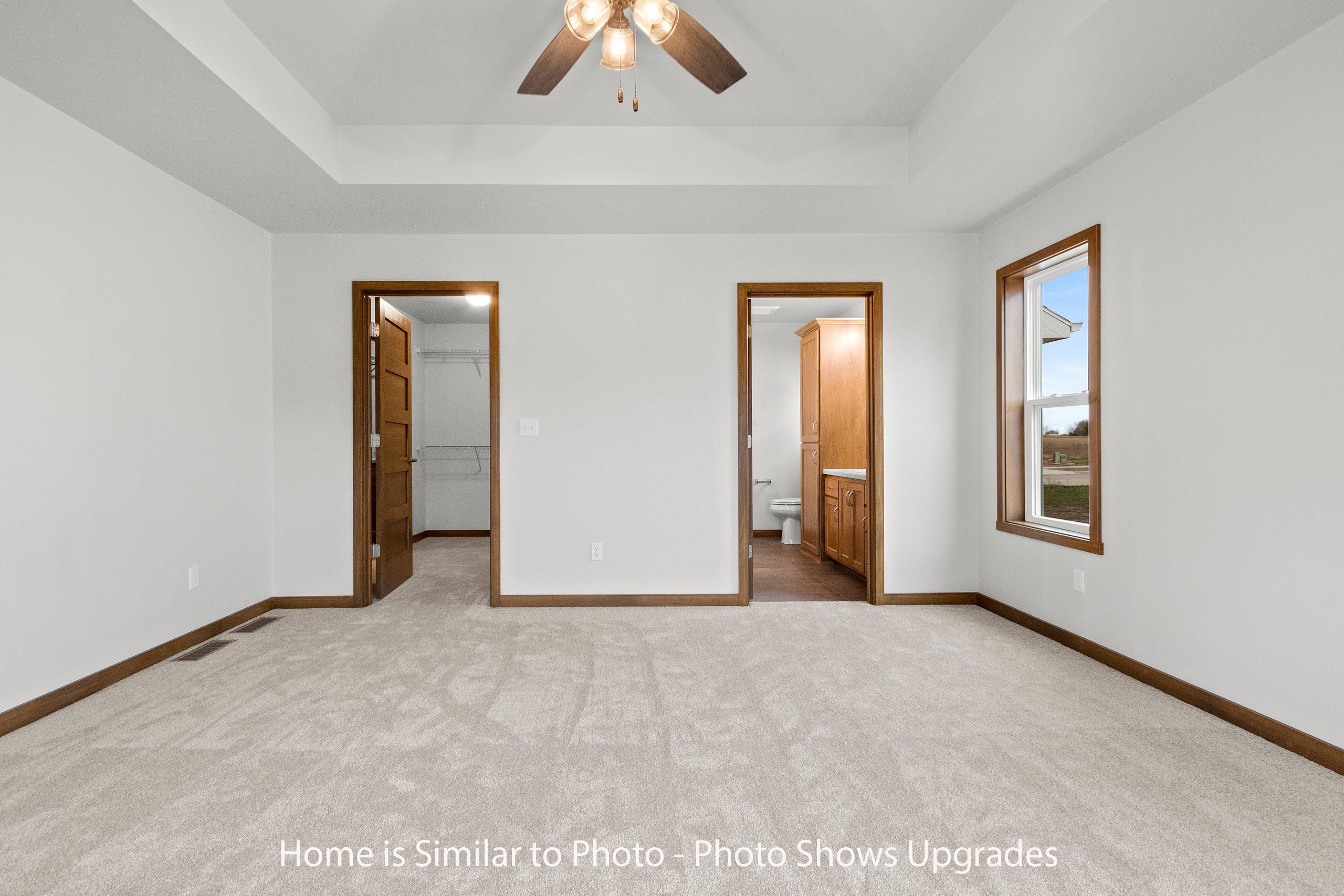 Must see new 1,800sf ranch located in the Village of Howard. Offers split bedroom design w/3 bedrooms & 2.5 baths. Step into large foyer opening up to nice sized living rm w/cathedral ceilings & gas FP. Kitchen has custom maple cabinets, walk-in pantry, island w/seating & storage & SS dishwasher & microwave. Dinette looking out to backyard. Convenient 1st-flr laundry w/lockers located off the half bath. Master suite w/tray ceiling, large walk-in closet w/laundry access & private bath w/double sinks & walk-in shower. Basement has egress window & is plumbed for a future bath. 3-stall attached garage. Exterior of home features stone, vertical vinyl siding & shakes in peaks all per plan. Main photo is computer generated. Photos are similar but may not be exact. Virtual staging in photos.