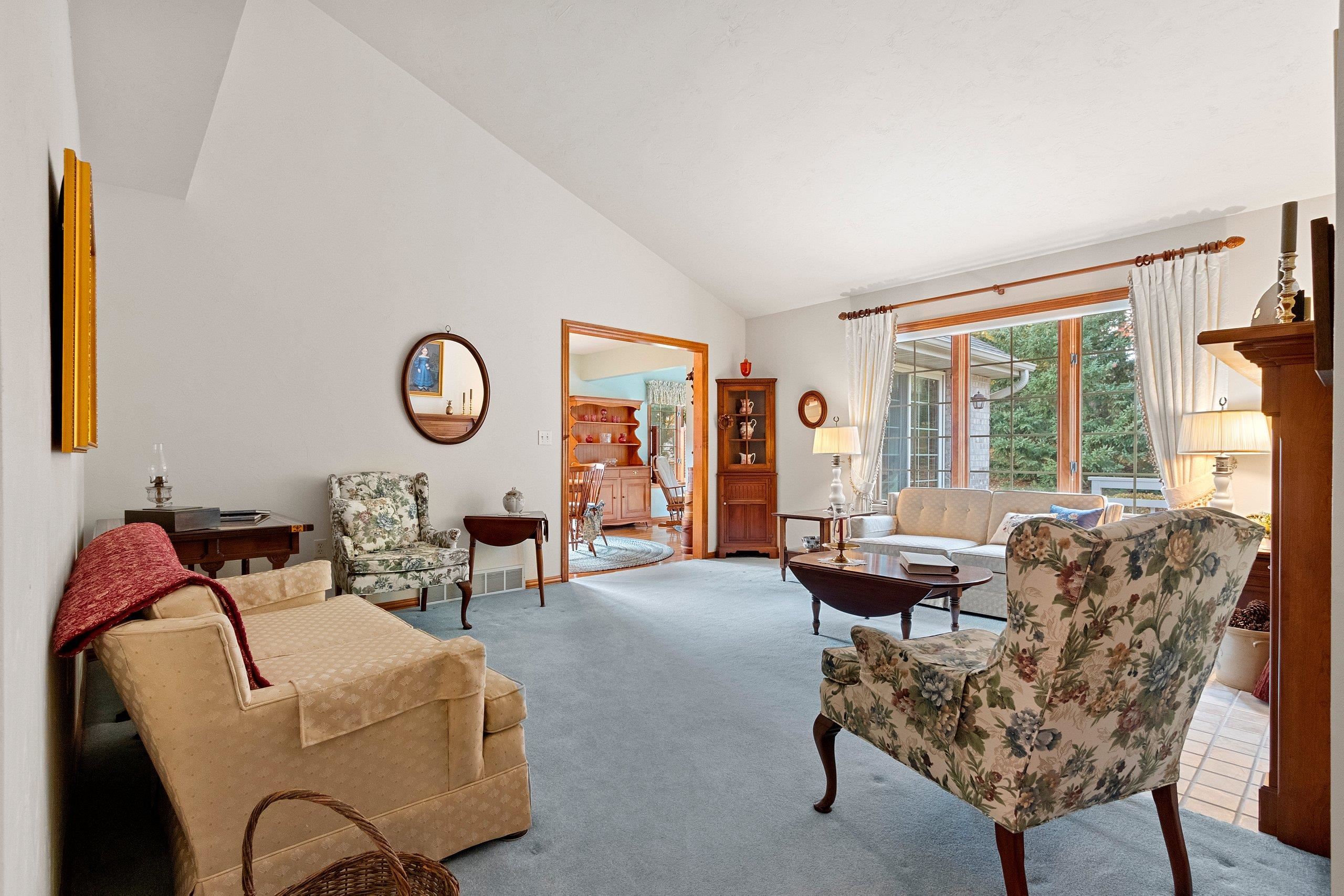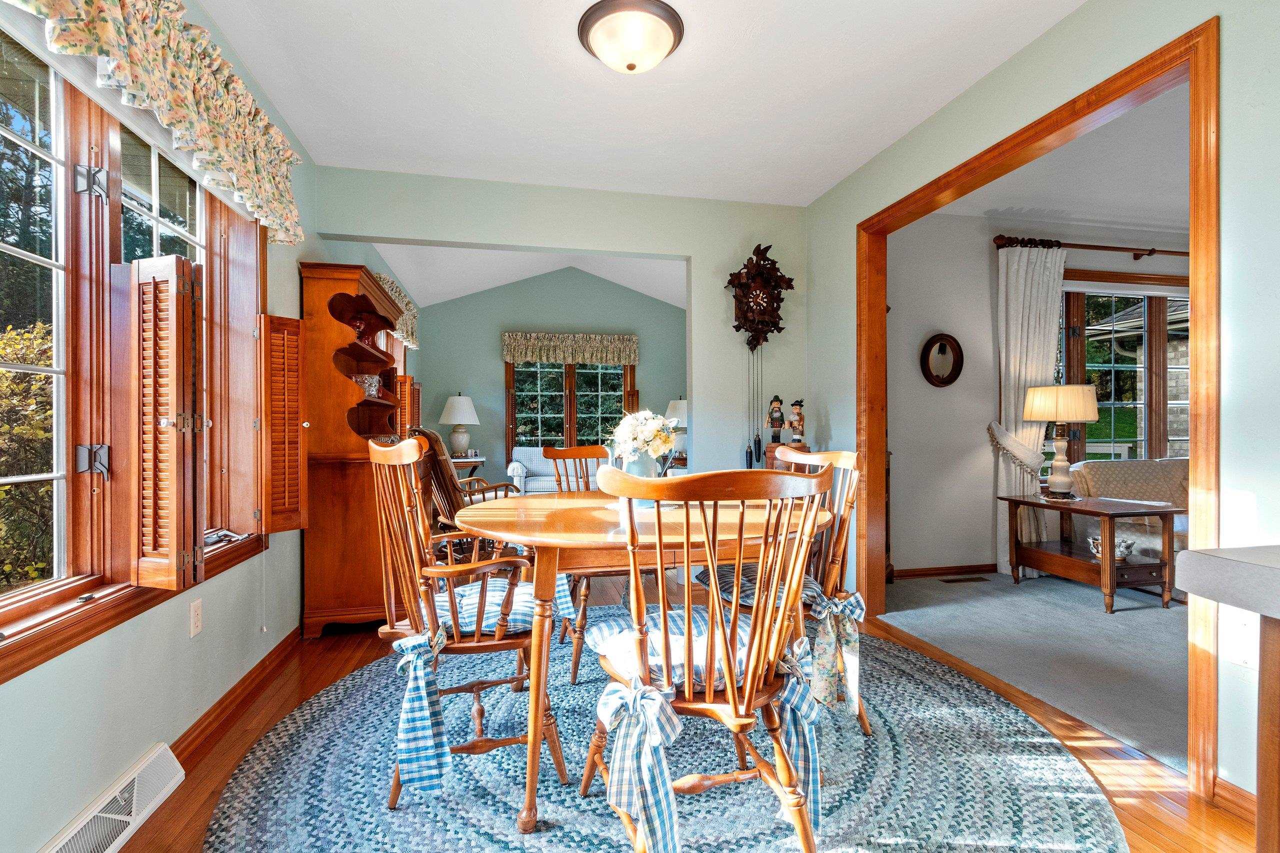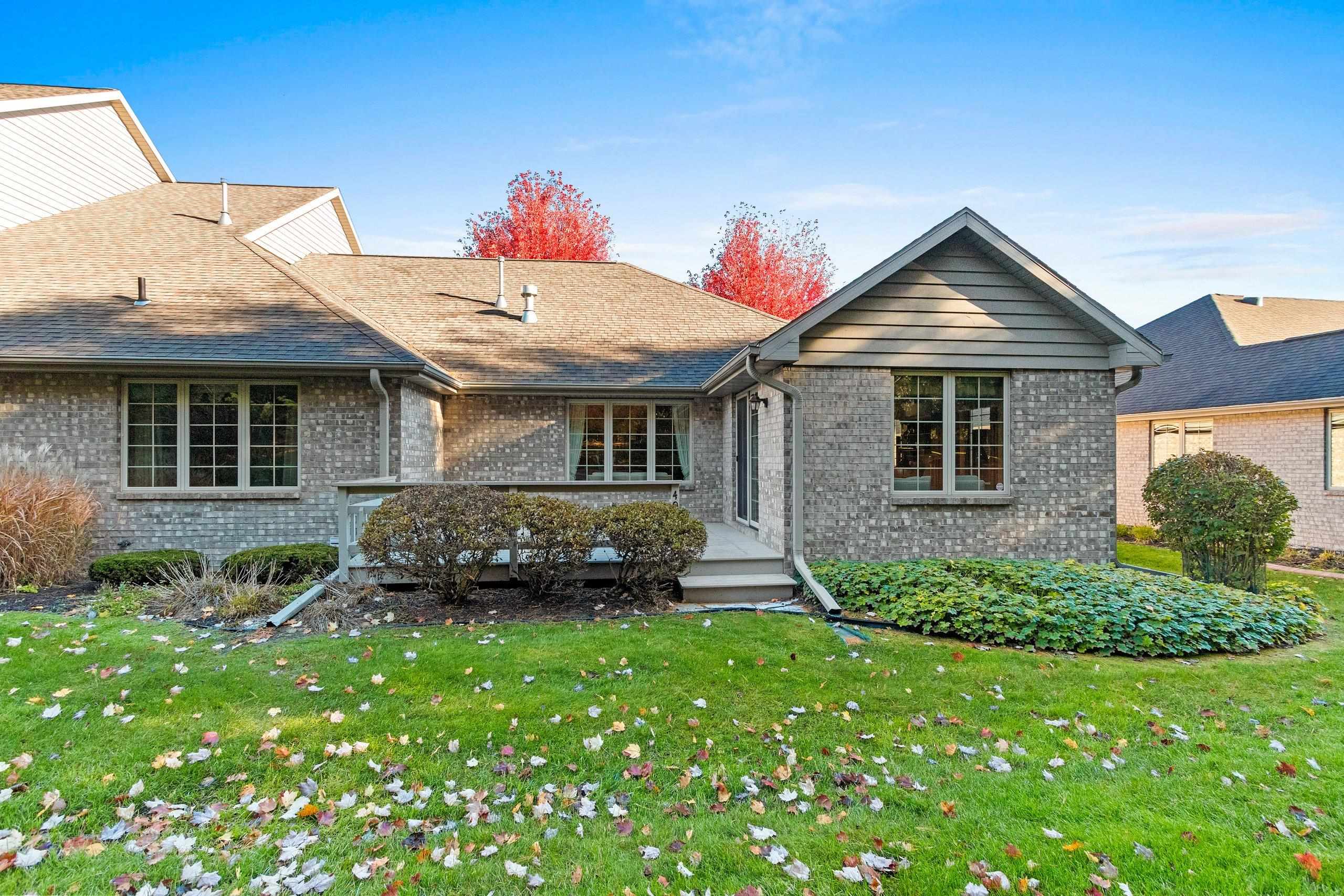 You will love this beautiful 2-plus bedroom, 3 full-bath, all-brick home in the sought-after Howard community. The pride of ownership is evident in this one-owner's home, which has been meticulously maintained. Stunning Cherry cabinets, 6-panel doors, and woodwork throughout. The craftsmanship of ceiling heights—cathedral, vaulted, tray, and traditional, along with the hardwood flooring and decor, adds so much character. Two primary suites on the main floor with private baths and walk-in closets. Experience tranquility in the 4-season room. Zero-lot-line home offers amenities such as snow removal and lawn care. Large partially finished basement with additional sleeping space, rec area, full bath, and storage area with shelving. Furnace 2018, Roof 2013, updated deck 2024