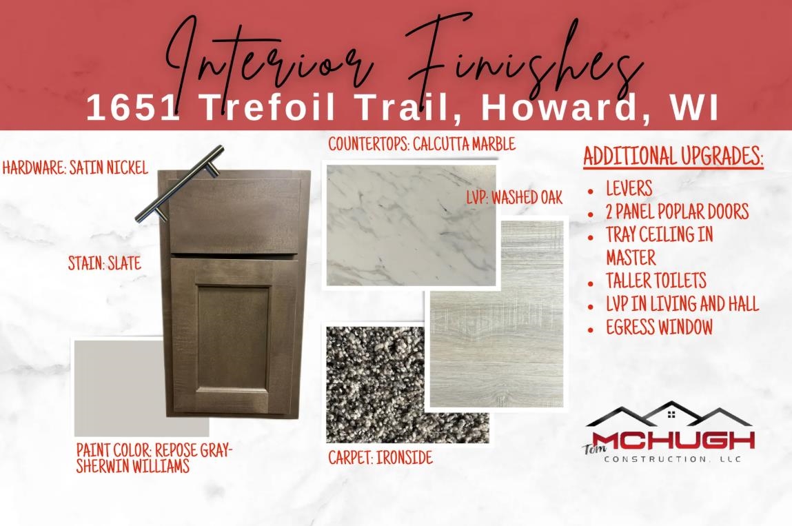 Welcome home from Tom McHugh Construction! This home is under construction!!! The 1343-CE floor plan from our Cedar collection, a 3 bedroom (Non-split), 2 full bath ranch design. Standard features include insulated garage door, fiberglass exterior doors, solid poplar 2 panel interior doors, LVP throughout the main floor, 1 egress window, central AC, basement stubbed for a future bath. Photo is computer generated. Full driveway, final streets are already installed.