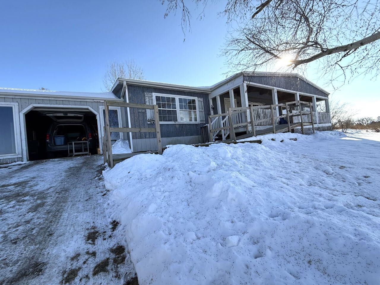 Enjoy beautiful views of Sinissippee Lake from this 3-bed, 2-bath modular home located across the road. The kitchen features a breakfast bar and newer gas stove and refrigerator, while the dining area flows into the living room and a family room with a cozy wood-burning fireplace. The primary suite includes a full bath with a garden tub and walk-in shower. There are two additional bedrooms and a full bath plus a three-seasons room with cedar walls and ceiling. There is a utility/laundry room with washer and dryer, and numerous updates including a six-year-old furnace and five-year-old roof. The flooring is not finished in the home. Outdoor amenities include a covered front porch, deck, and a 15x25 insulated shop, all situated on approx .58 acre. Cash or conventional financing only.