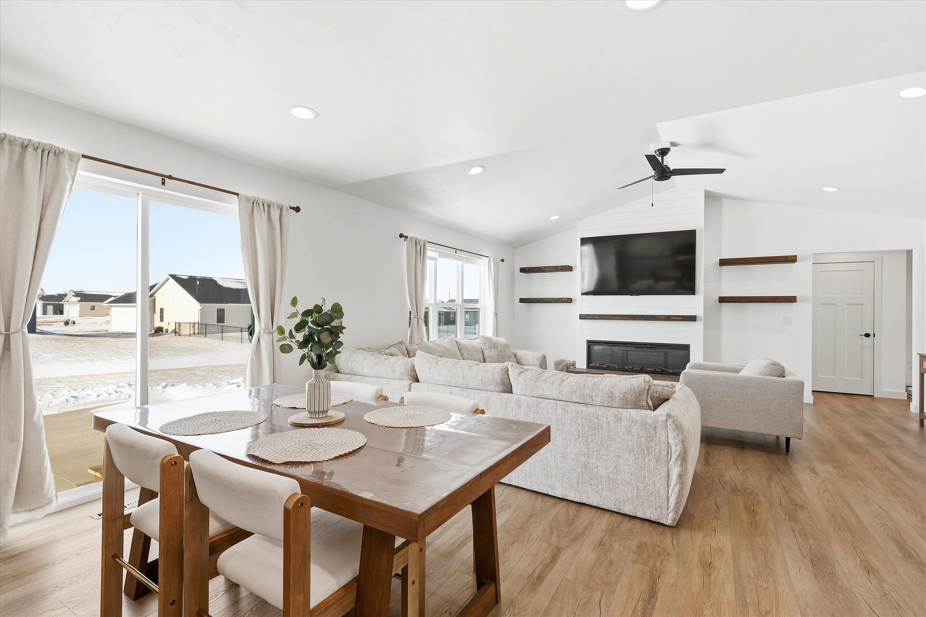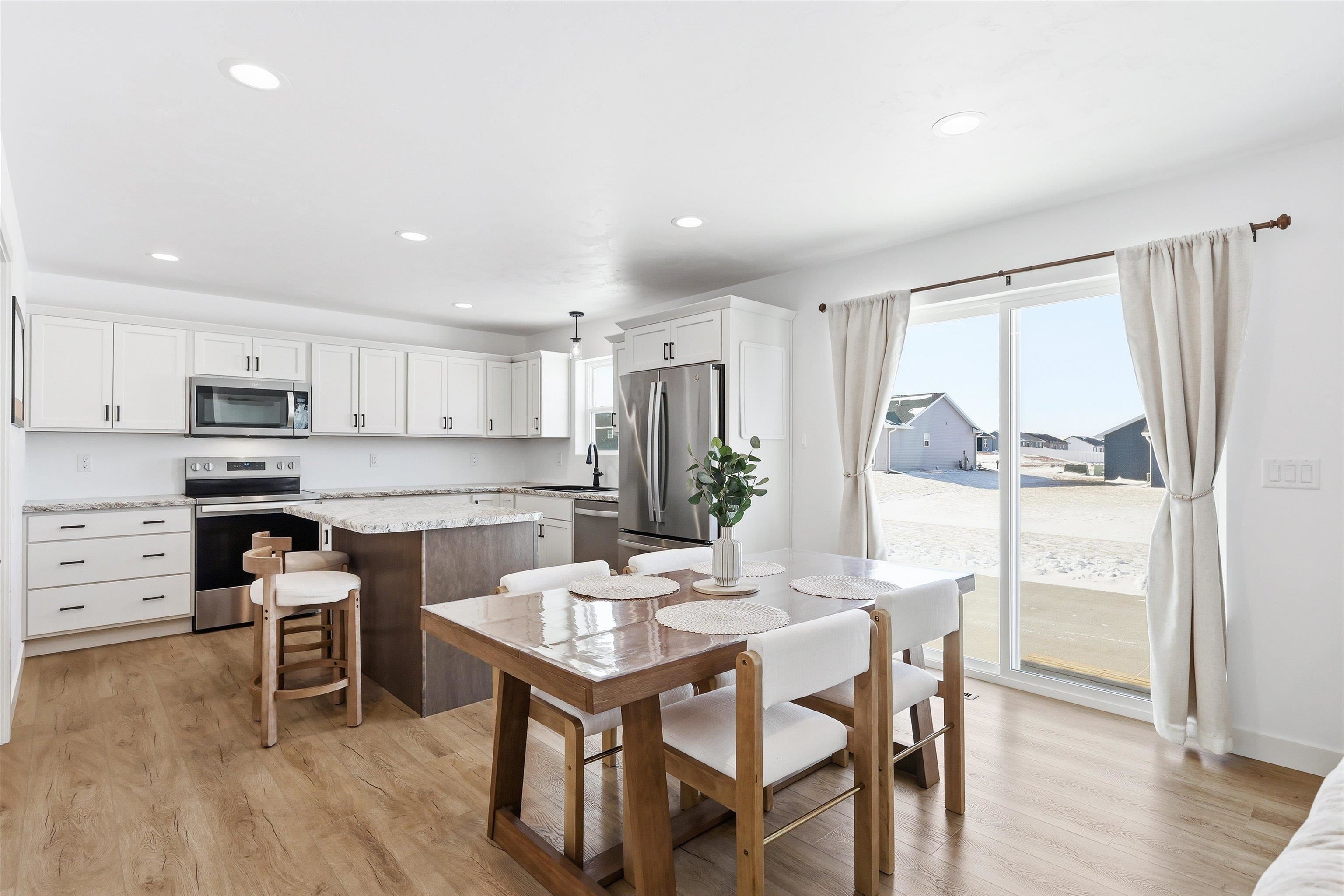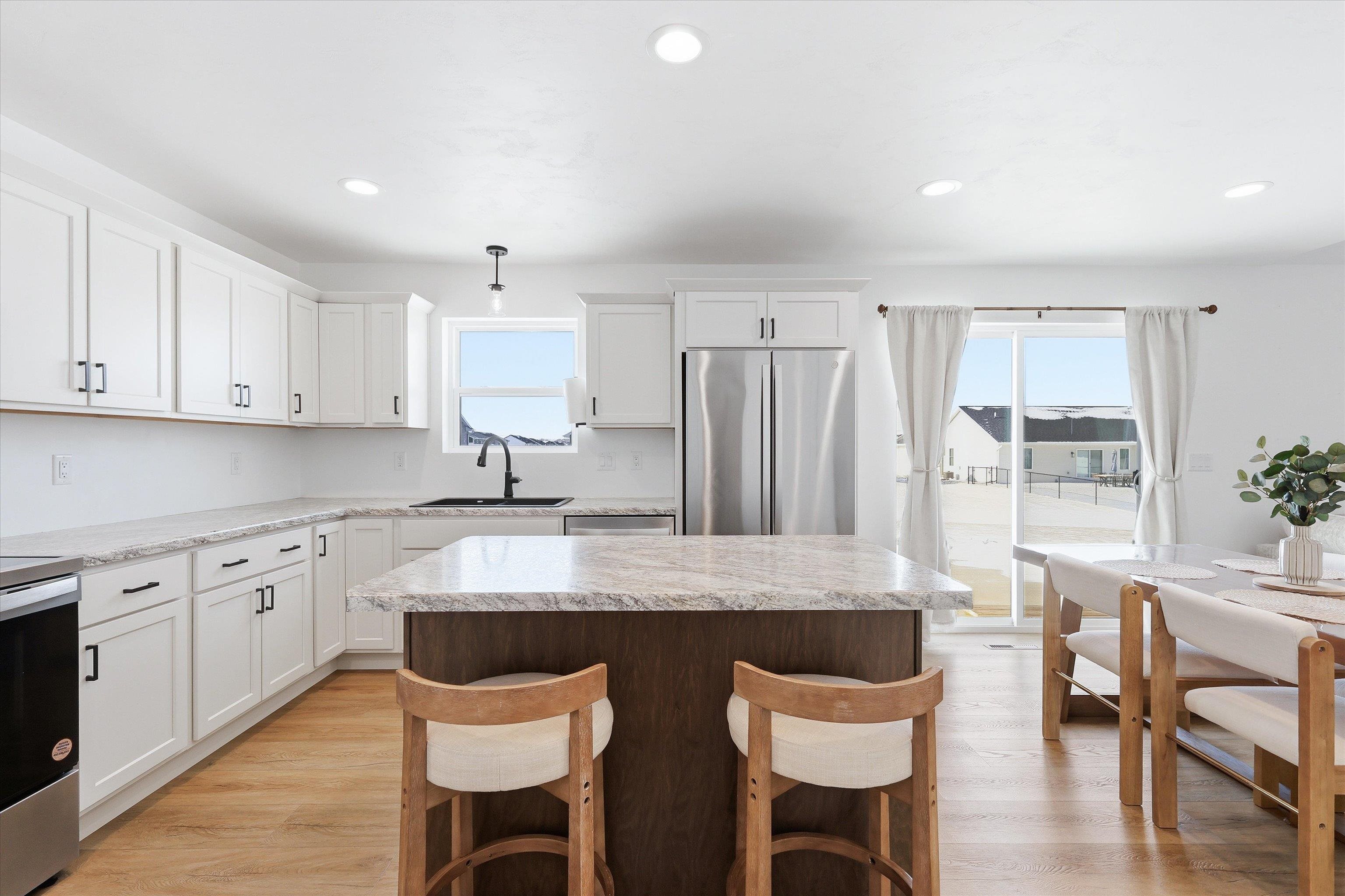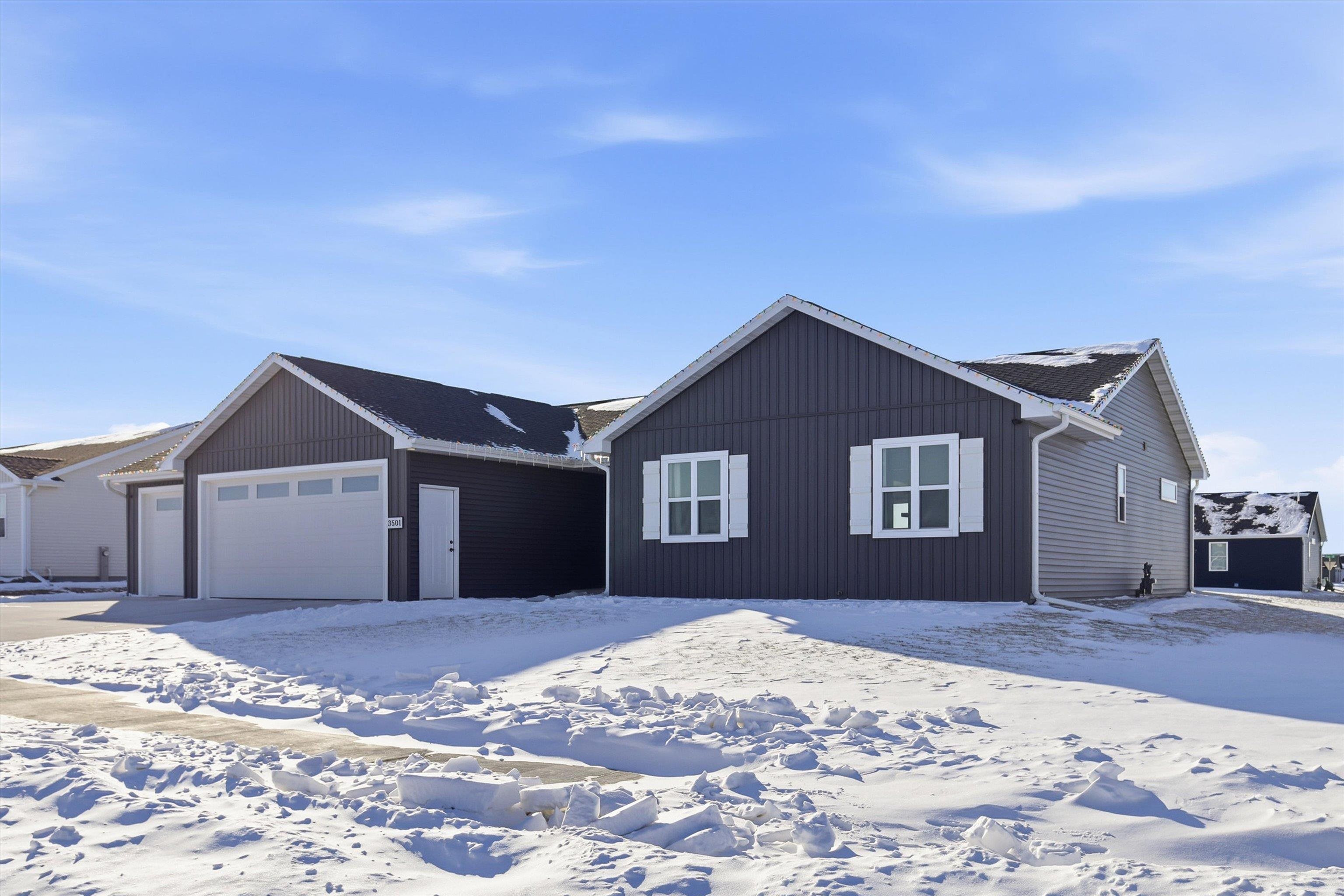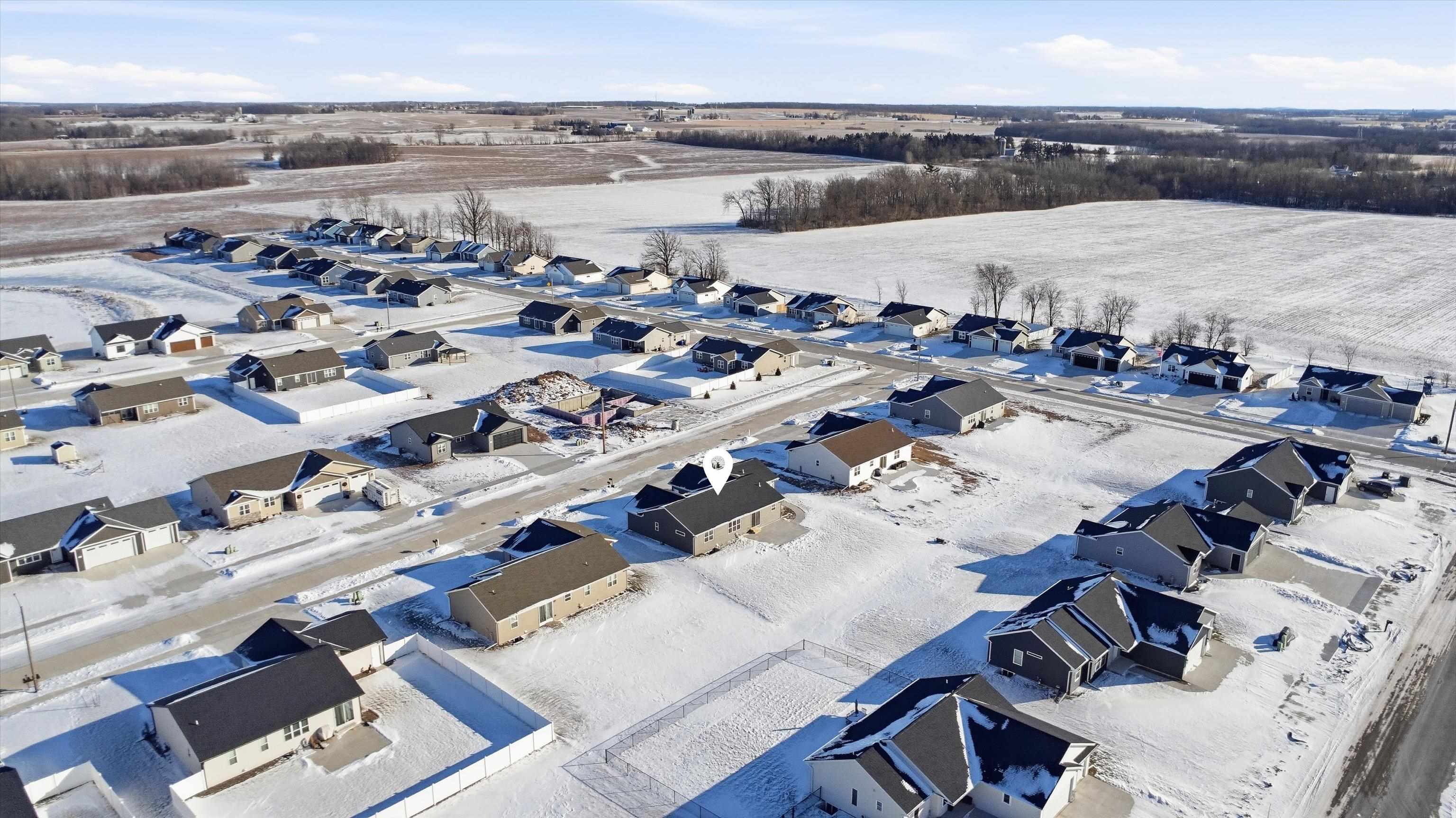 Built in 2025, this stylish 3-bedroom, 2 full-bath ranch offers modern living with a spacious open-concept design and a 3-car garage. The inviting living room features an electric built-in FP and large windows that flood the space with natural light, while patio doors off the dining area lead to a large concrete patio. the Kitchen is designed to impress with abundant cabinetry, a center island with breakfast bar, and pantry. The primary suite includes a full en suite BA and walk-in closet, complemented by a convenient first-floor laundry. Vinyl siding adds low-maintenance appeal, and the full basement provides endless potential for future finished living space. Showings start 1/30/2026. Preferred Closing date of 4/1/2026. Special assessment addendum to be included with all offers.