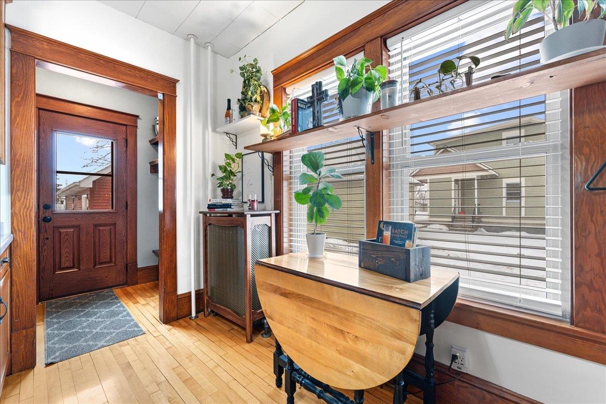 Fall in love with this incredibly charming 4-bedroom, 1.1-bath character home that’s been meticulously cared for from top to bottom. A welcoming front porch sets the tone as you step inside to gleaming hardwood floors, stunning original woodwork, and a gracious open staircase. The oversized 2.5-car garage (24x32 per seller) offers attic storage for all your extras. Enjoy the spacious yard with a cozy firepit—95% fenced with additional fencing and gate included. Efficient hot water heat with recirculation lines and an indirect water heater adds comfort. Countless seller updates—too many to list; see seller updates list! Showings begin 1/6/26. Schedule yours today!