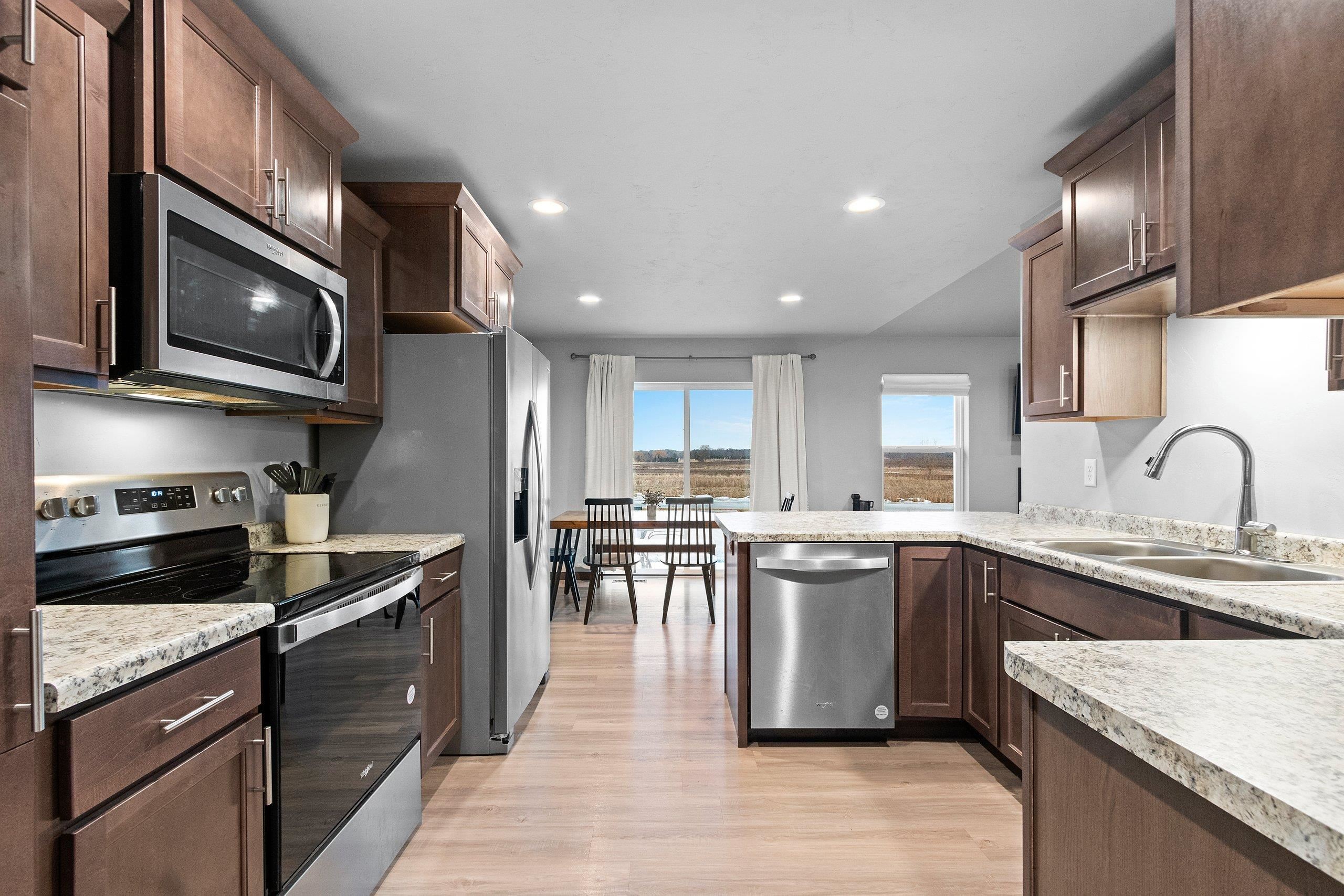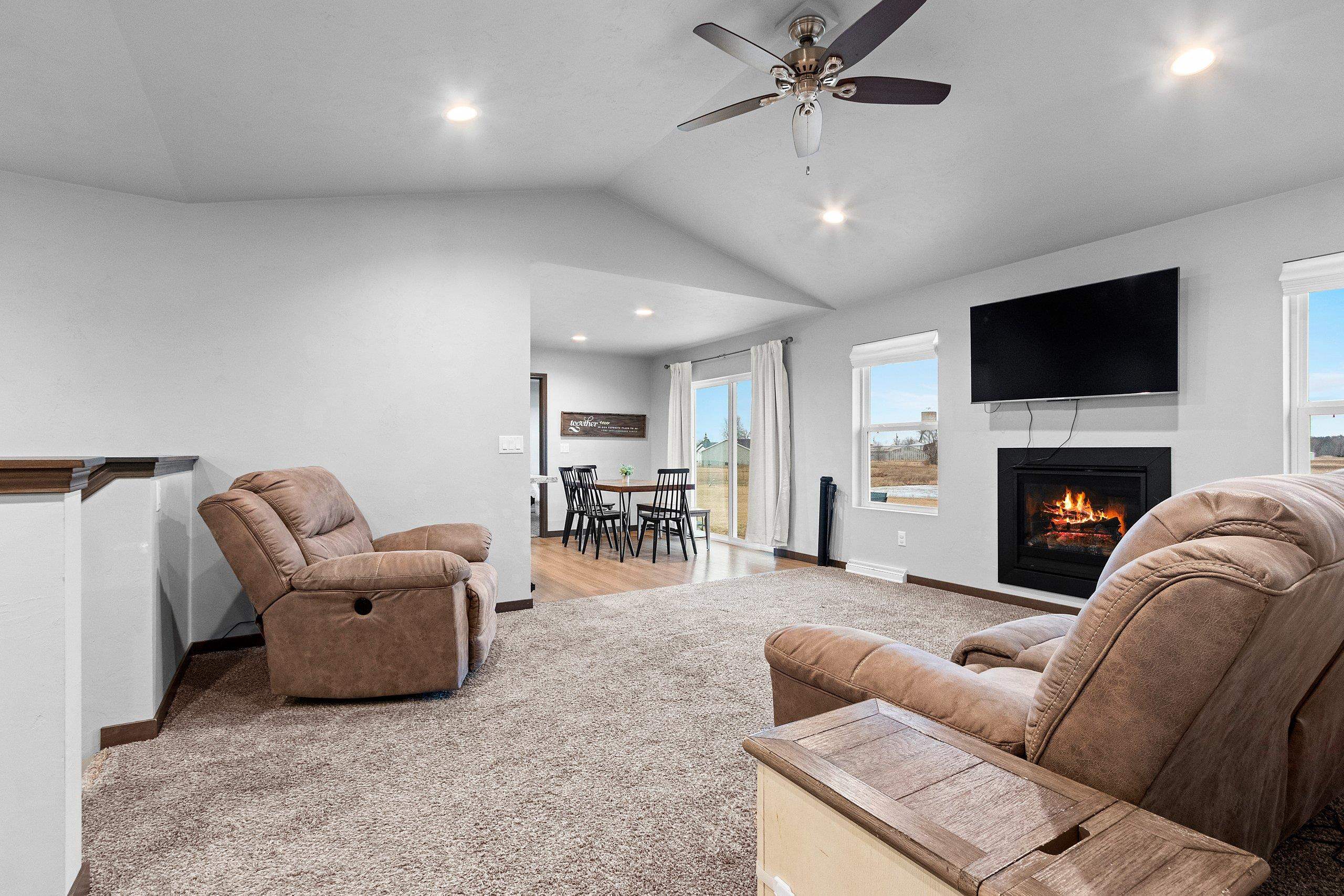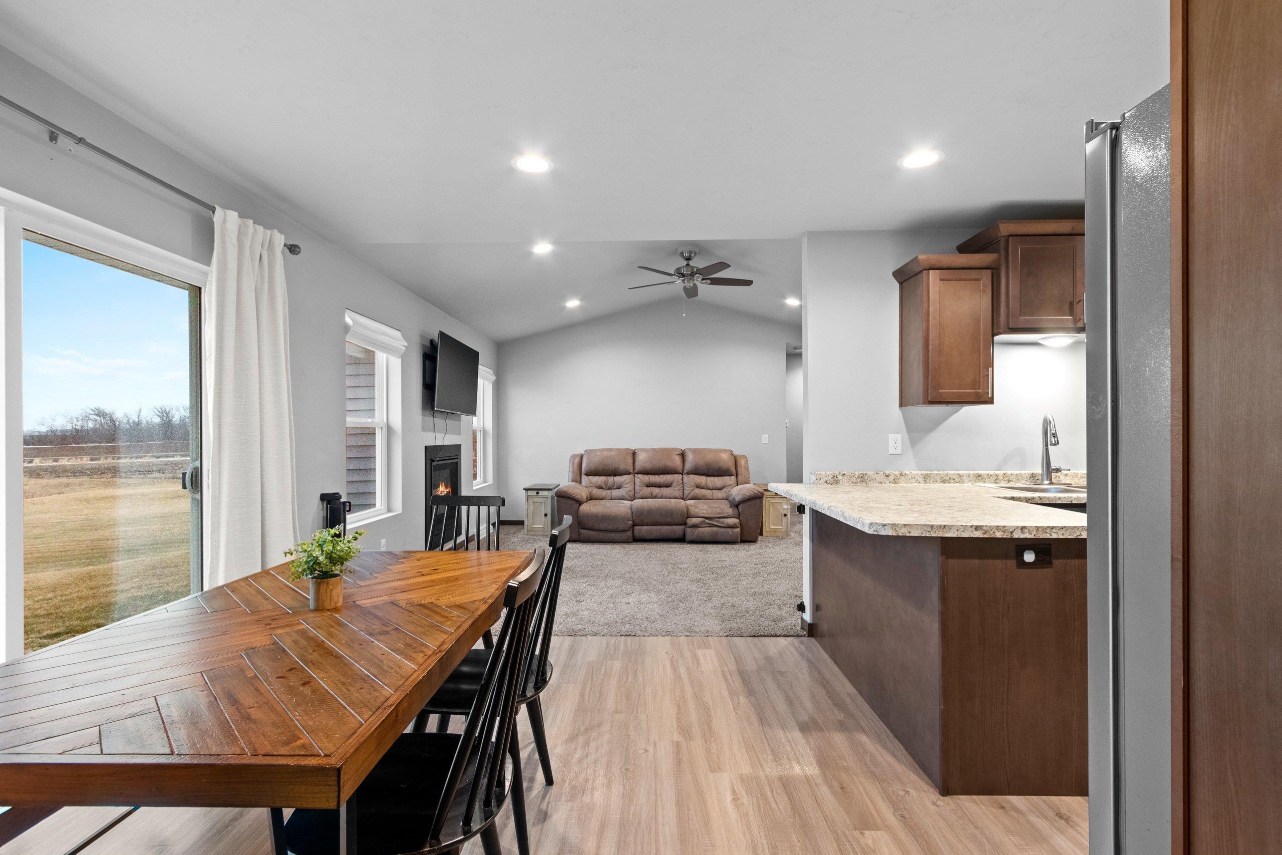 Move-in ready and exceptionally maintained 3-year-old split-bedroom ranch on a premium lot with no backyard neighbors. This 3 bed, 2 bath home features an open layout with a vaulted ceiling, cozy gas fireplace, and spacious kitchen/dining area leading to a concrete patio. Primary suite includes a tray ceiling, walk-in closet and full bath. The 3-stall garage offers insulated doors for added comfort. A convenient mudroom with first-floor laundry sits just off the garage entry. Lower level includes an egress window and is set up for a future bathroom, providing excellent expansion potential. Great location near schools. This one won't last long! Offers will be reviewed as they come in. Seller requests 48 hrs binding acceptance, however seller reserves the right to accept an offer at anytime.