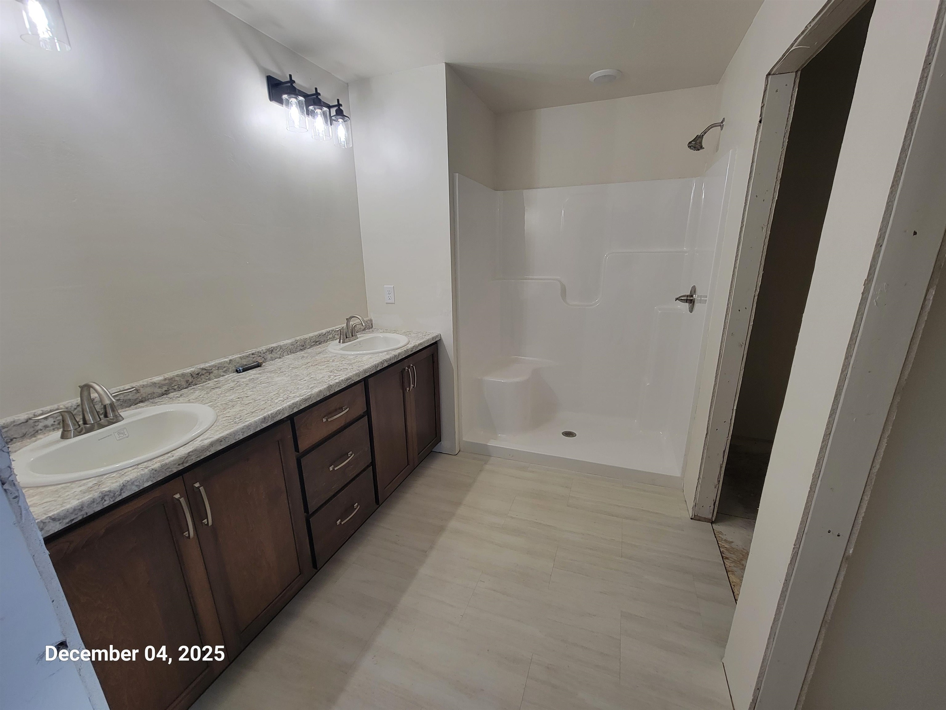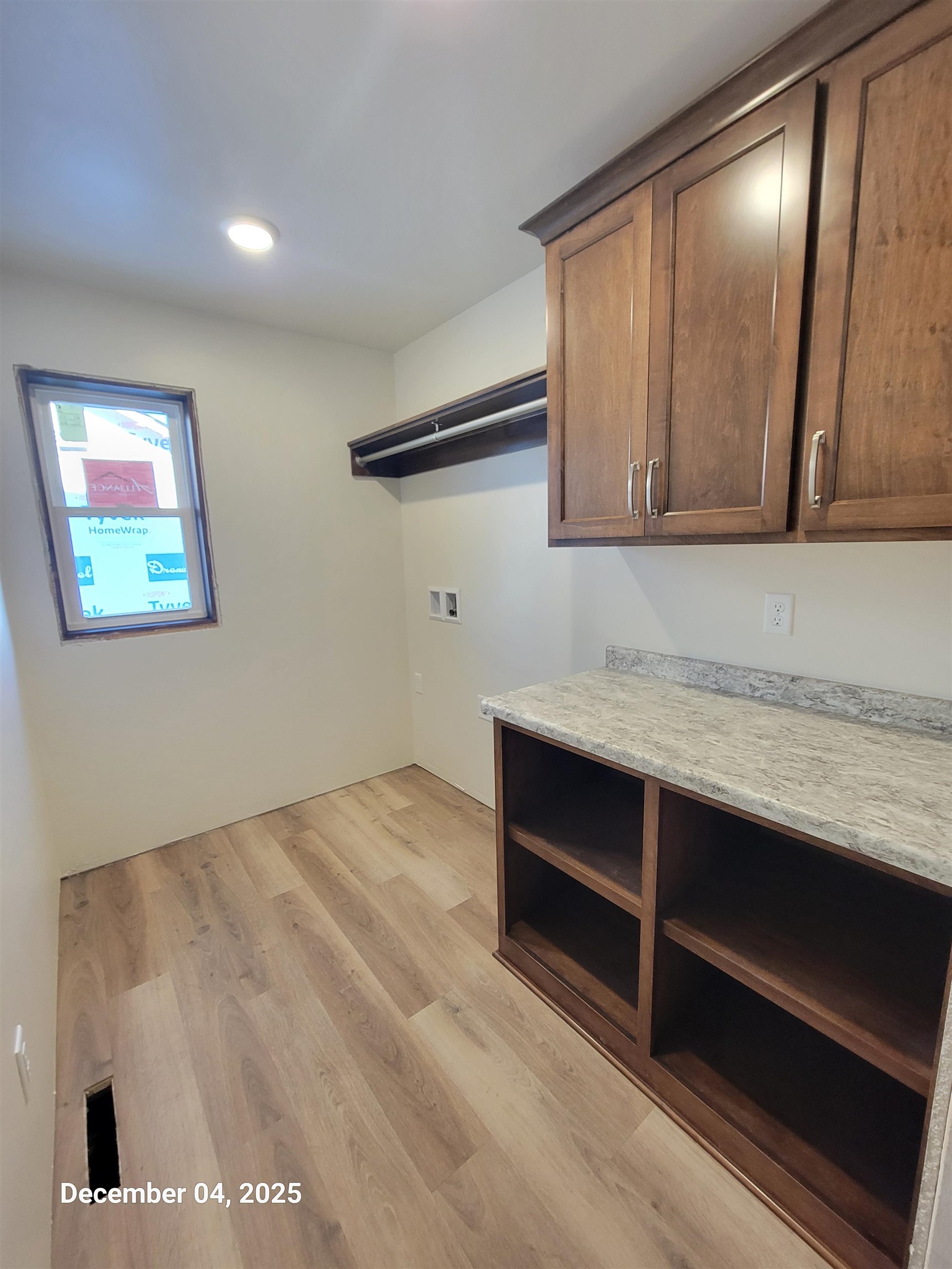 The contractor completed upgrades with stone and vertical siding. This split ranch features an open-concept design, creating a spacious flow throughout the kitchen, dinette, and great room—ideal for entertaining. The Owner’s Suite is privately located on its own side of the home, offering beautiful windows, a walk-in closet, and a luxurious private bath with dual sinks and a walk-in shower. This home also includes two additional private bedrooms, one with a walk-in closet and a view of the backyard, while the other bedroom boasts larger windows to let in more natural light. The lower level is equipped with an egress window and is plumbed for a future bathroom. The garage is insulated, drywalled, and fully finished for added convenience. The backyard features a covered porch, the perfect