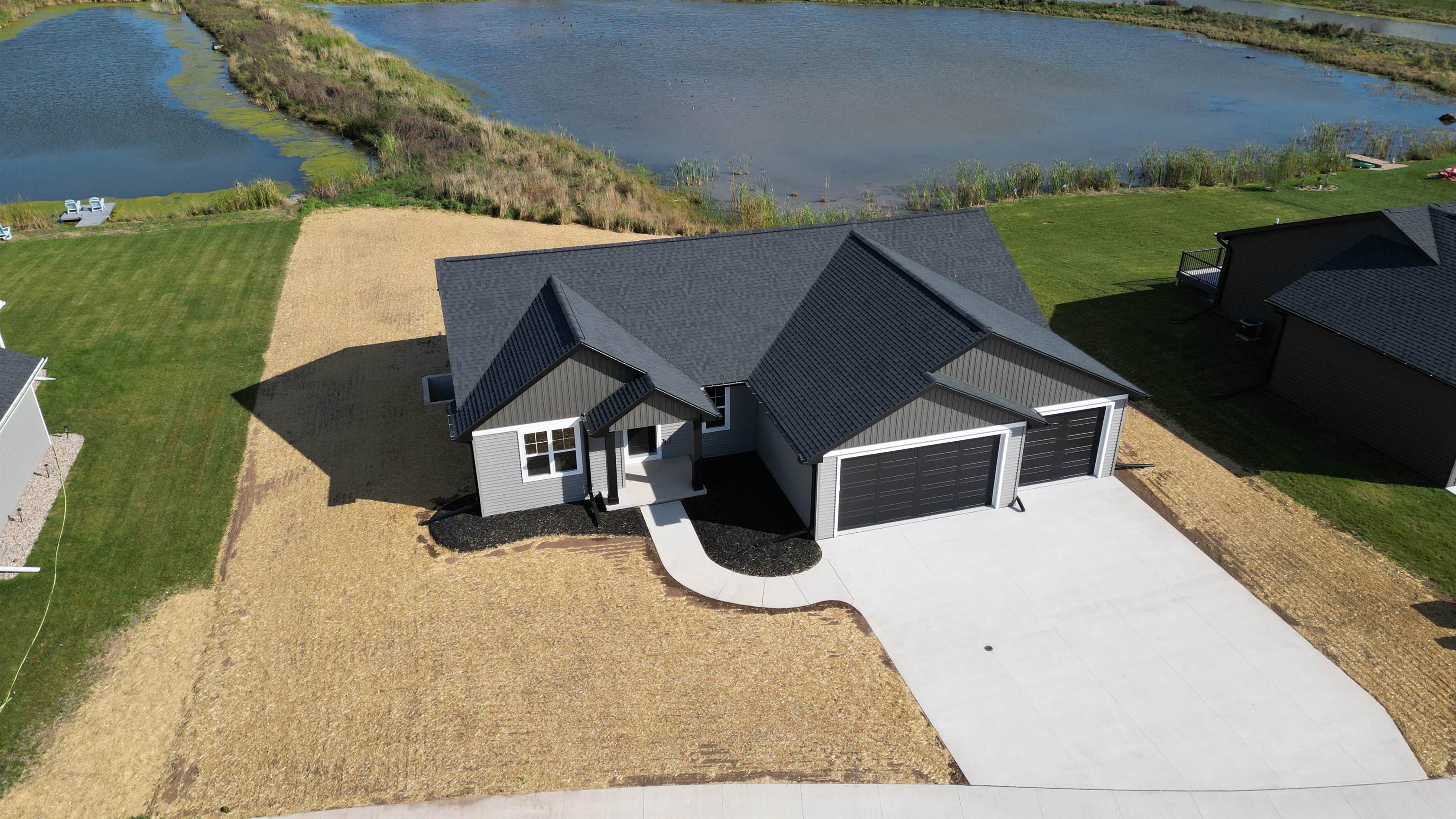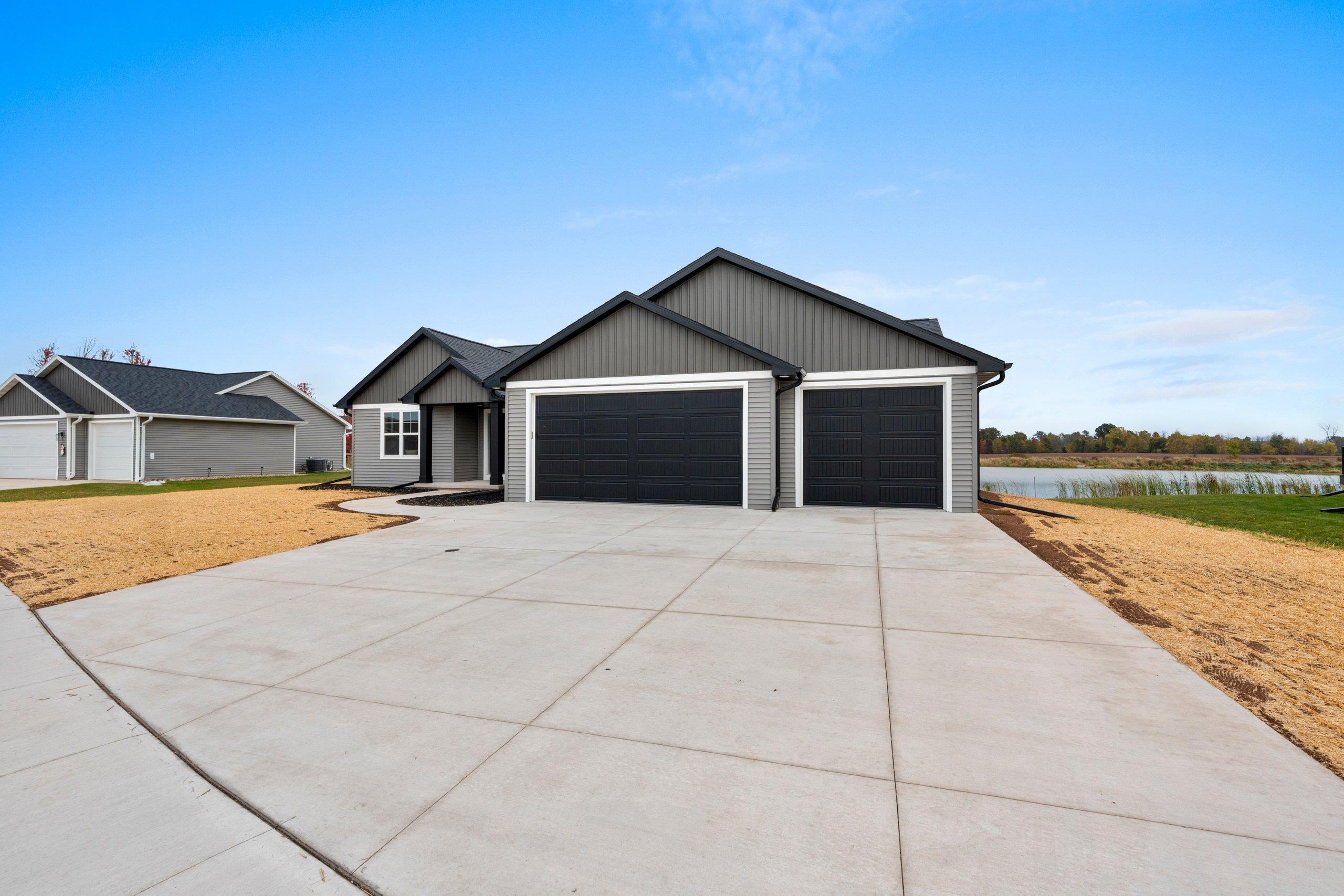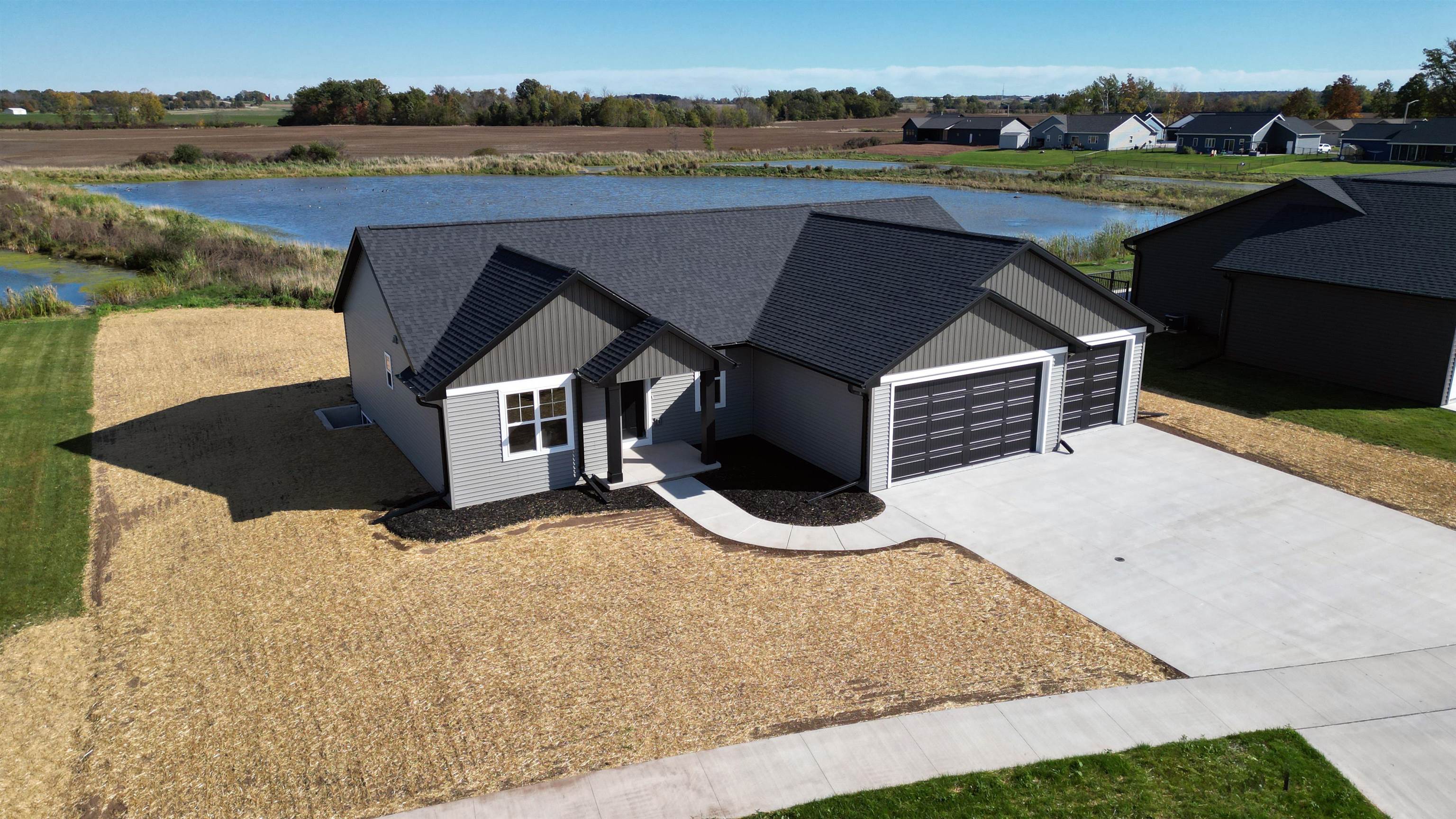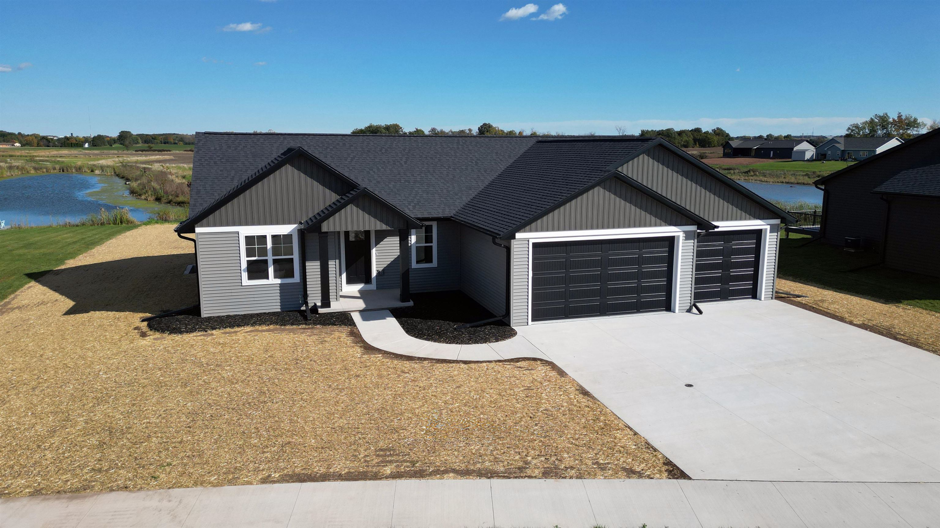 Welcome to your future home by Midwest Design Homes — a perfect blend of comfort, functionality, and style. This thoughtfully designed 3-bedroom, 2-bathroom Fall Parade Home features an open-concept floor plan with soaring cathedral ceilings that create a spacious, airy feel. A dedicated main-level office with front-facing windows provides the perfect workspace, while the large mudroom includes a walk-in closet and bench area for added functionality. The 24' deep garage features a finished epoxy floor for a clean, polished look, and the exterior is complete with a poured patio, lush lawn, and serene pond. Finished lower level offers additional living space with a 17x24 great room — ideal for entertaining or relaxing.This home is move in ready!