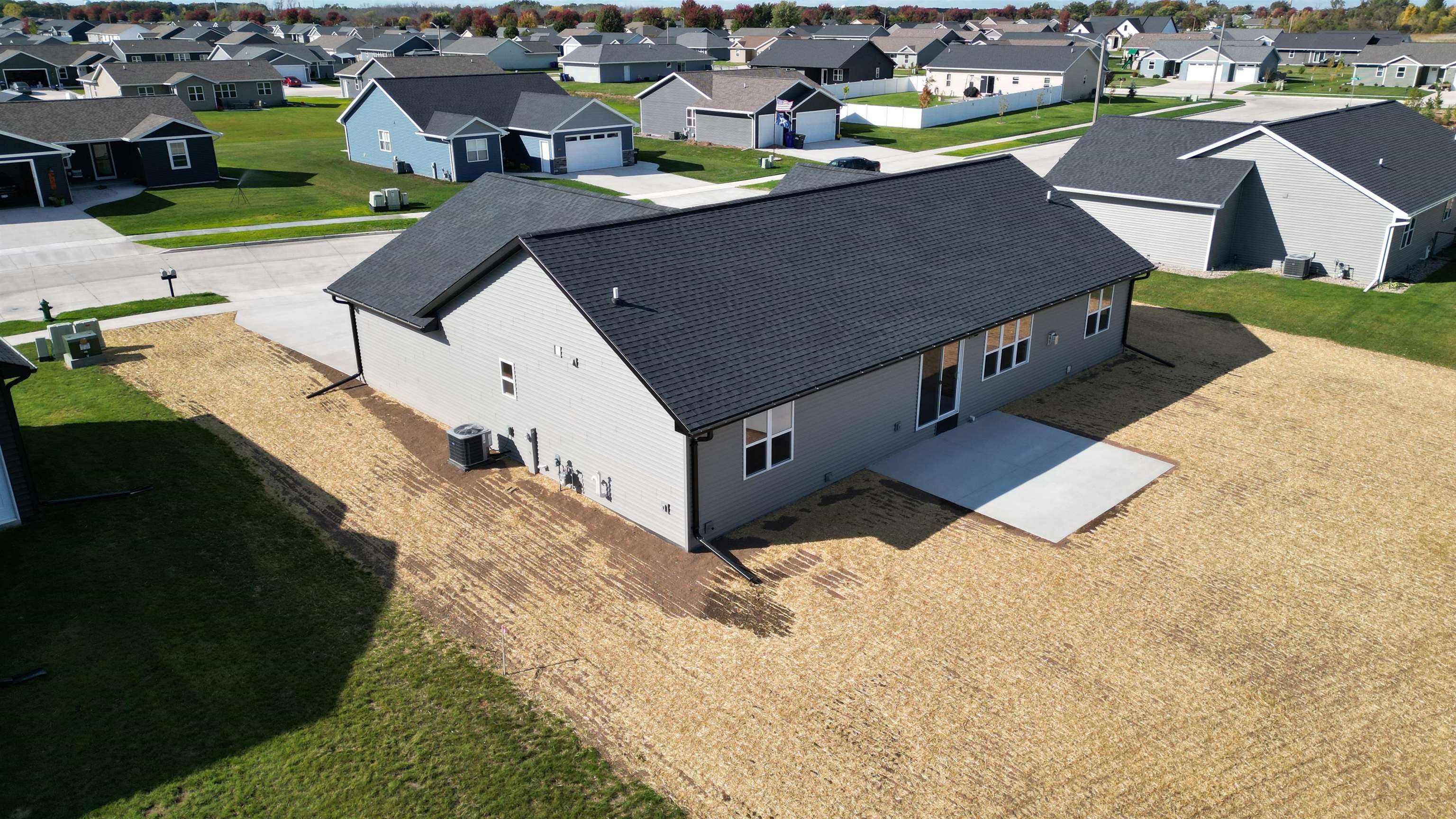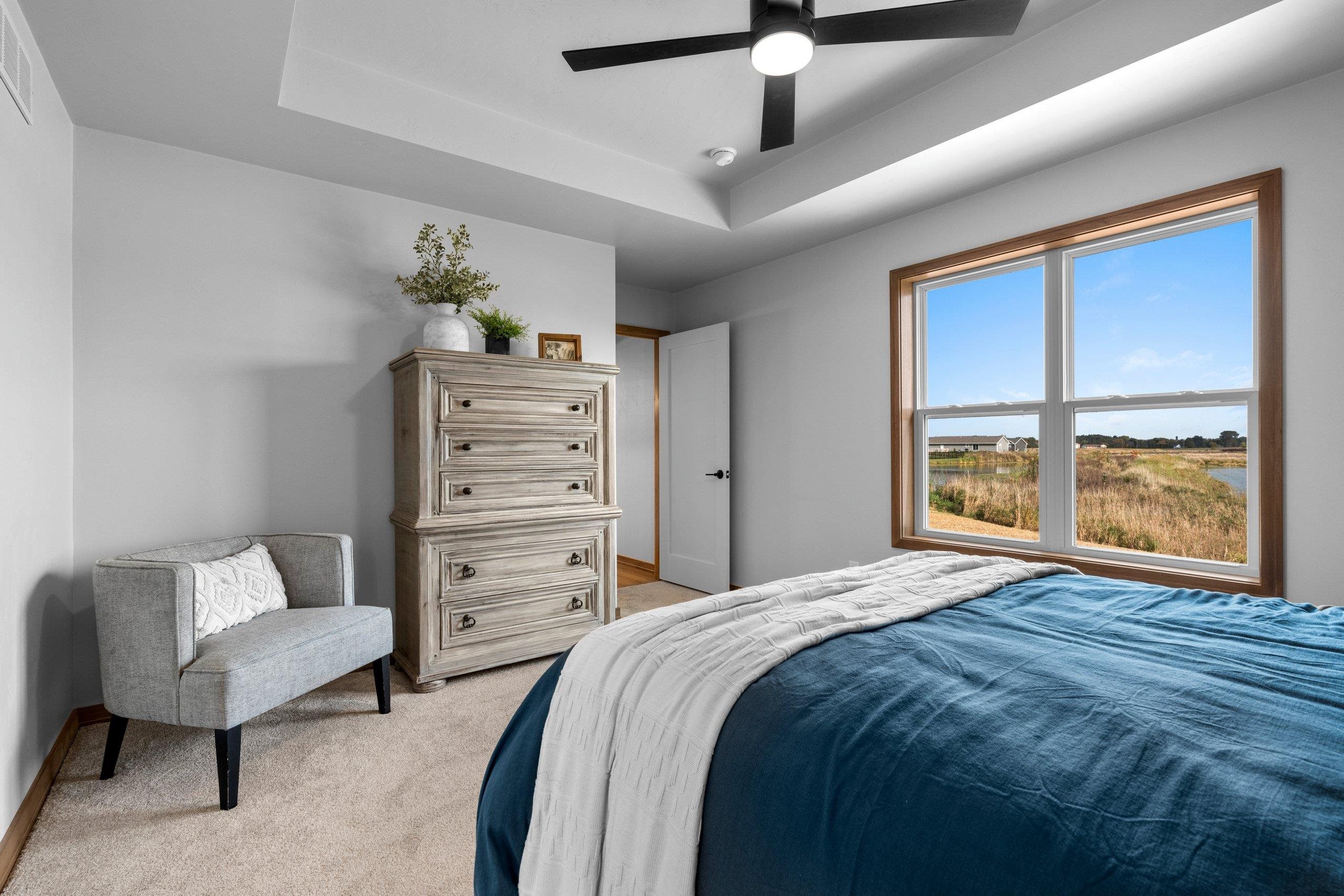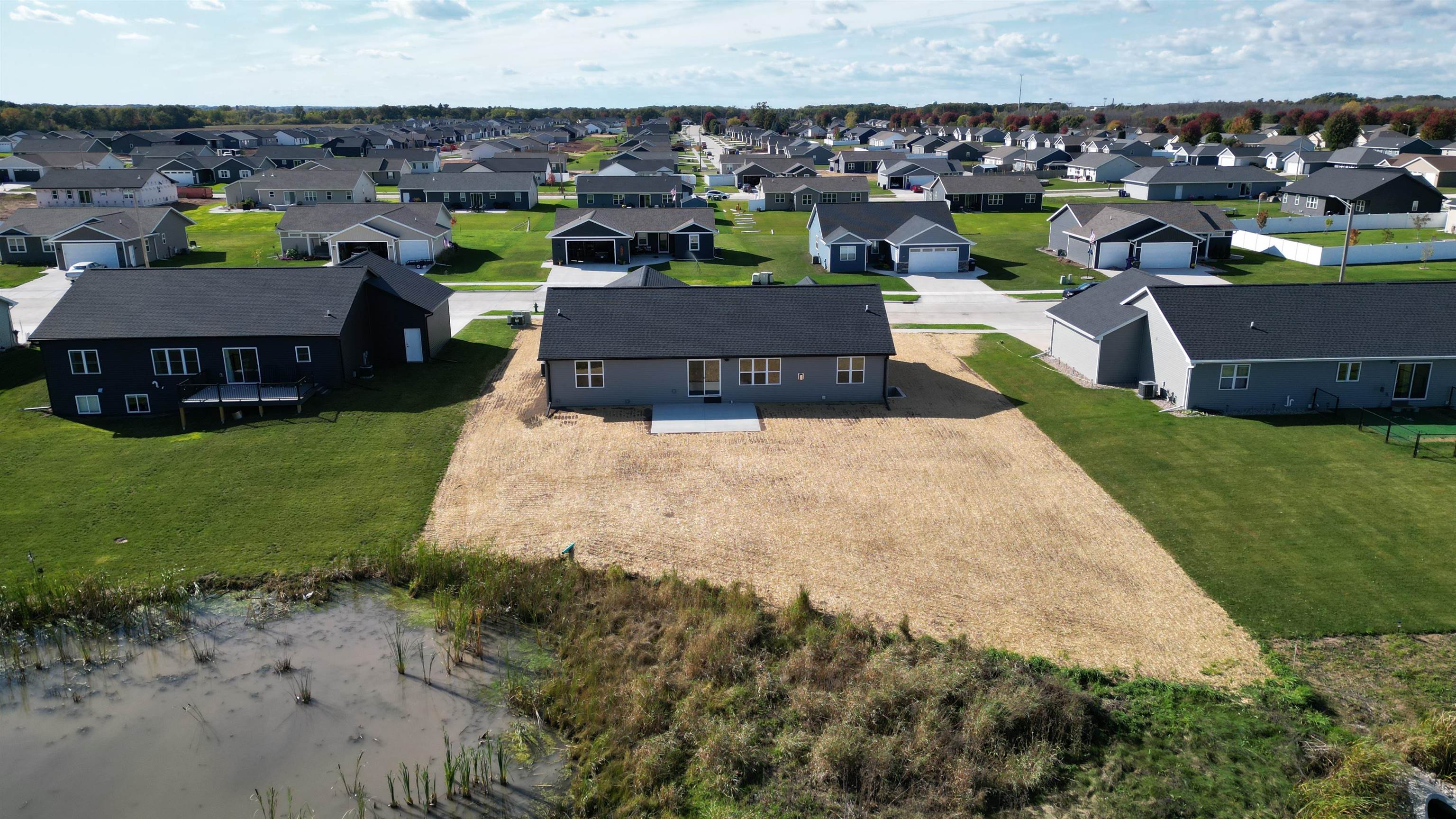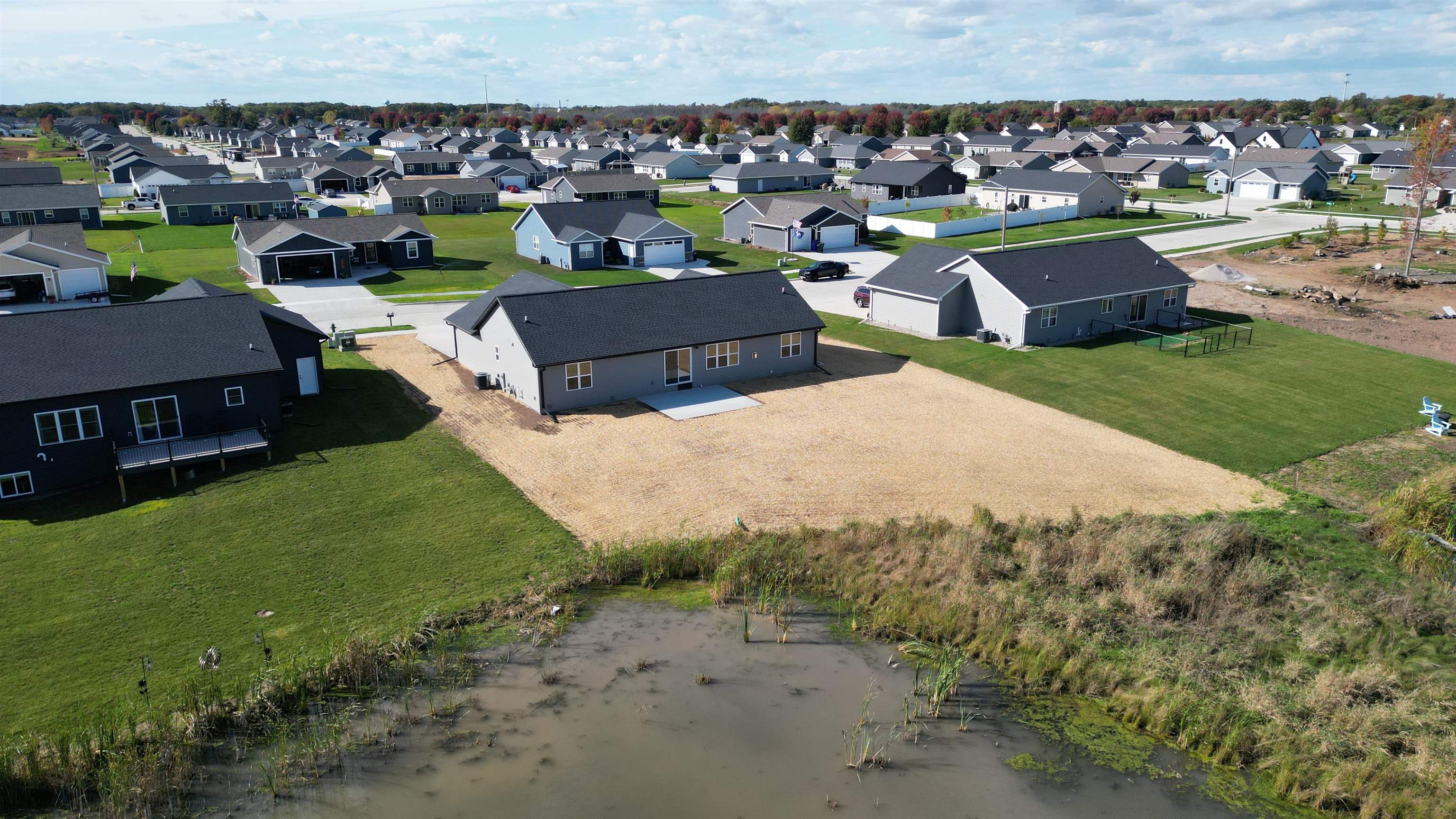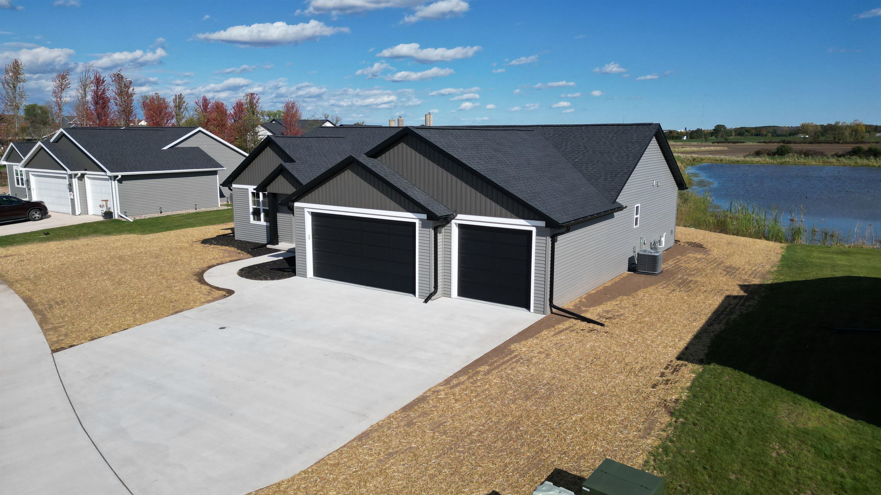 Welcome to your future home by Midwest Design Homes — a perfect blend of comfort, functionality, and style. This thoughtfully designed 3-bedroom, 2-bathroom Fall Parade Home features an open-concept floor plan with soaring cathedral ceilings that create a spacious, airy feel. A dedicated main-level office with front-facing windows provides the perfect workspace, while the large mudroom includes a walk-in closet and bench area for added functionality. The 24' deep garage features a finished epoxy floor for a clean, polished look, and the exterior is complete with a poured patio, lush lawn, and serene pond. Finished lower level offers additional living space with a 17x24 great room — ideal for entertaining or relaxing.This home is move in ready!