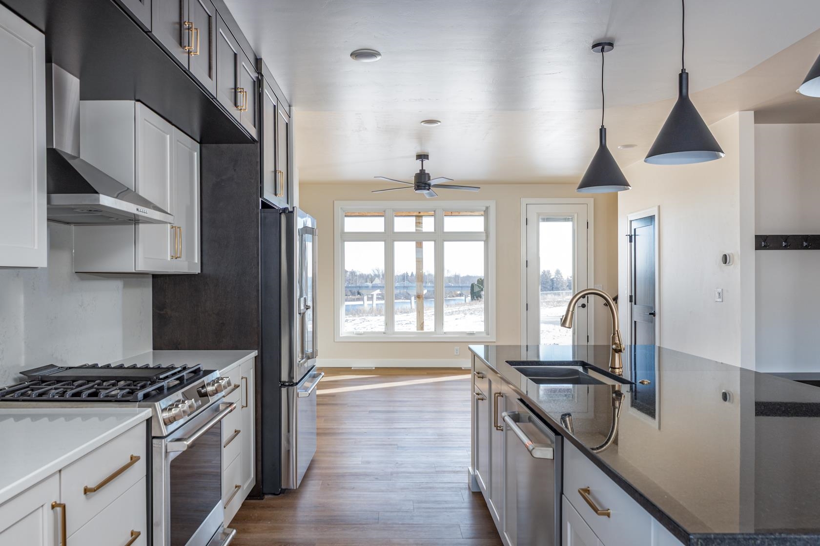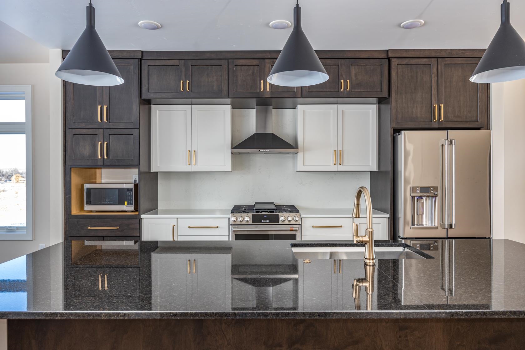 Location, Location, Location! Welcome to Kimberly's finest! This executive, swanky 3 bedroom, 2 full and 2 half bath townhome is READY for you! Enjoy lake views, walking trails, covered patio, covered upper-level deck. Interior features are classy and include quartz counters and backsplash, kitchen with large center island, premium stainless steel appliance package too. The primary bedroom features a walk-in tile shower. There is a dry bar, flex room. Property is in process of being re-zoned as residential; zero lot line. Some photos are virtually staged.