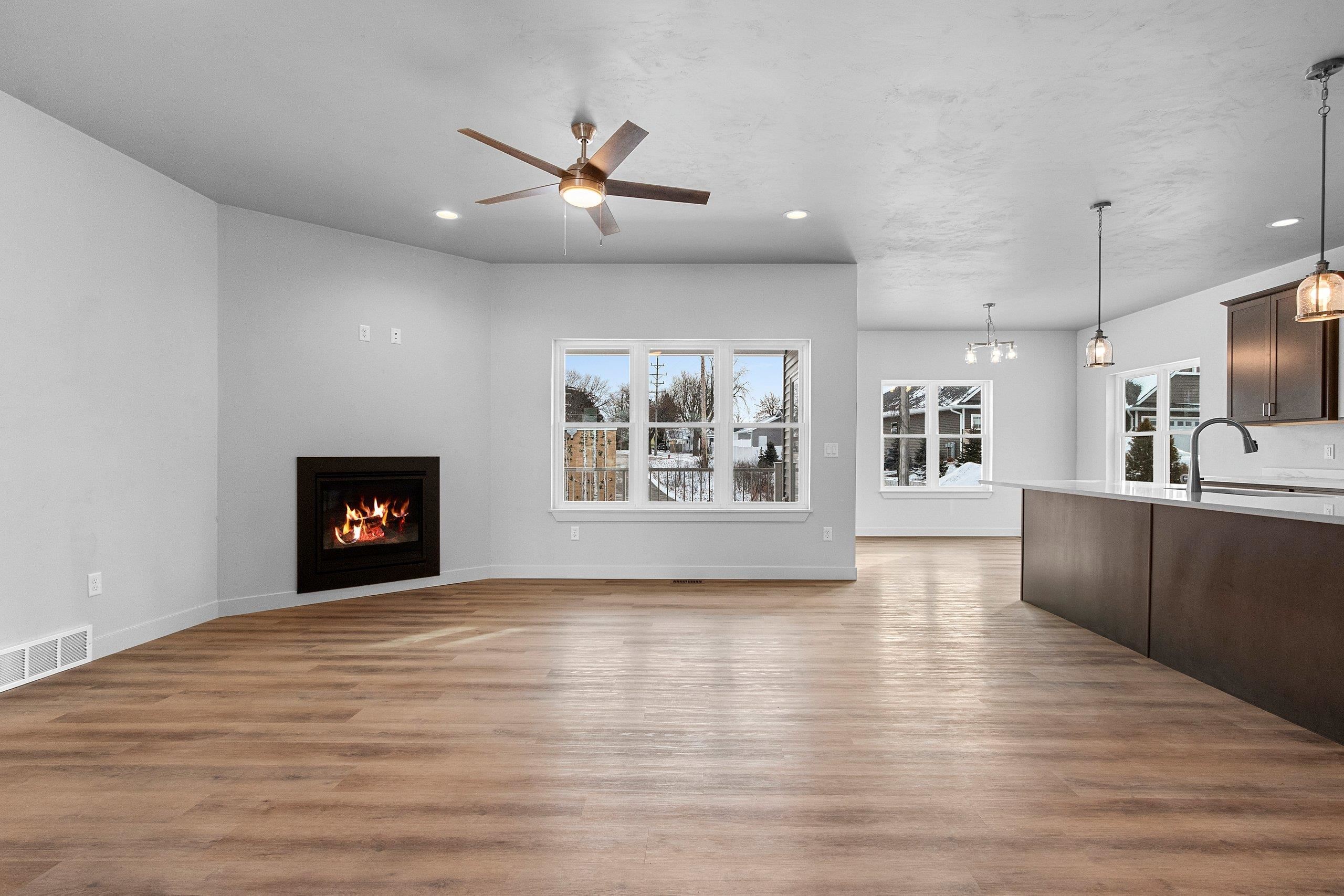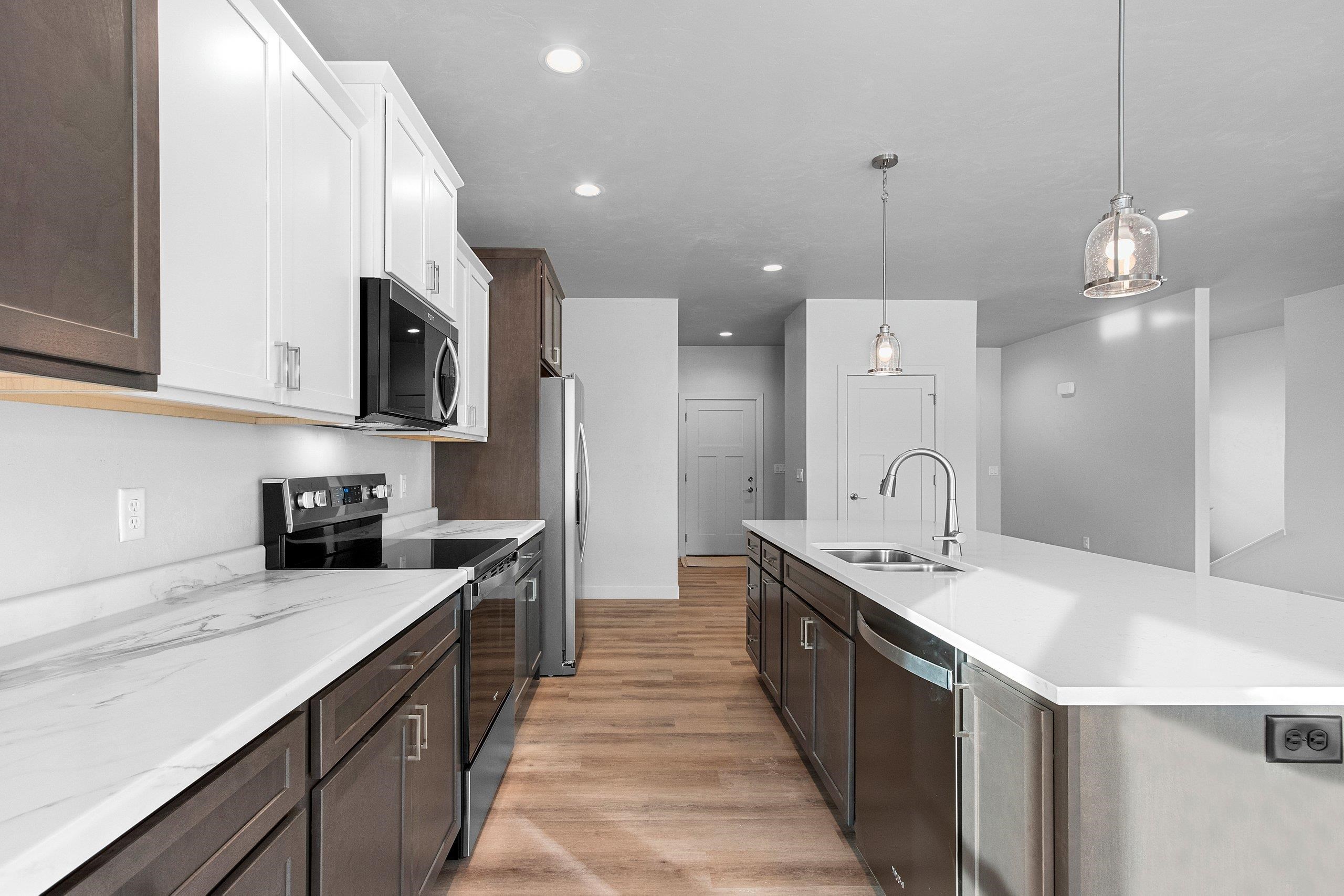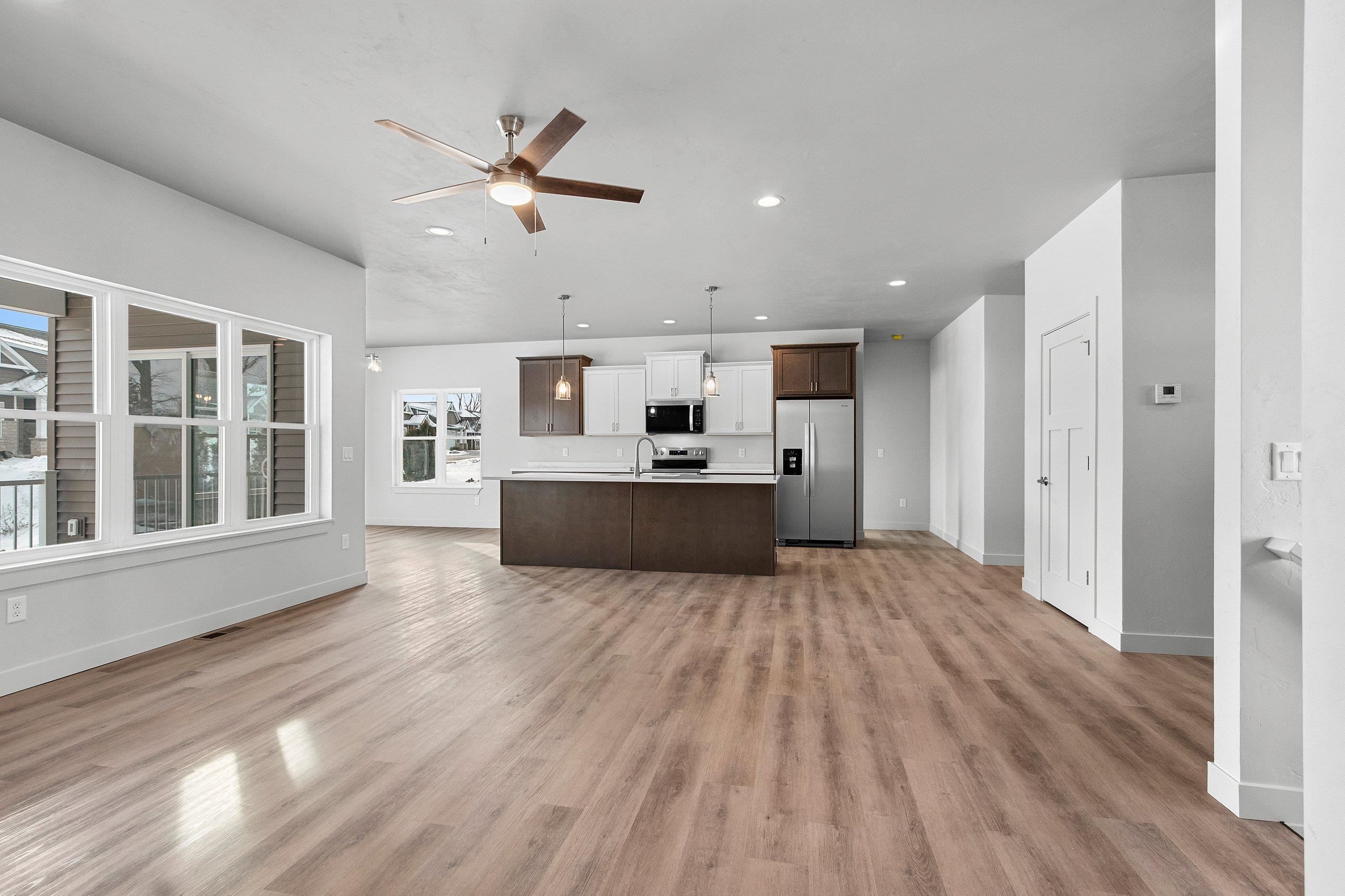 Welcome to this beautifully newly constructed home featuring zero-entry access, a desirable split floor plan, and clean, modern finishes throughout. The open-concept main level is perfect for everyday living and entertaining, flowing seamlessly to a covered deck for outdoor enjoyment. The lower level offers exposed daylight windows and a finished living room, with additional space ready to expand or add a bedroom to fit your needs. Complete with a 3-stall garage, including an extra-deep third stall for storage or hobbies, this home combines style, function, and flexibility in a fresh, timeless design. Addendum 1 to be included with any offers.