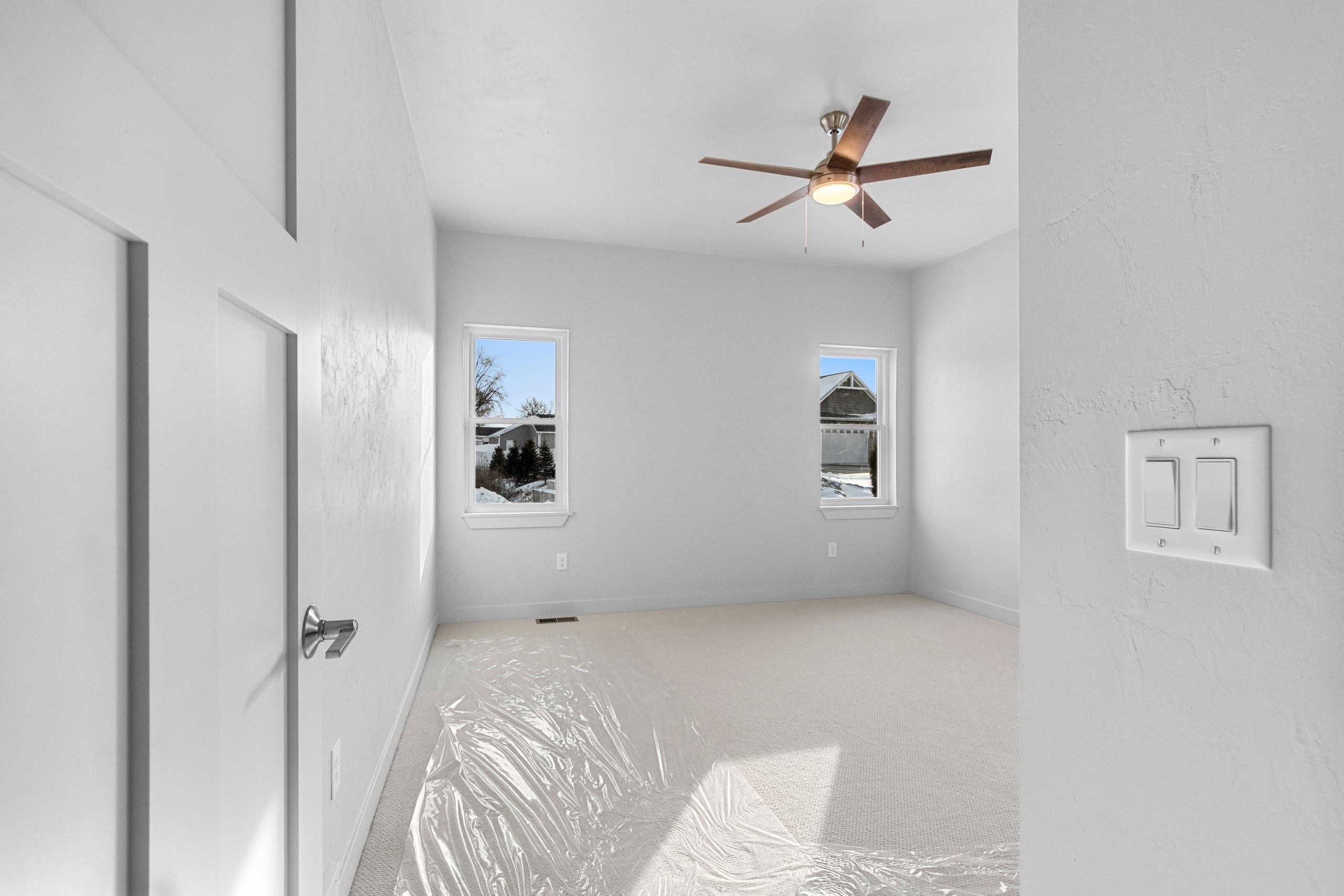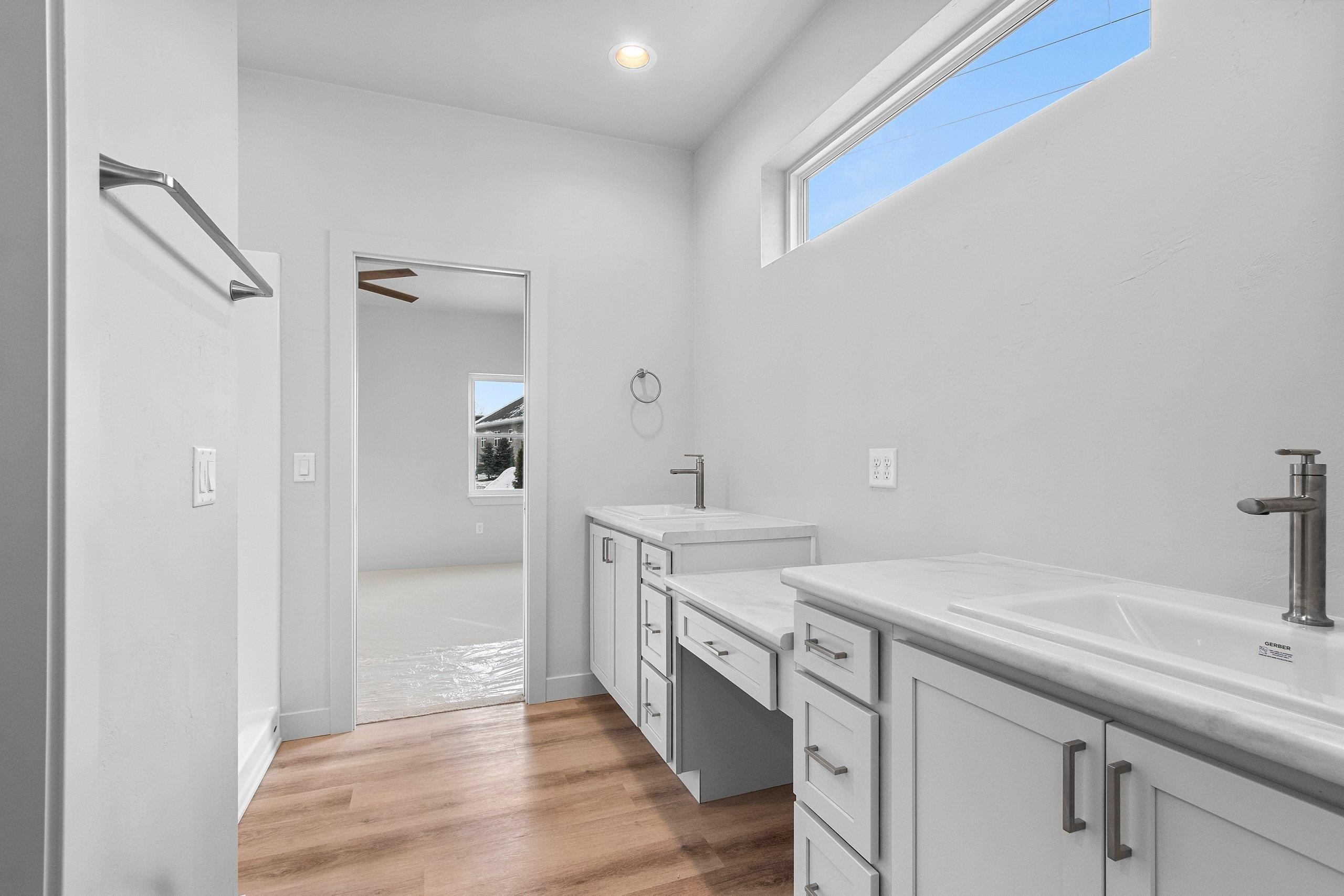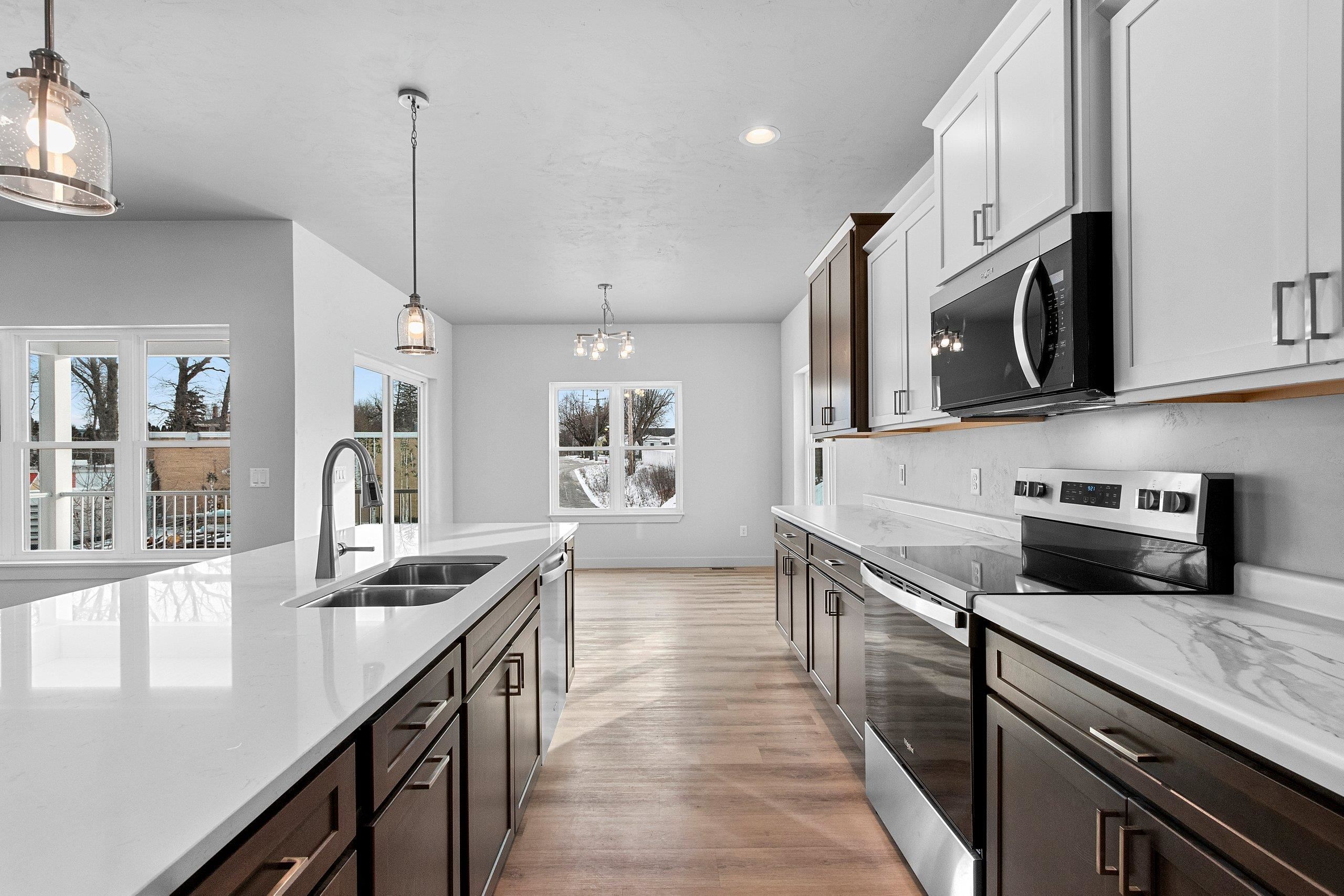 Welcome to this beautifully newly constructed home featuring zero-entry access, a desirable split floor plan, and clean, modern finishes throughout. The open-concept main level is perfect for everyday living and entertaining, flowing seamlessly to a covered deck for outdoor enjoyment. The lower level offers exposed daylight windows and a finished living room, with additional space ready to expand or add a bedroom to fit your needs. Complete with a 3-stall garage, including an extra-deep third stall for storage or hobbies, this home combines style, function, and flexibility in a fresh, timeless design. Addendum 1 to be included with any offers.