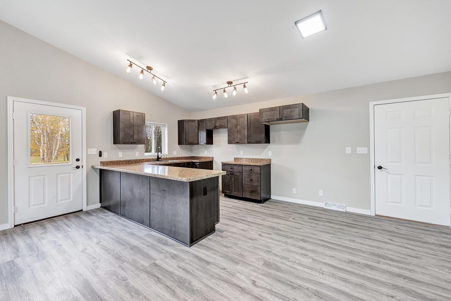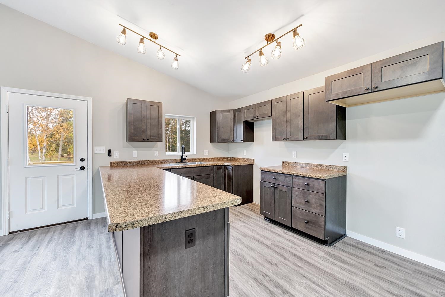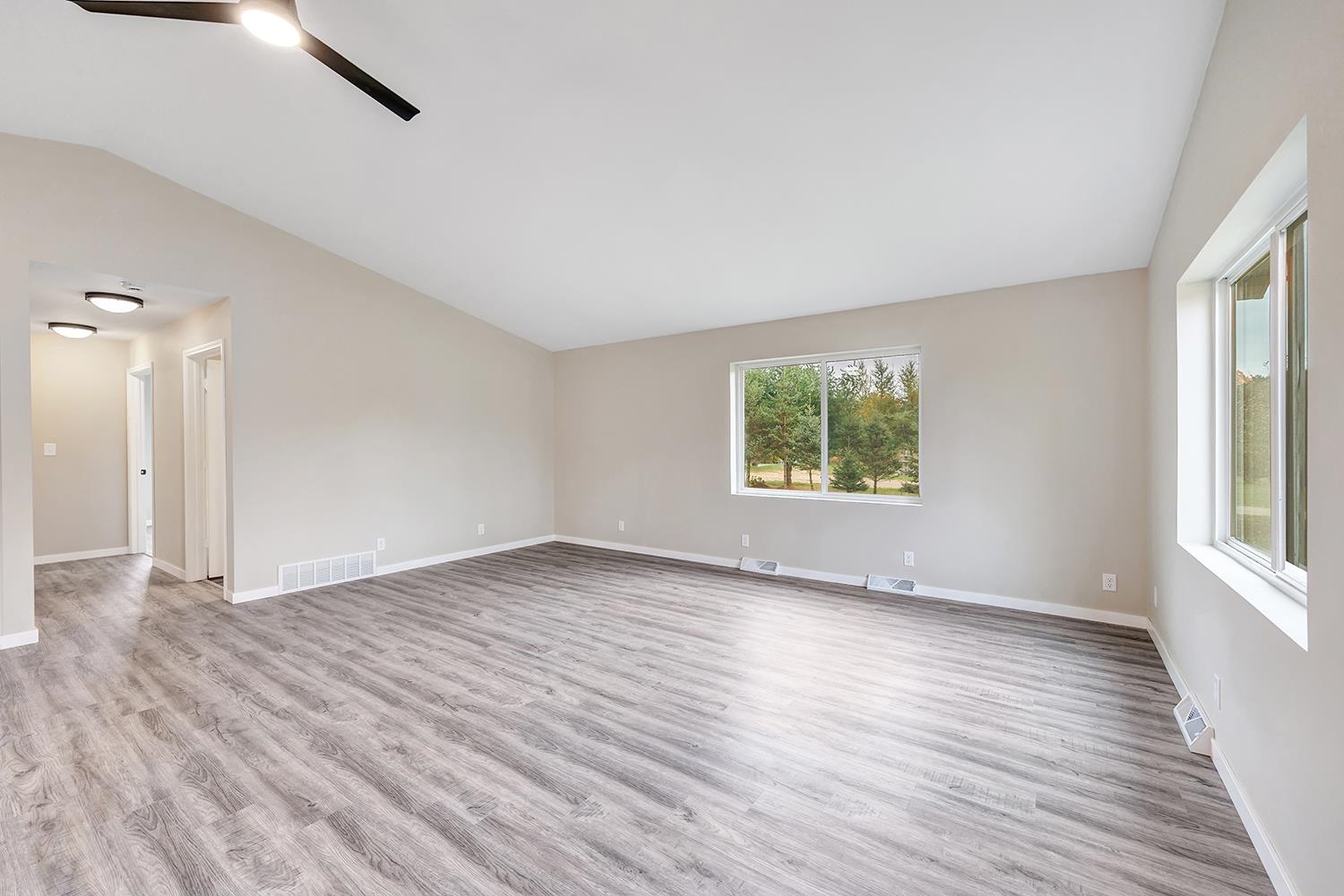 Move-in ready ranch home with walk-out lower level. Completely renovated in 2025! Situated on ¾-acre lot that backs to no homes. Offers freshly painted interior with new waterproof vinyl flooring and modern light fixtures throughout. Open-concept main living area boasts vaulted ceiling and flows seamlessly into the kitchen, showcasing all-new cabinetry and countertops. Main level also features two bedrooms with generous closets, a fully renovated bathroom and convenient laundry area. Newly finished lower level offers daylight windows, door to the backyard, a third bedroom and a full bath with a walk-in shower. The windows and furnace have been updated within the last five years. Located in the heart of an extensive ATV and snowmobile system, minutes from golf courses and many lakes.