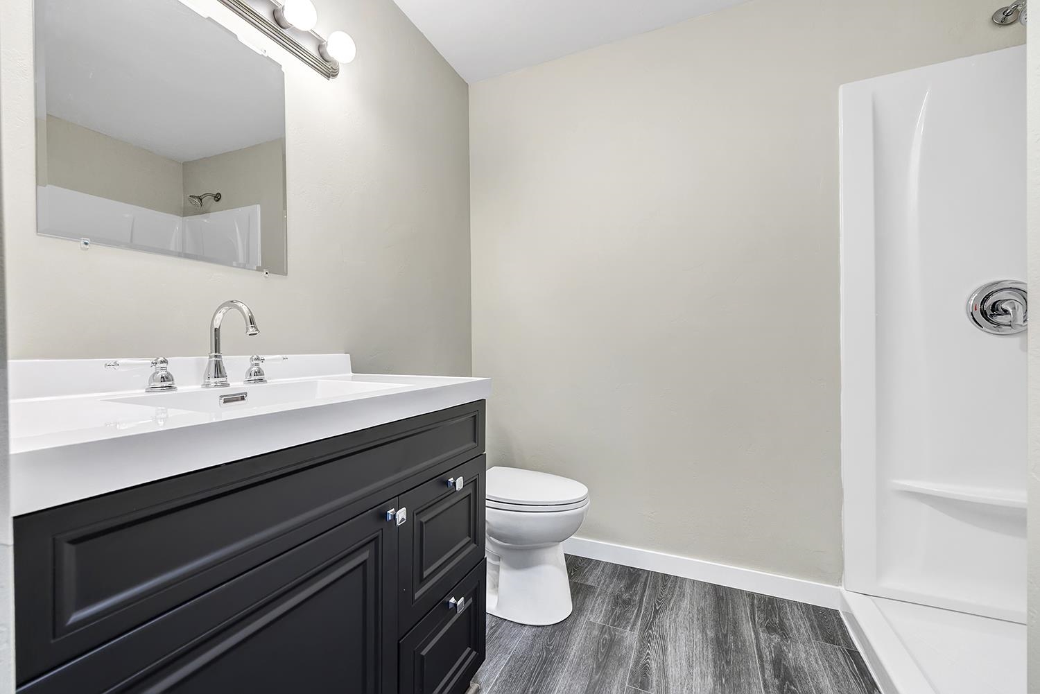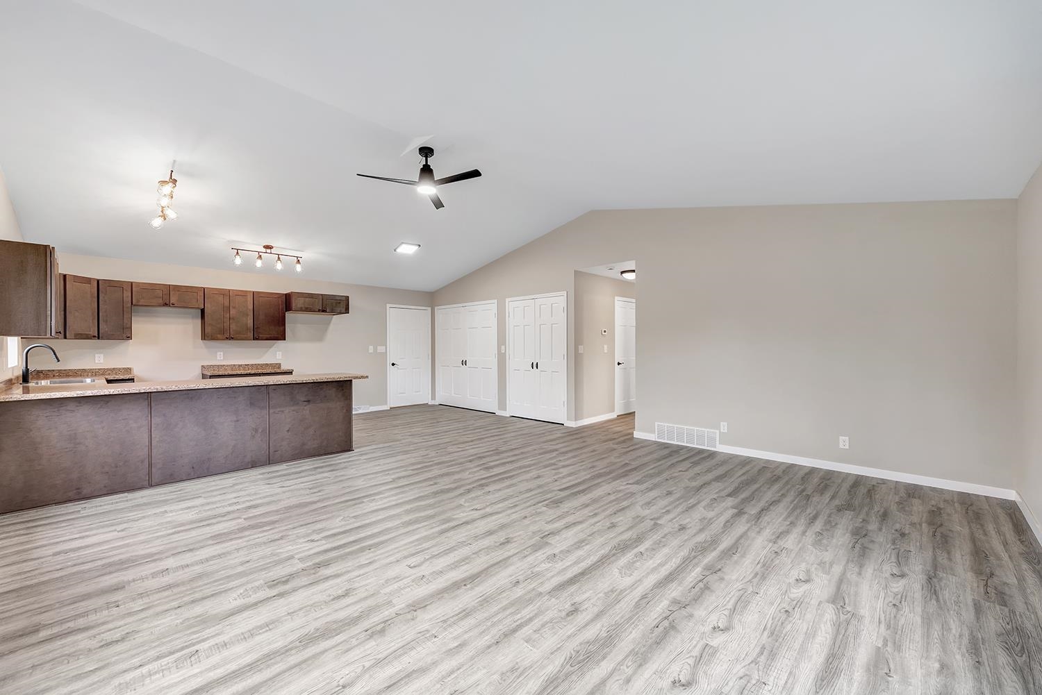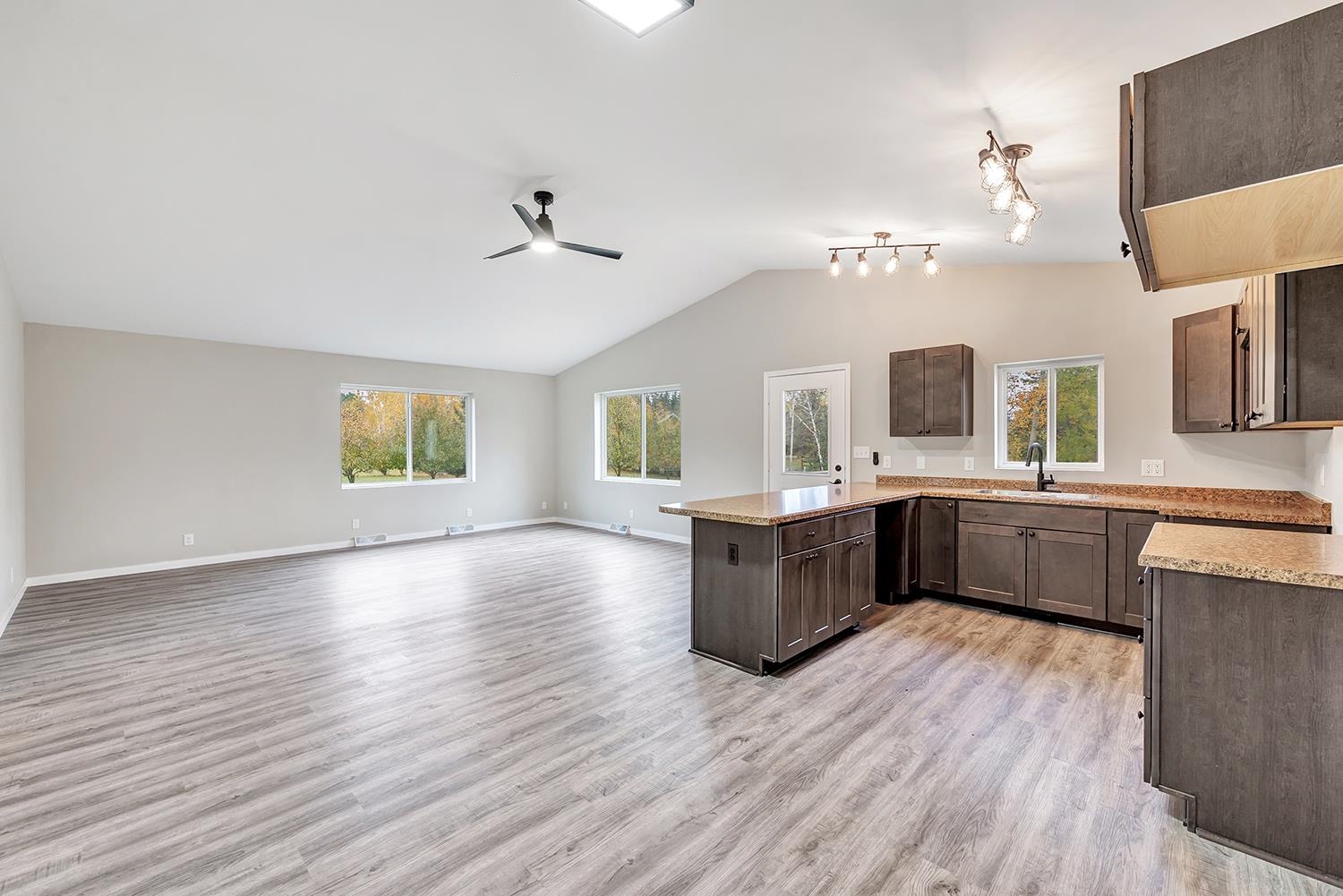 Move-in ready ranch home with walk-out lower level. Completely renovated in 2025! Situated on ¾-acre lot that backs to no homes. Offers freshly painted interior with new waterproof vinyl flooring and modern light fixtures throughout. Open-concept main living area boasts vaulted ceiling and flows seamlessly into the kitchen, showcasing all-new cabinetry and countertops. Main level also features two bedrooms with generous closets, a fully renovated bathroom and convenient laundry area. Newly finished lower level offers daylight windows, door to the backyard, a third bedroom and a full bath with a walk-in shower. The windows and furnace have been updated within the last five years. Located in the heart of an extensive ATV and snowmobile system, minutes from golf courses and many lakes.