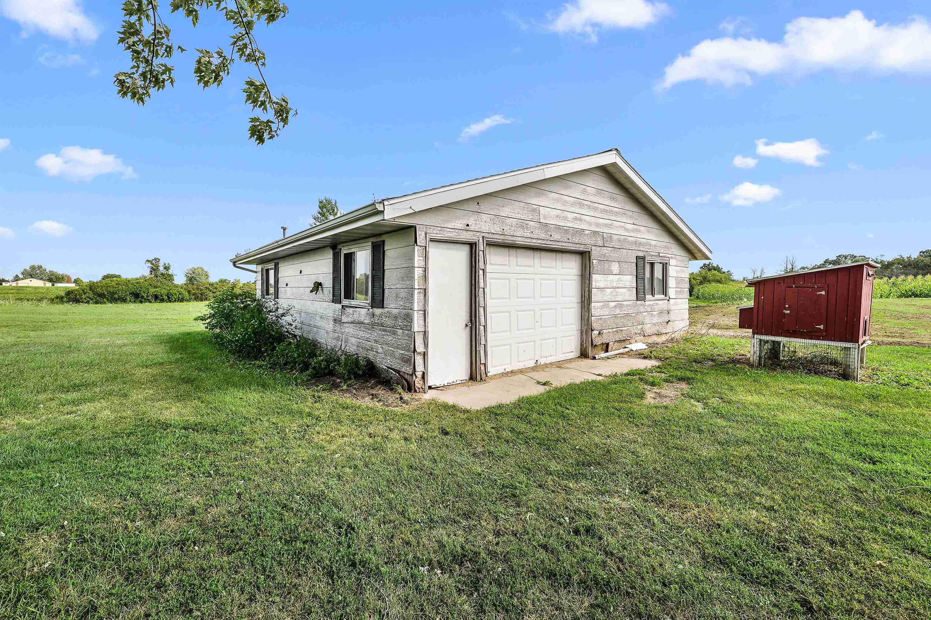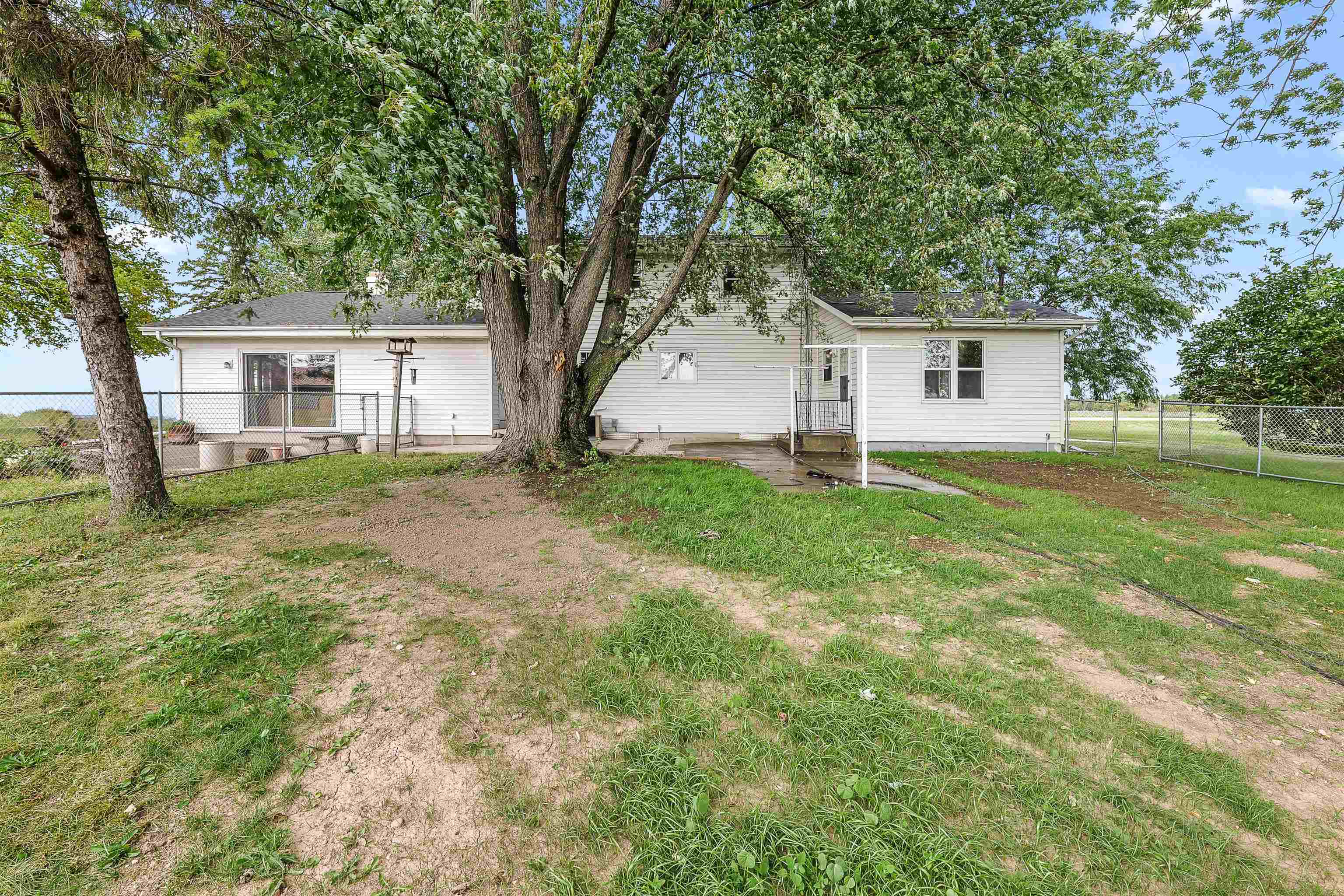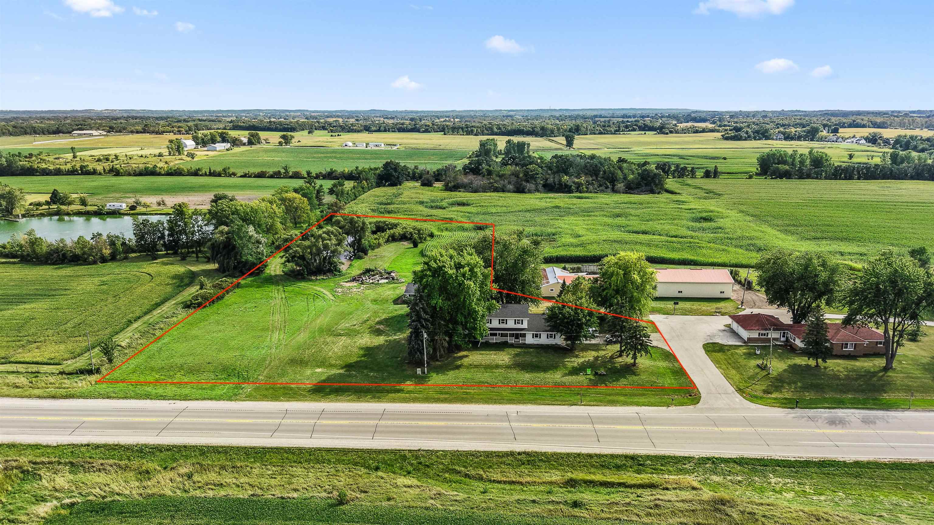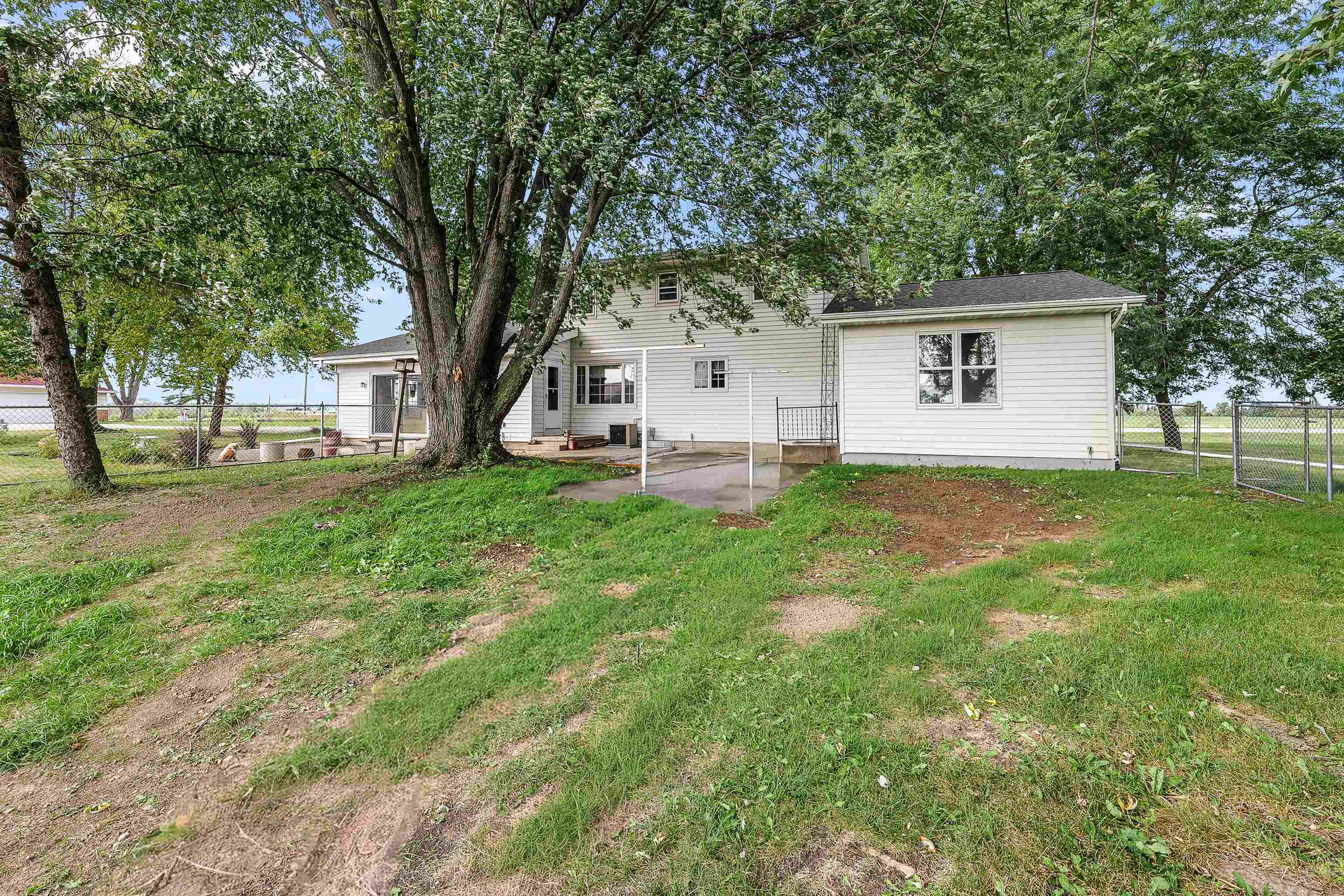 One owner classic colonial 4bed/1.5 bath home built in 1974. Large FR with gas fp and patio doors out to a concrete patio, spacious kitchen w/newer appliances, main level laundry with newer washer and dryer, DR, LR and a bonus 4 season sunroom has a counter, sink, mini fridge and an ext entrance to a fenced in patio area great for pets! 4 bedrooms up and a full bath. LL has a part fin rec room with a bar for entertaining. Unfinished area has a dog bath and 2 year old furnace. New roof in2020, a new septic system Aug '25 new private well Nov '25. Along with the 2 car att 22x19 garage is another 26x27 garage with heat and electric and stalls for small animals - with a new roof and garage door. All this with a peaceful 3.7 acre lot including a pond for fishing