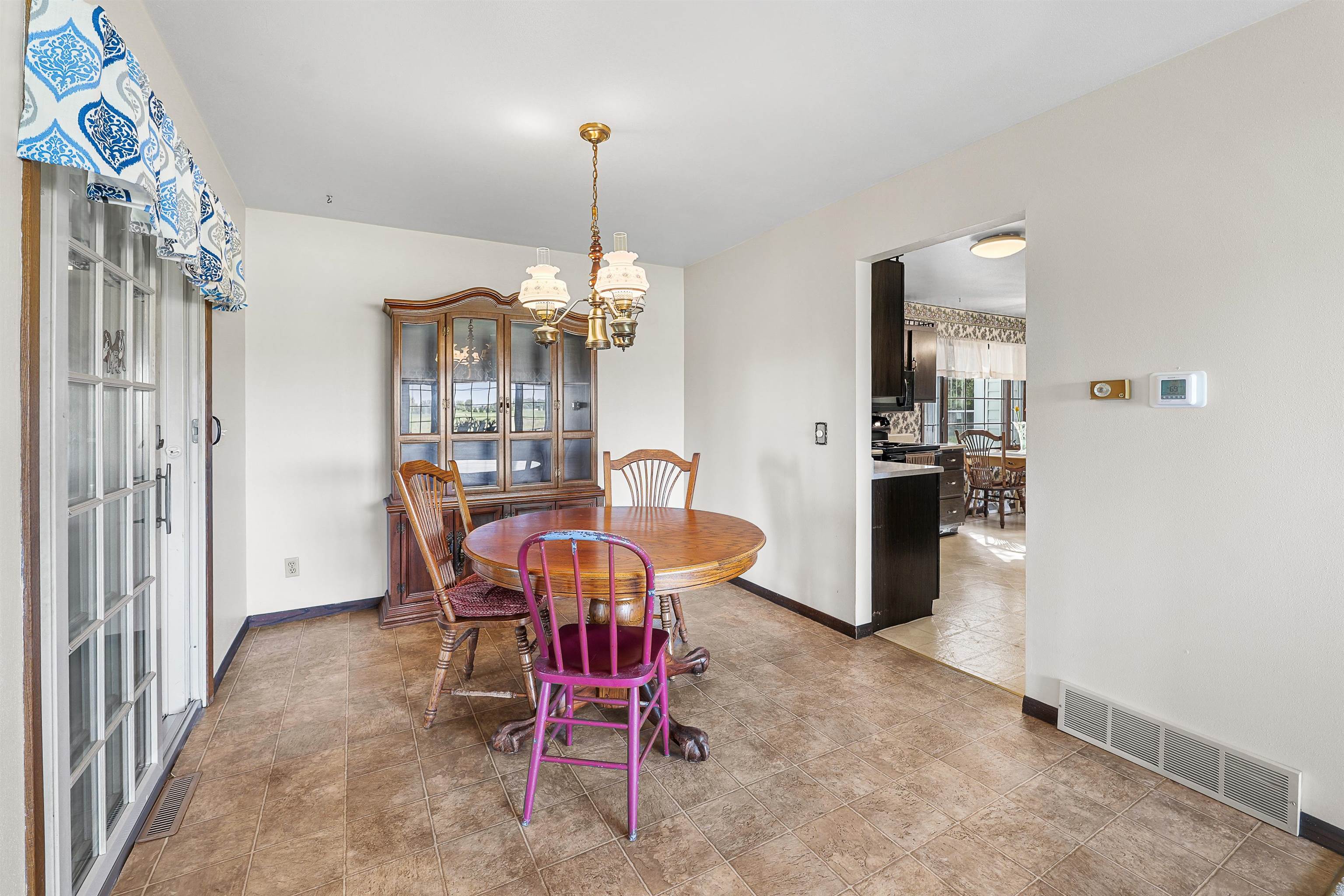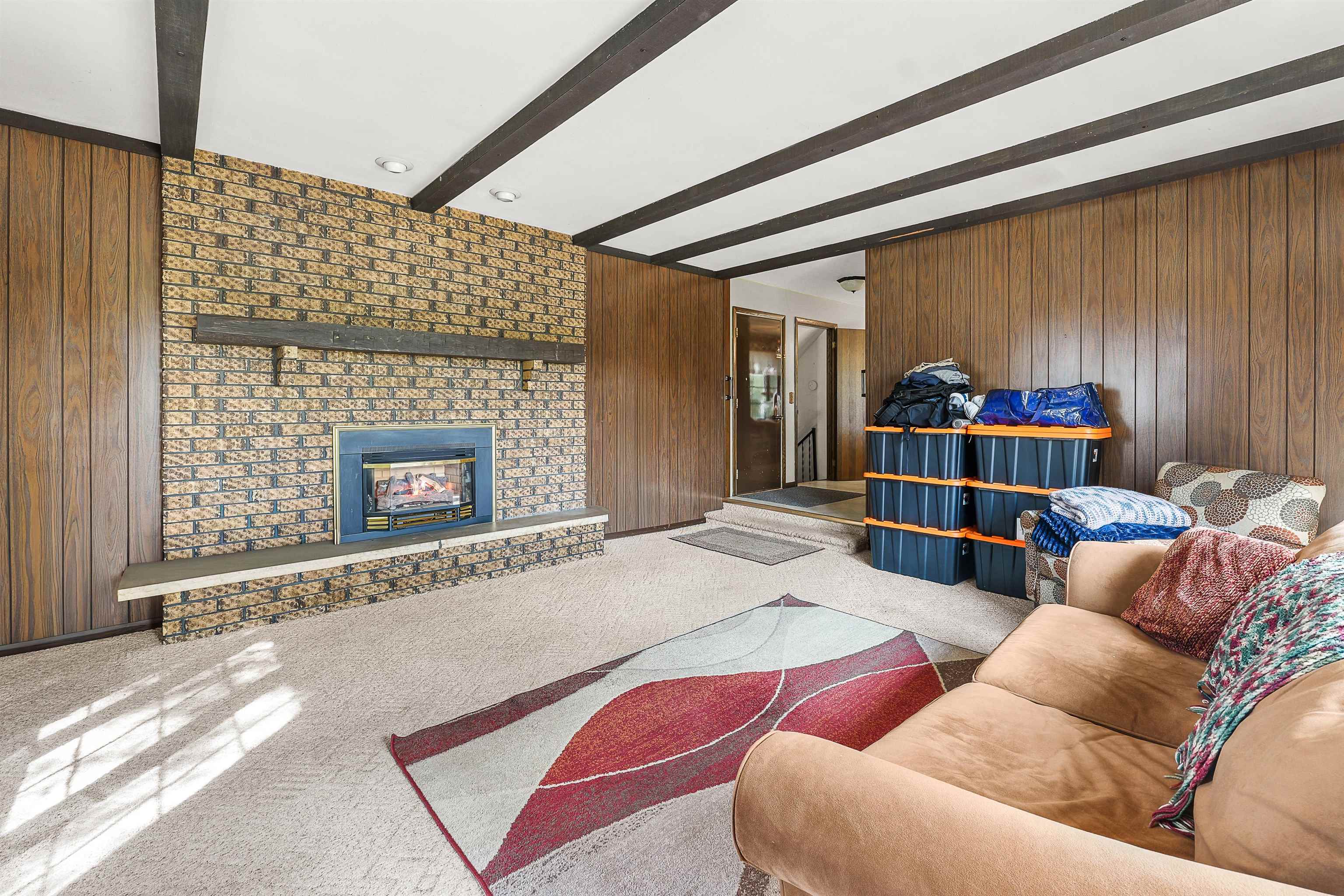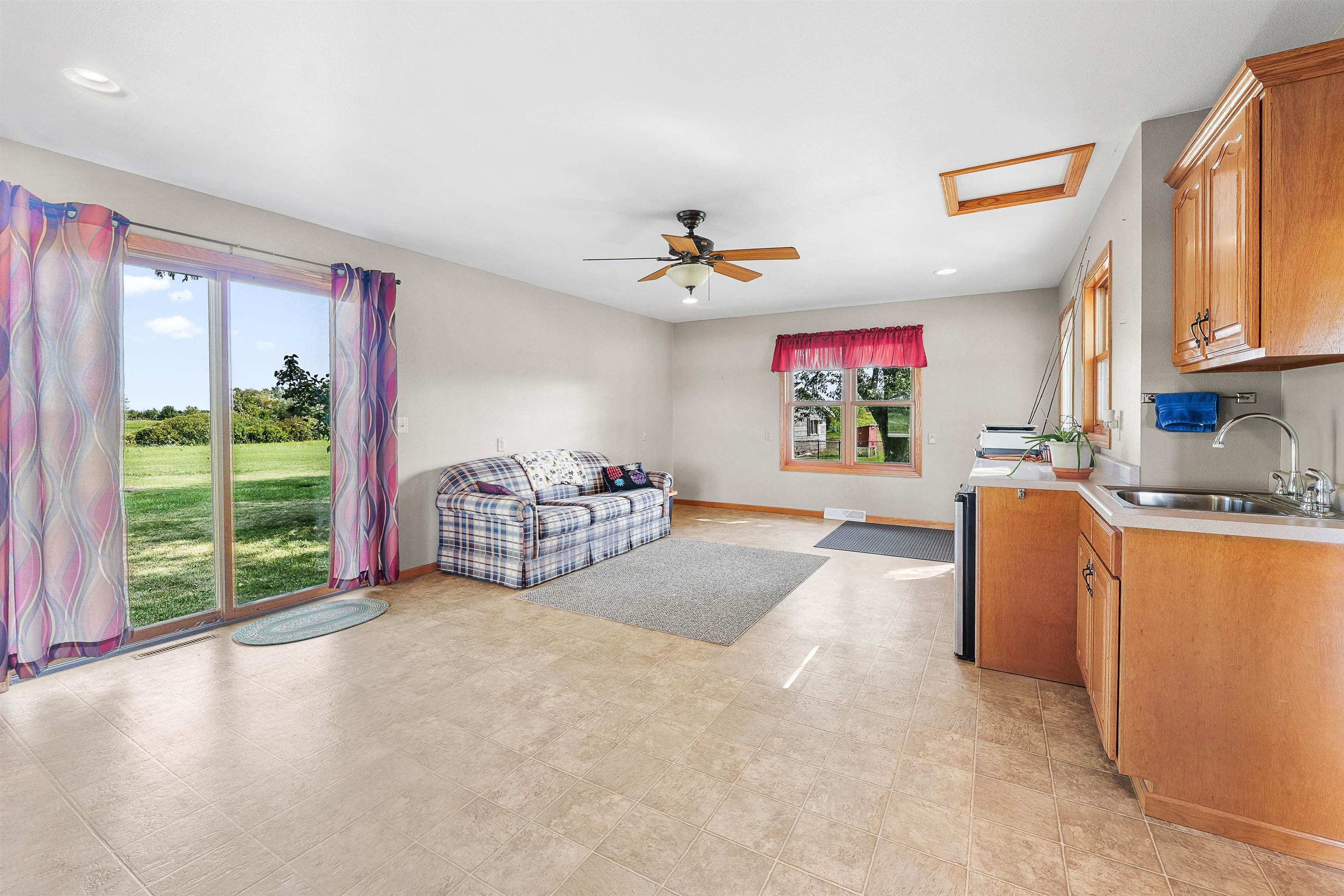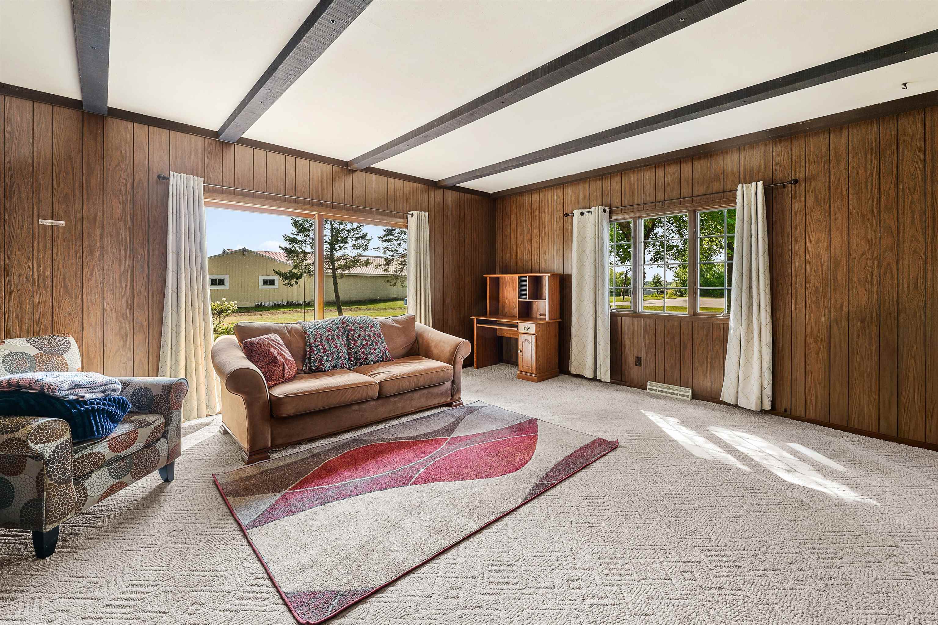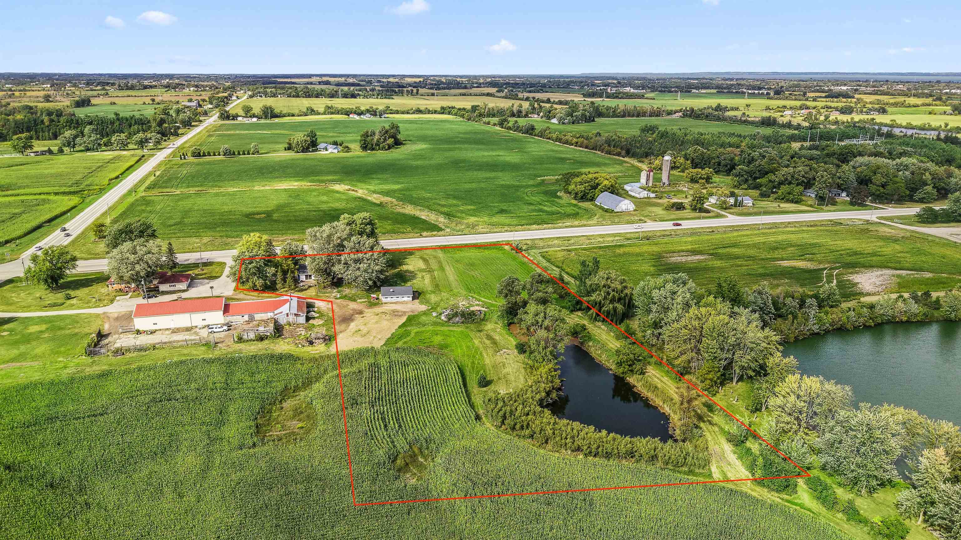 One owner classic colonial 4bed/1.5 bath home built in 1974. Large FR with gas fp and patio doors out to a concrete patio, spacious kitchen w/newer appliances, main level laundry with newer washer and dryer, DR, LR and a bonus 4 season sunroom has a counter, sink, mini fridge and an ext entrance to a fenced in patio area great for pets! 4 bedrooms up and a full bath. LL has a part fin rec room with a bar for entertaining. Unfinished area has a dog bath and 2 year old furnace. New roof in2020, a new septic system Aug '25 new private well Nov '25. Along with the 2 car att 22x19 garage is another 26x27 garage with heat and electric and stalls for small animals - with a new roof and garage door. All this with a peaceful 3.7 acre lot including a pond for fishing