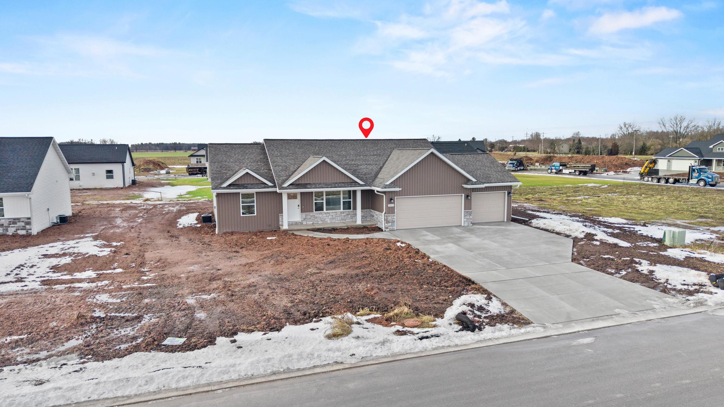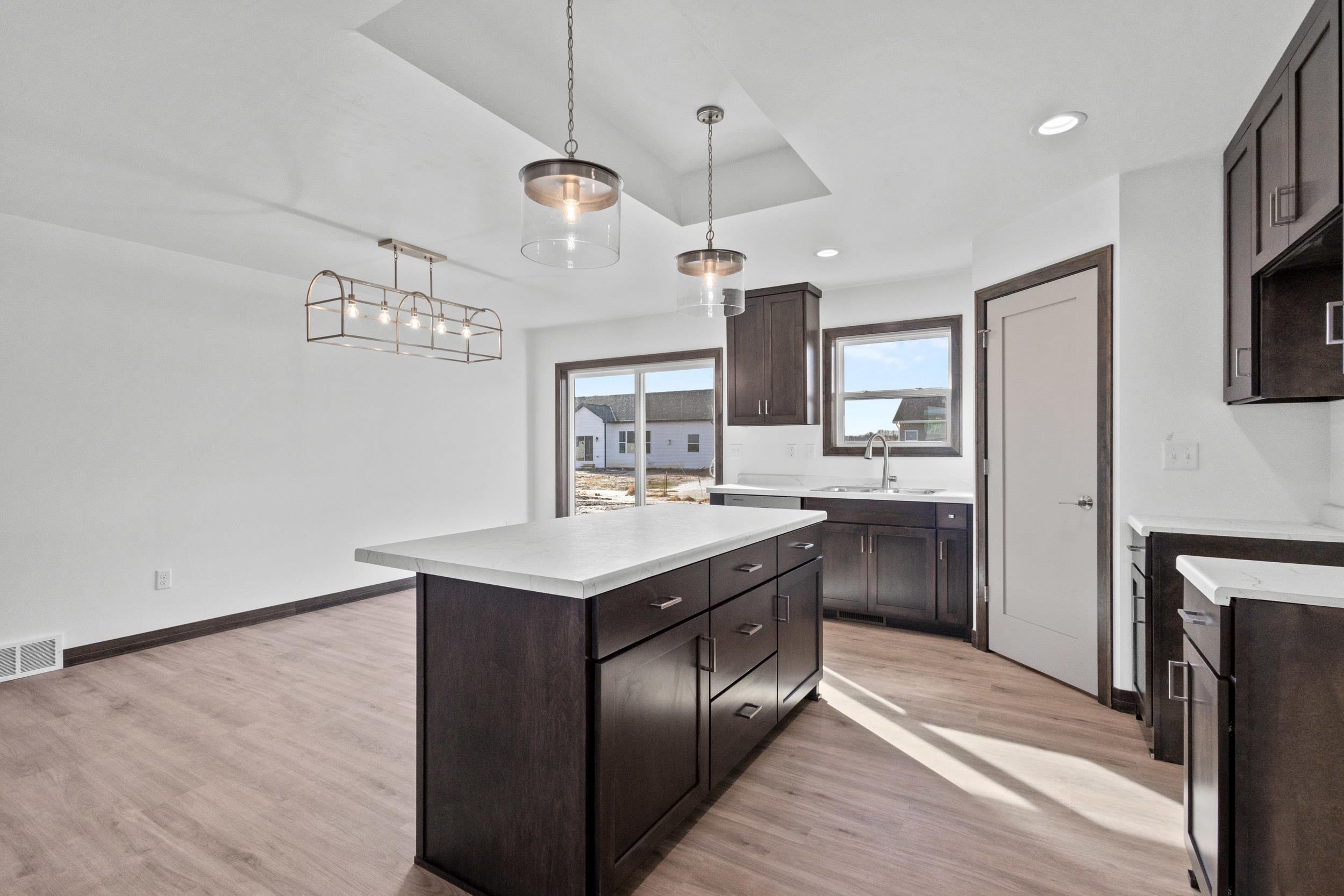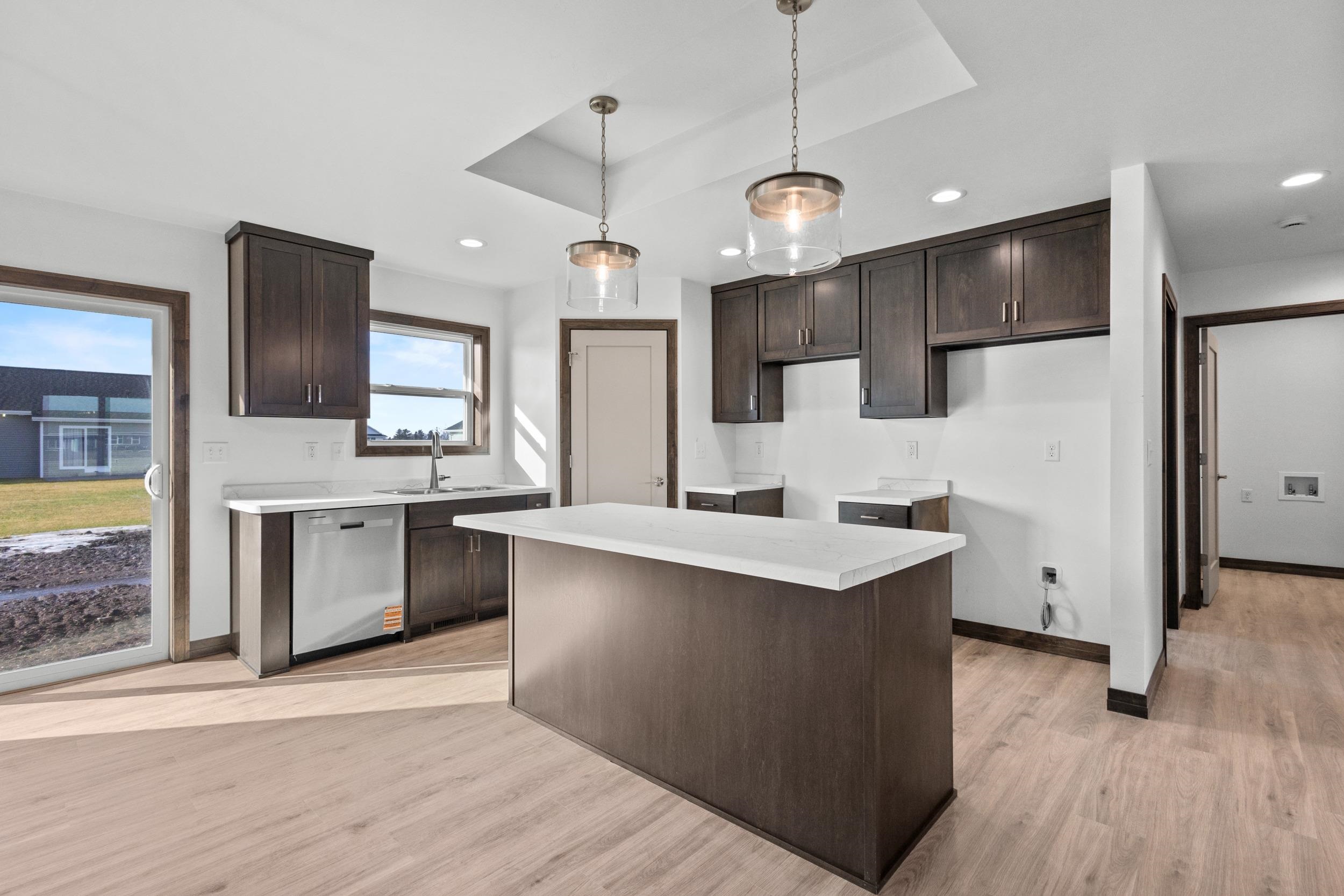 BUILT BY MEACHAM DEVELOPMENT, INC.-A FOCUS ON ENERGY CERTIFIED HOME-Welcome home to this warm & inviting, open concept three bed, two bath ranch. Step into a beautiful kitchen complete with Driftwood stained, custom maple cabinets. Chatoosa Natural Beech luxury vinyl plank flooring can be found throughout the main living areas. The primary bedroom is a suite, complete with dual vanities in the attached bath and spacious walk-in closet! Lower level is stubbed for a bathroom and has an egress window for future expansion. In addition, the Town of Lawrence plans to develop Lot 9 further into a small park space with walking trails to serve the neighborhood.