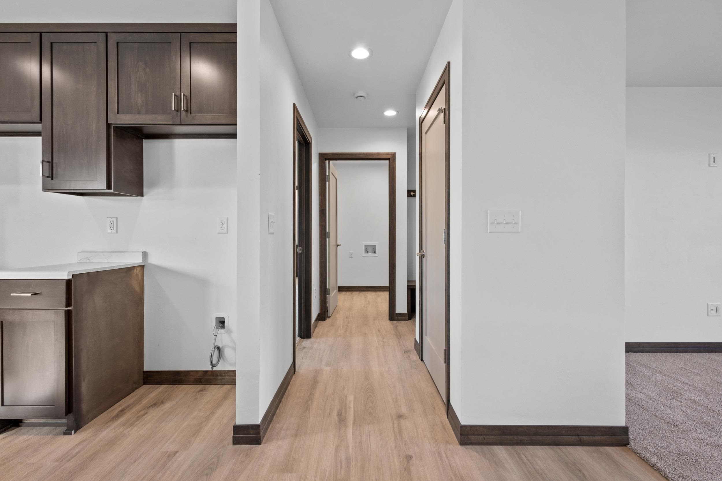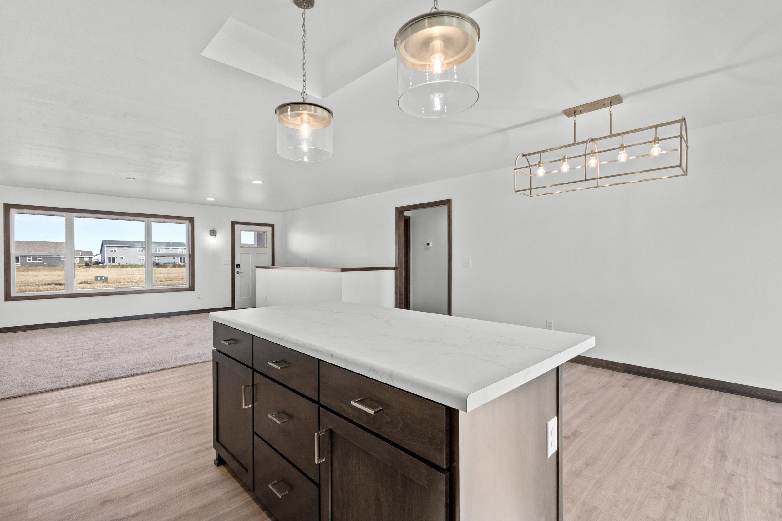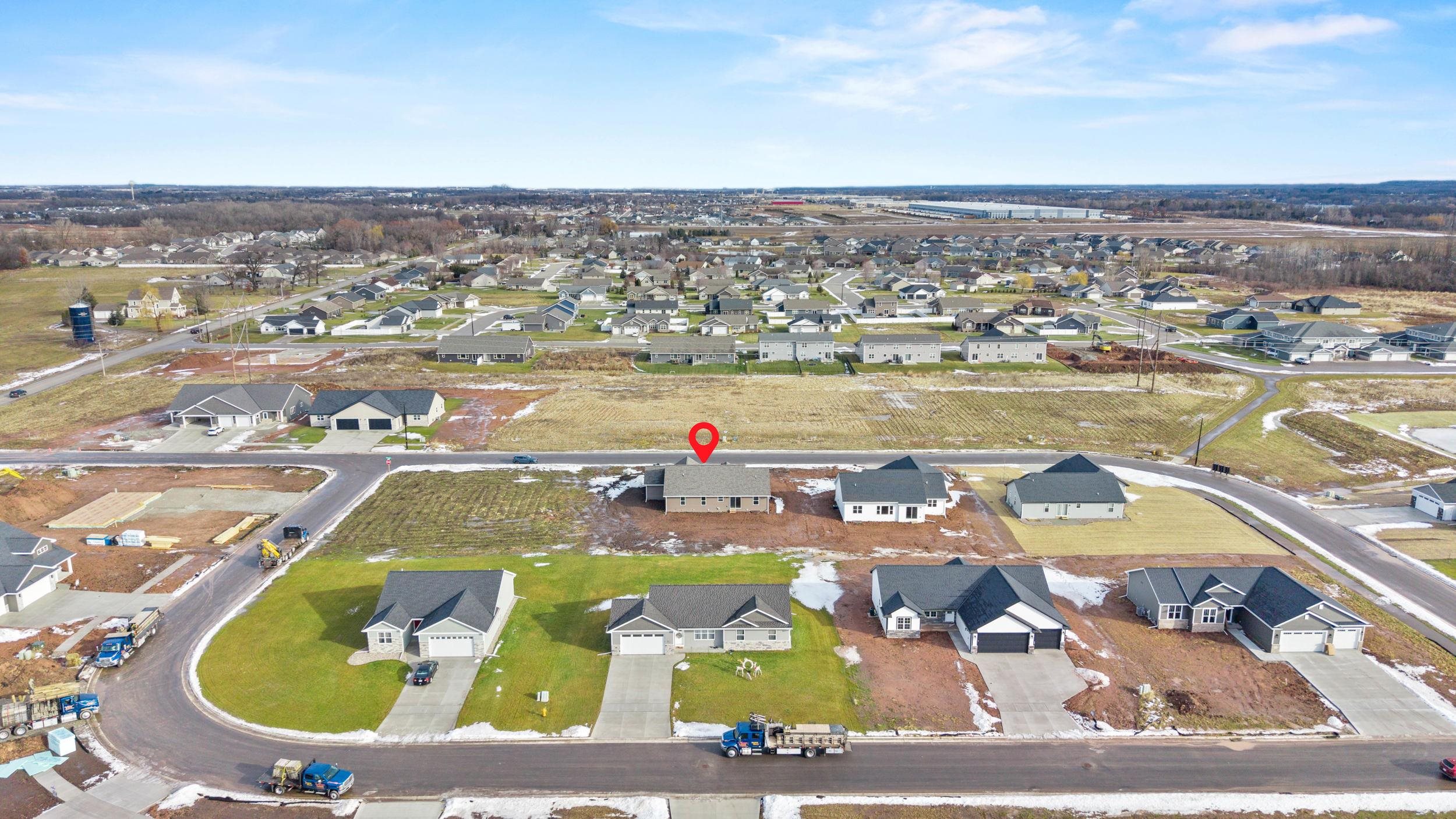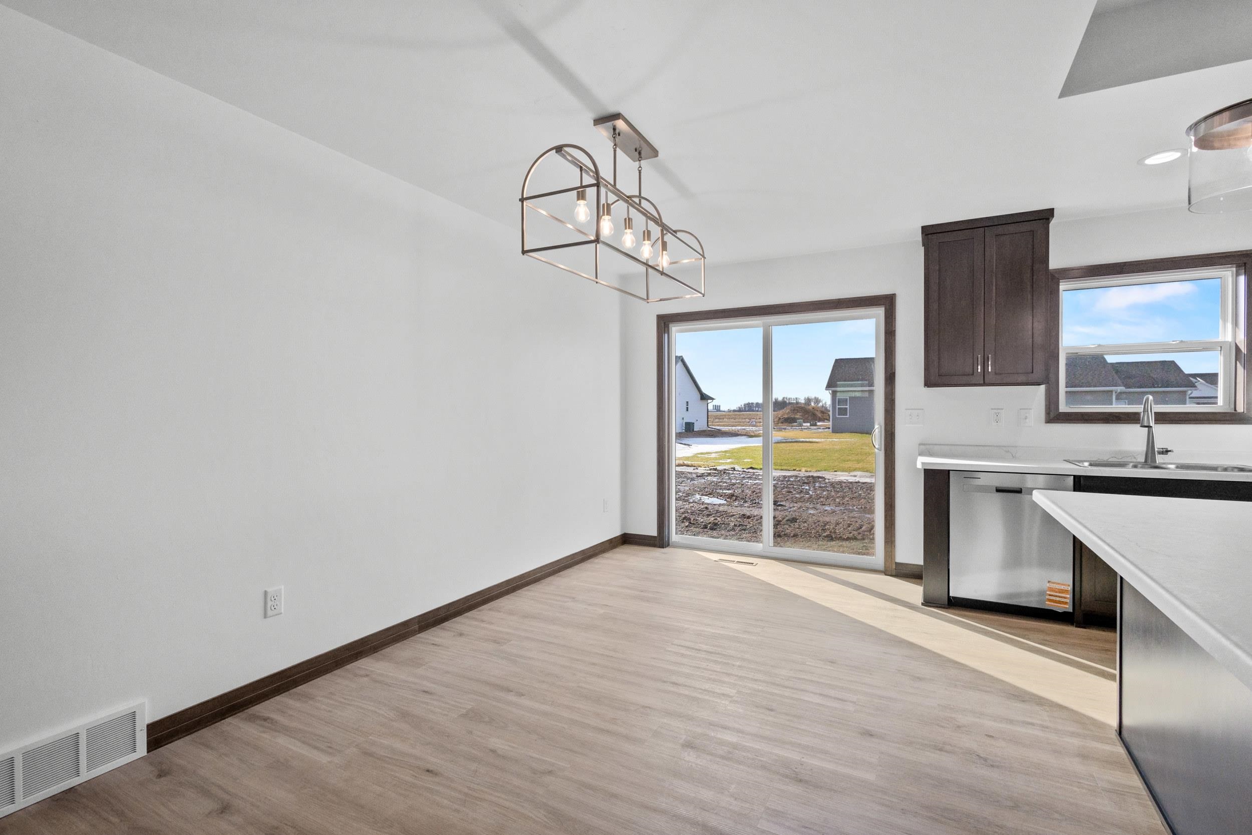 BUILT BY MEACHAM DEVELOPMENT, INC.-A FOCUS ON ENERGY CERTIFIED HOME-Welcome home to this warm & inviting, open concept three bed, two bath ranch. Step into a beautiful kitchen complete with Driftwood stained, custom maple cabinets. Chatoosa Natural Beech luxury vinyl plank flooring can be found throughout the main living areas. The primary bedroom is a suite, complete with dual vanities in the attached bath and spacious walk-in closet! Lower level is stubbed for a bathroom and has an egress window for future expansion. In addition, the Town of Lawrence plans to develop Lot 9 further into a small park space with walking trails to serve the neighborhood.