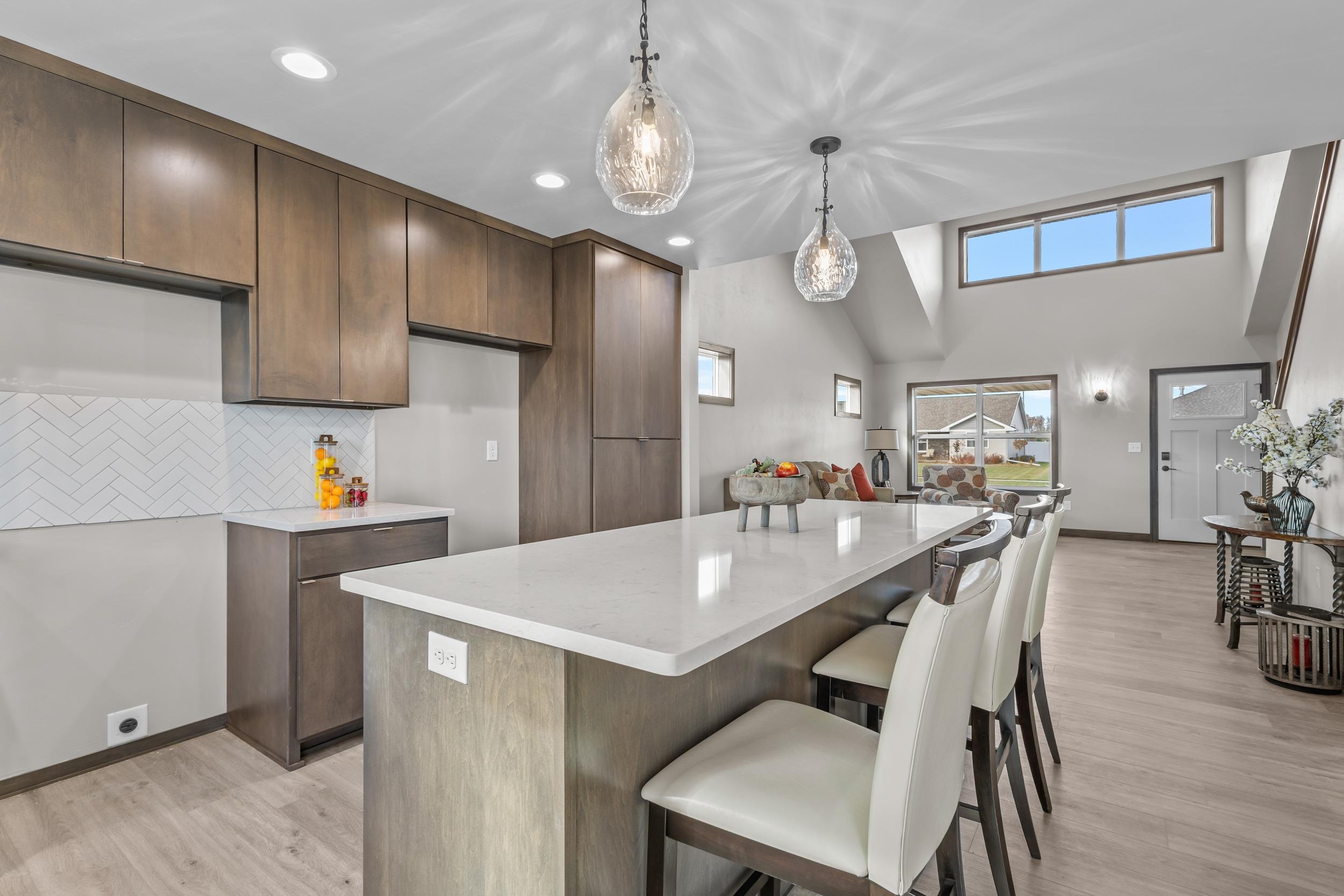 BUILT BY MEACHAM DEVELOPMENT, INC.-A FOCUS ON ENERGY CERTIFIED HOME-Step into this beautiful, 2 story design featuring a first floor primary suite complete with full bathroom, dual vanity & a generous walk in closet. The kitchen has stunning, custom built, Caramel stained maple cabinets with quartz countertops & tile backsplash to complete the look. The main level has an additional half bathroom with gorgeous tile accent wall behind the custom built painted vanity. The spacious upper level has two bedrooms & additional loft area. Lower level is stubbed for an additional bathroom & has an egress window for future expansion. The Town of Lawrence plans to develop Lot 9 further into a small park space with walking trails to serve the neighborhood. INTERIOR PHOTOS ARE SIMILAR TO