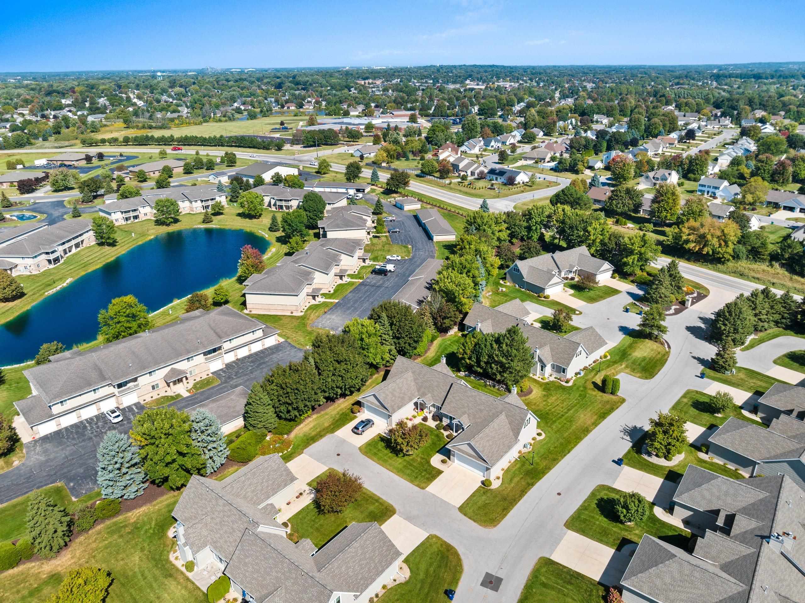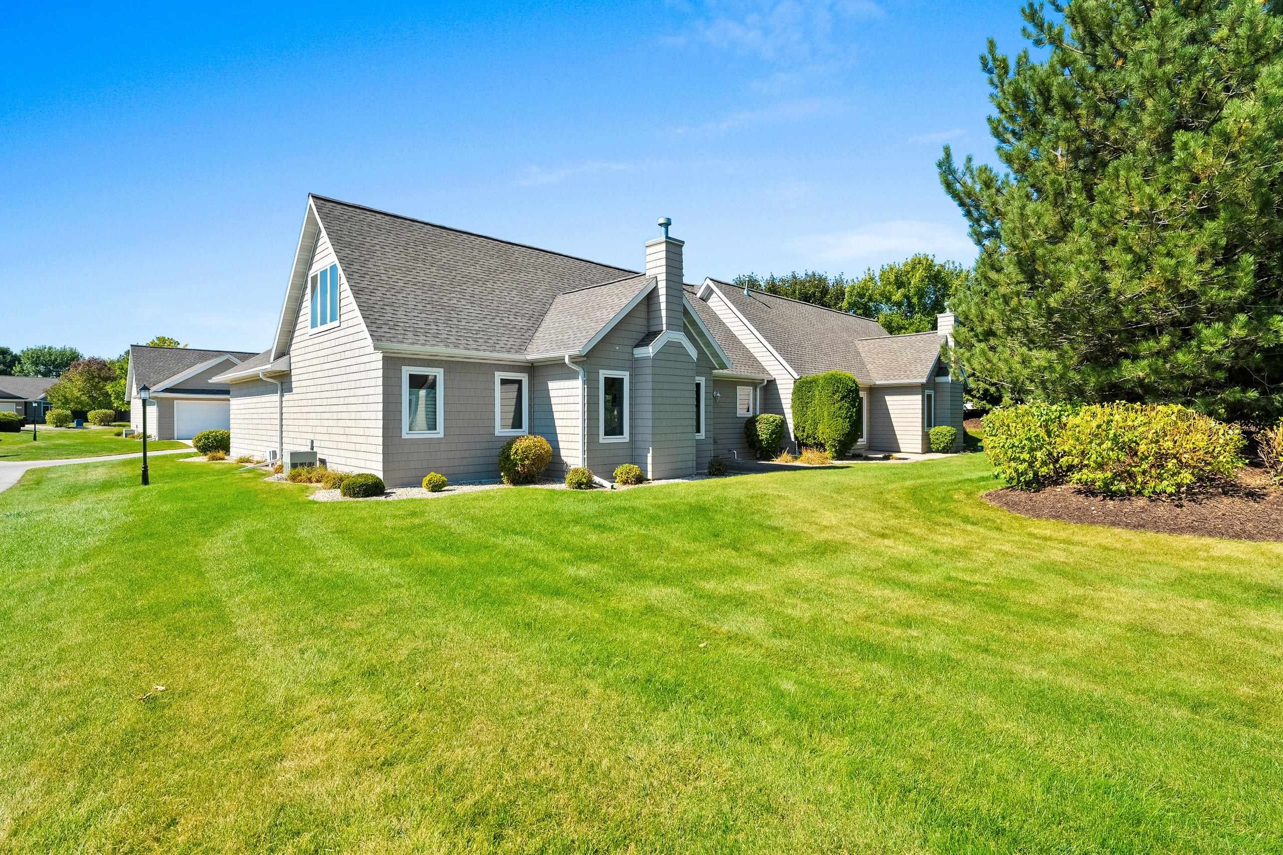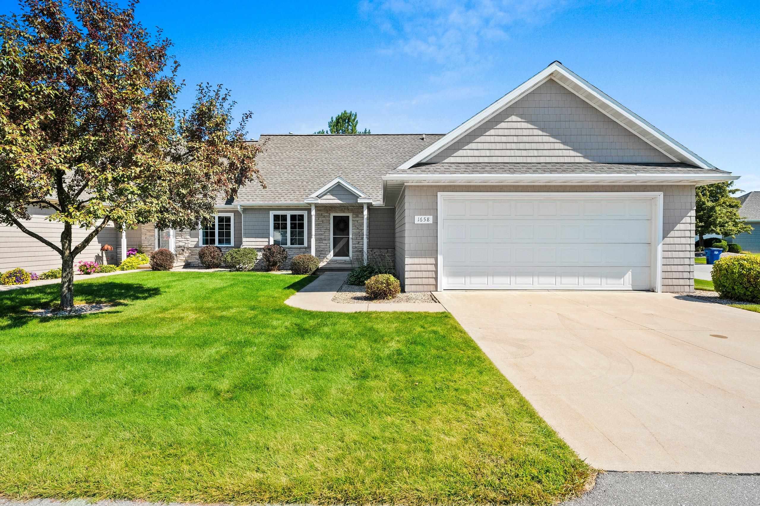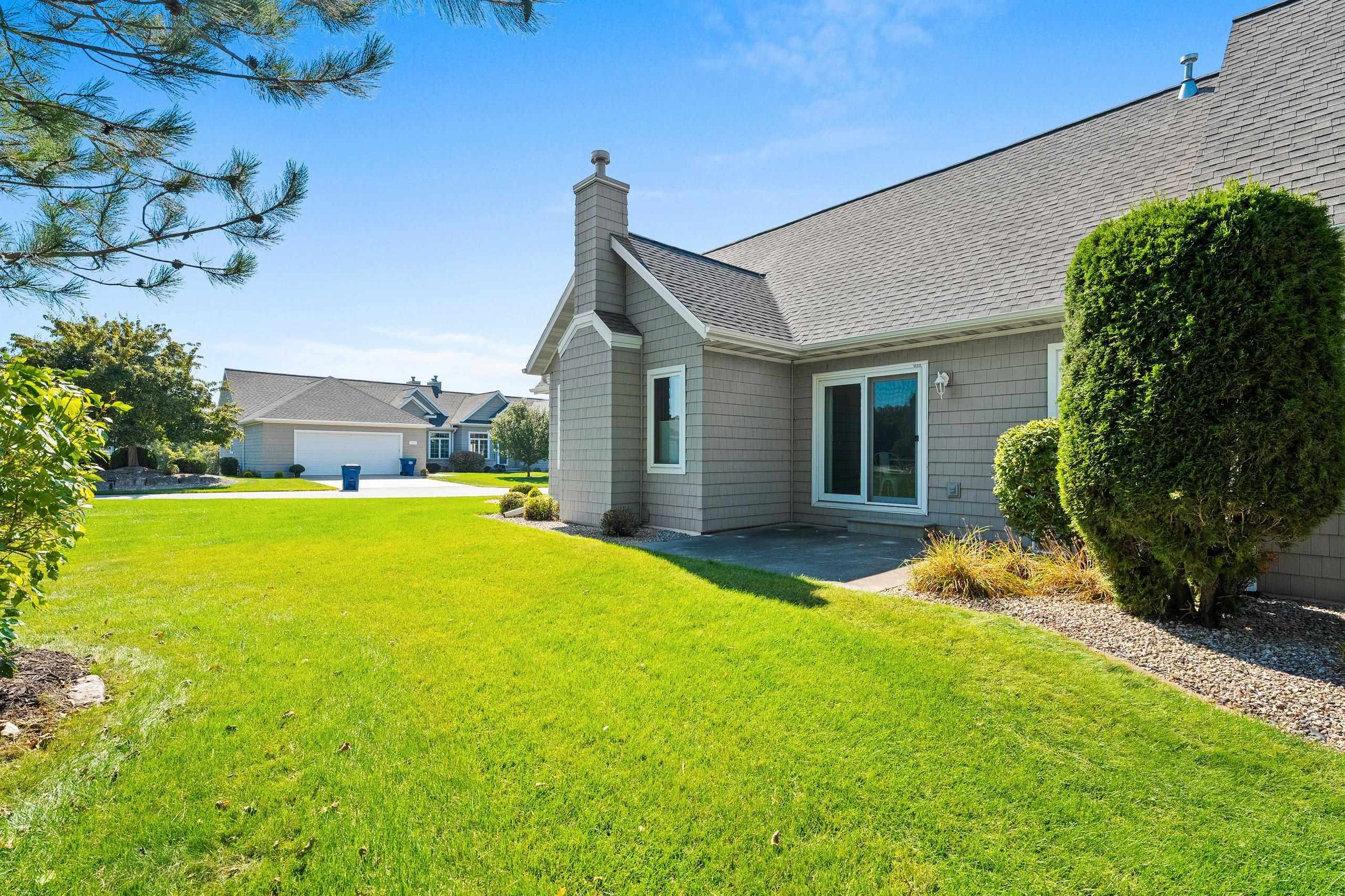 Welcome home to low-maintenance luxury in the heart of Ledgeview! This beautifully maintained one owner condo offers the perfect blend of comfort, style, and convenience—with lawn care and snow removal included, so you can enjoy your time without the upkeep. Step inside to a welcoming open-concept layout highlighted by vaulted ceilings and gleaming hardwood floors. The bright, functional kitchen features maple cabinetry and sliding glass doors that open to a private patio overlooking a professionally landscaped backyard. The main floor offers convenient FF laundry, two generously sized bedrooms, and a spacious primary suite complete with a walk-in closet and private en suite bath. Upstairs, you'll find an additional bedroom—perfect for guests, a home office, or hobby room.
