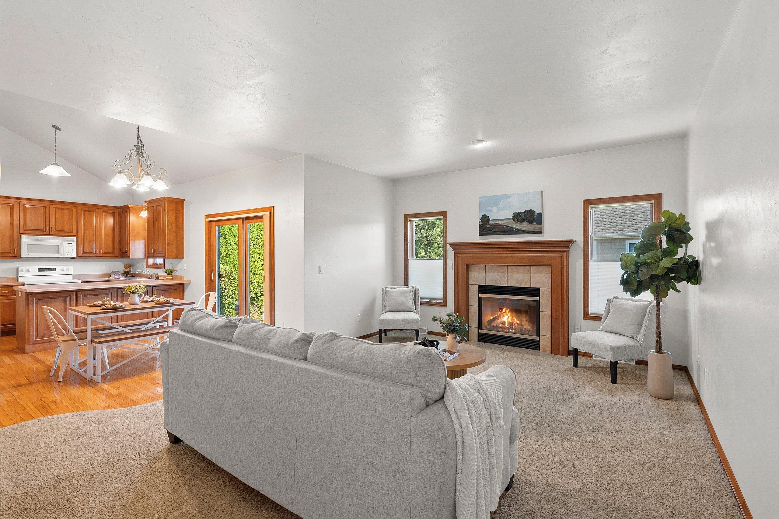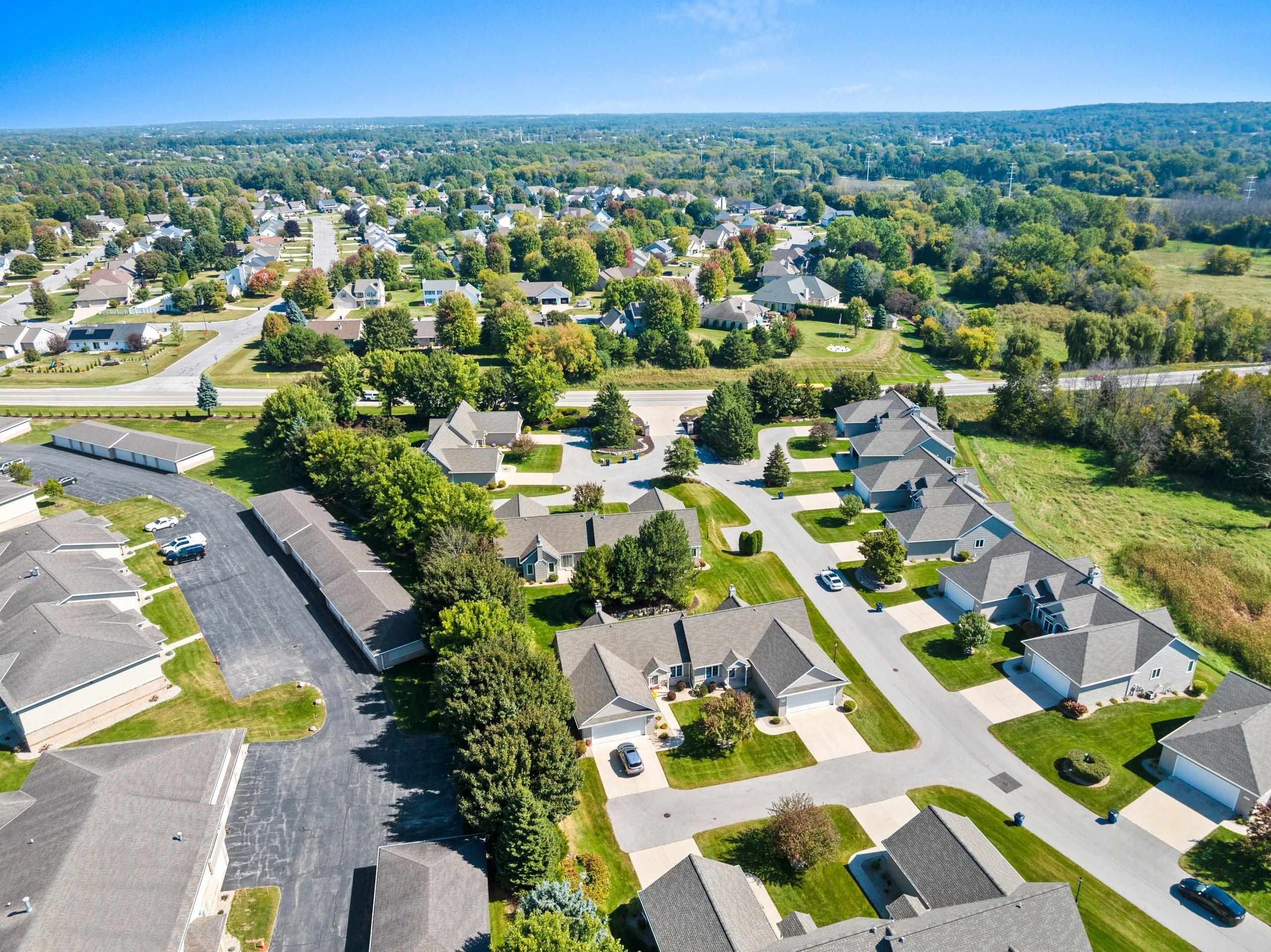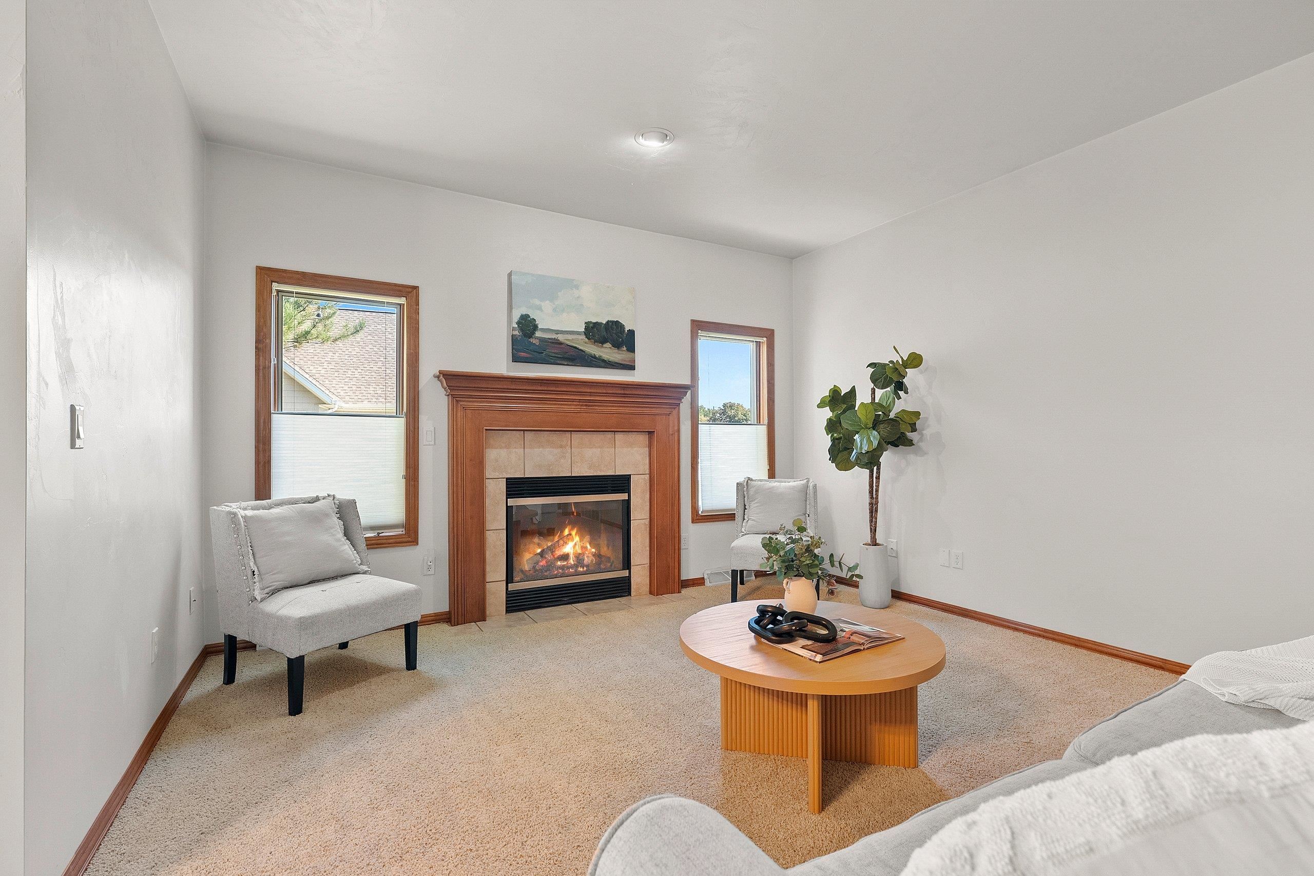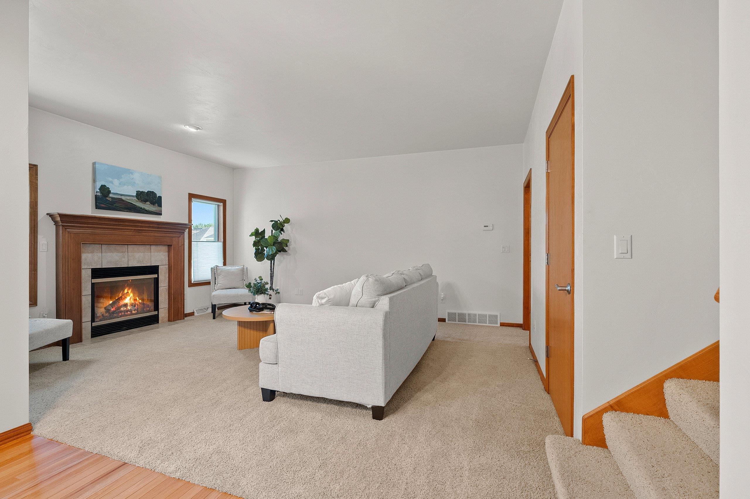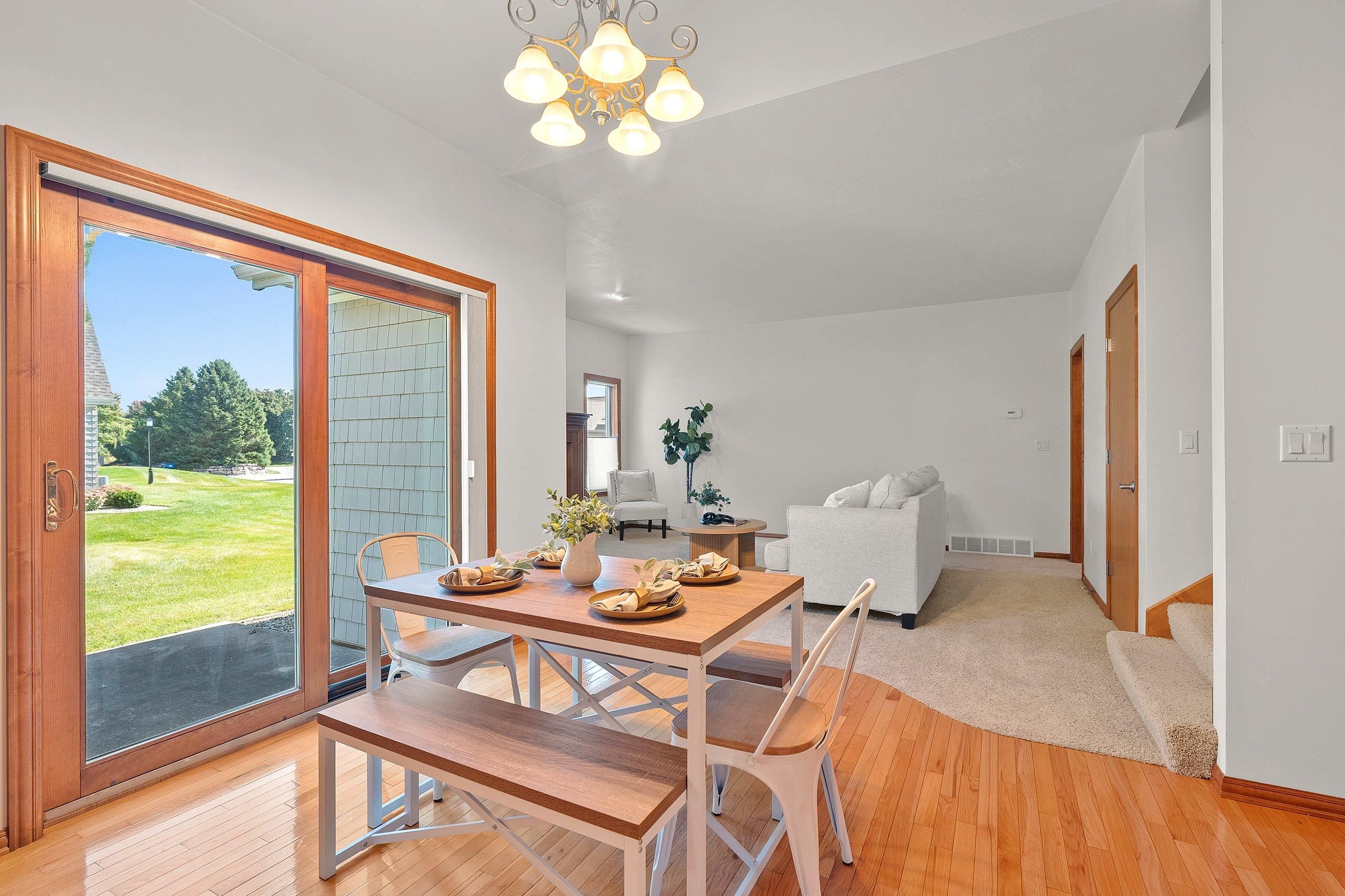 Welcome home to low-maintenance luxury in the heart of Ledgeview! This beautifully maintained one owner condo offers the perfect blend of comfort, style, and convenience—with lawn care and snow removal included, so you can enjoy your time without the upkeep. Step inside to a welcoming open-concept layout highlighted by vaulted ceilings and gleaming hardwood floors. The bright, functional kitchen features maple cabinetry and sliding glass doors that open to a private patio overlooking a professionally landscaped backyard. The main floor offers convenient FF laundry, two generously sized bedrooms, and a spacious primary suite complete with a walk-in closet and private en suite bath. Upstairs, you'll find an additional bedroom—perfect for guests, a home office, or hobby room.