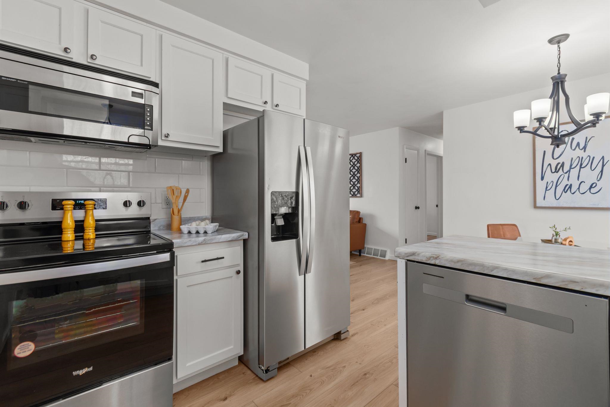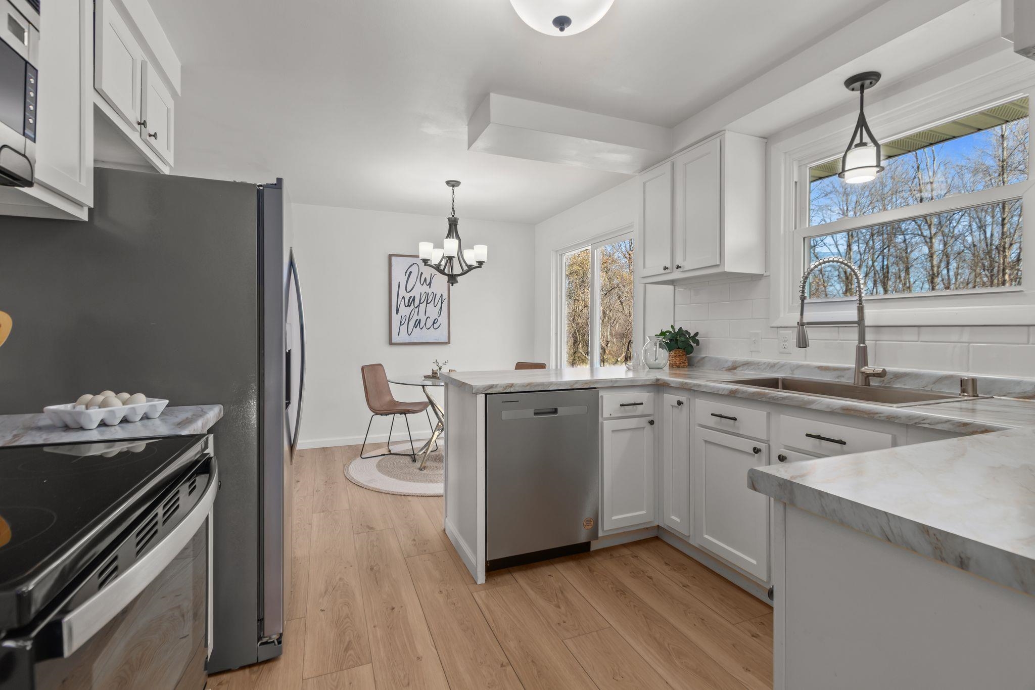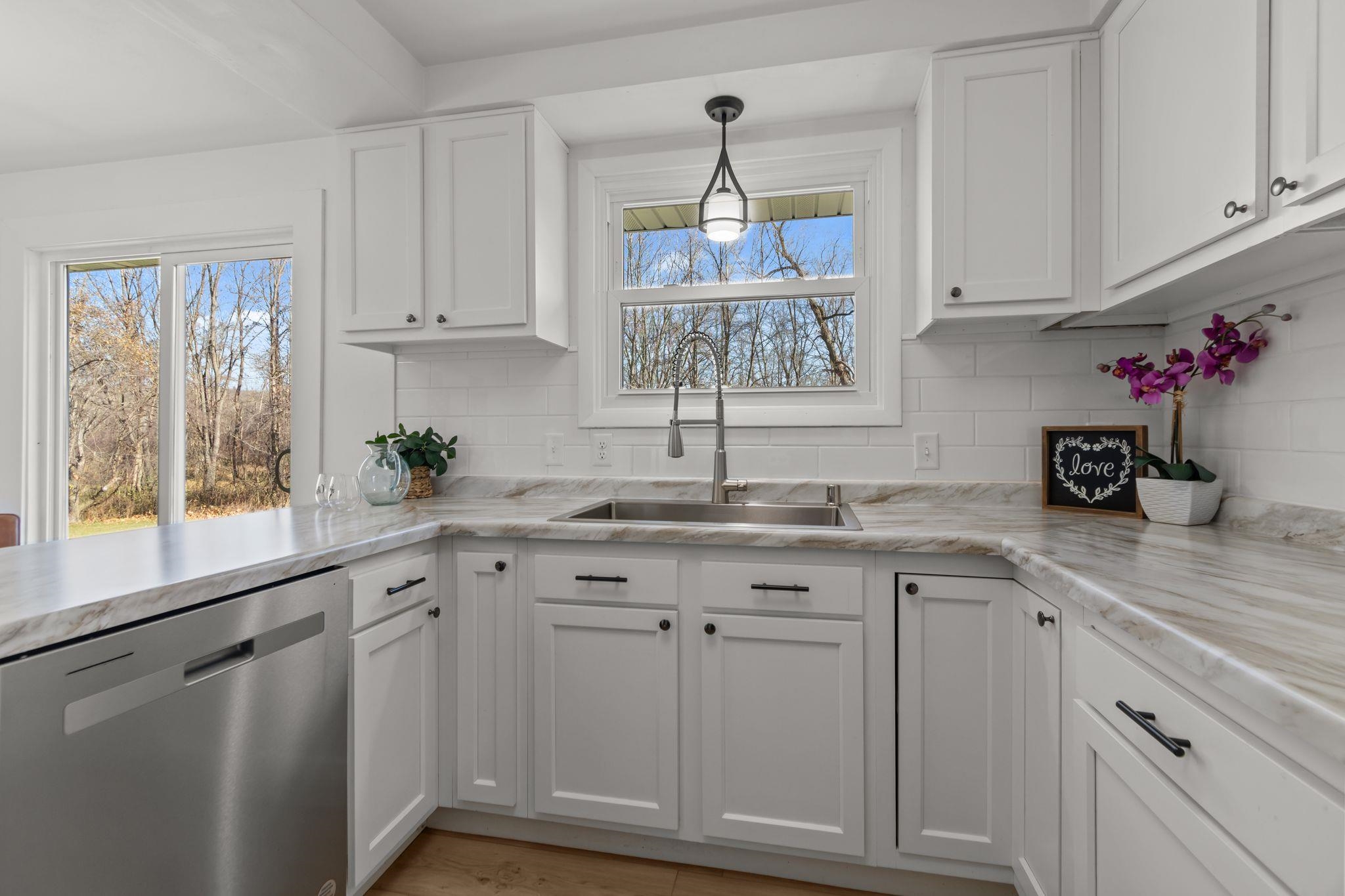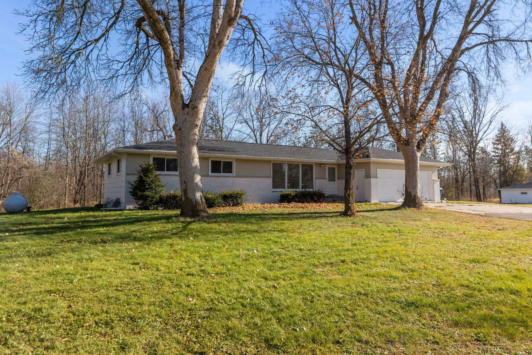 Beautifully remodeled ranch on approx. 2 acres with its own private pond. Updated top to bottom within the last year, this move-in-ready home features all new windows, roof, new kitchen & appliances, and partially finished lower level. Property has 3 bedrooms, 2 full baths, and an attached 2-car garage. Incredible storage with a detached garage approx 39x24 and a 30x24 metal-roofed garage. Parcel to be surveyed to reflect approx. 2 acres at seller’s expense. Portion of land may be in MFL; updated info to come. Entire parce w/40 acres available for $575,000. Do not walk land without permission—active hunters may be present. lower level square foot approximate and buyer to measure for accuracy in LL.