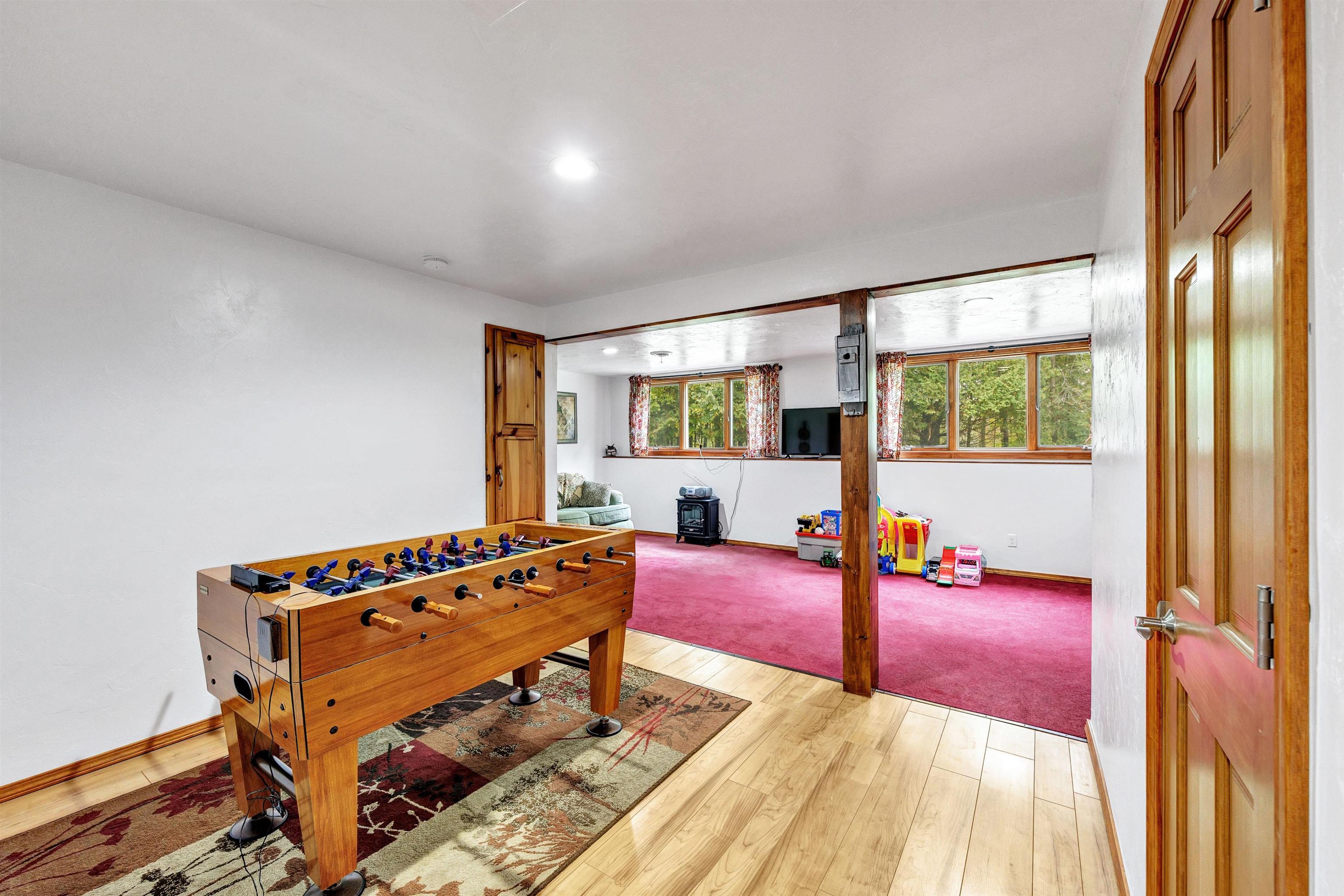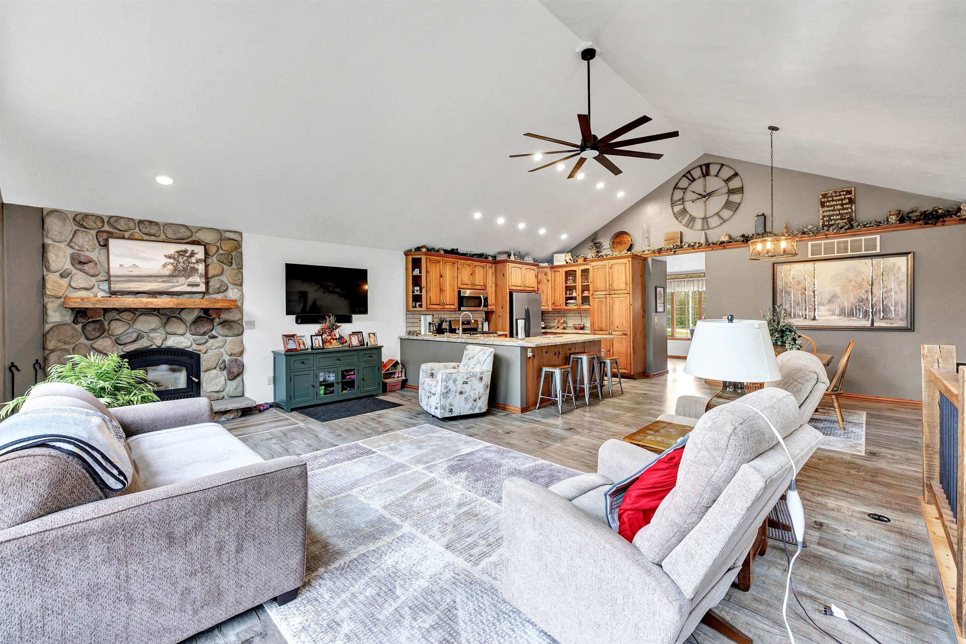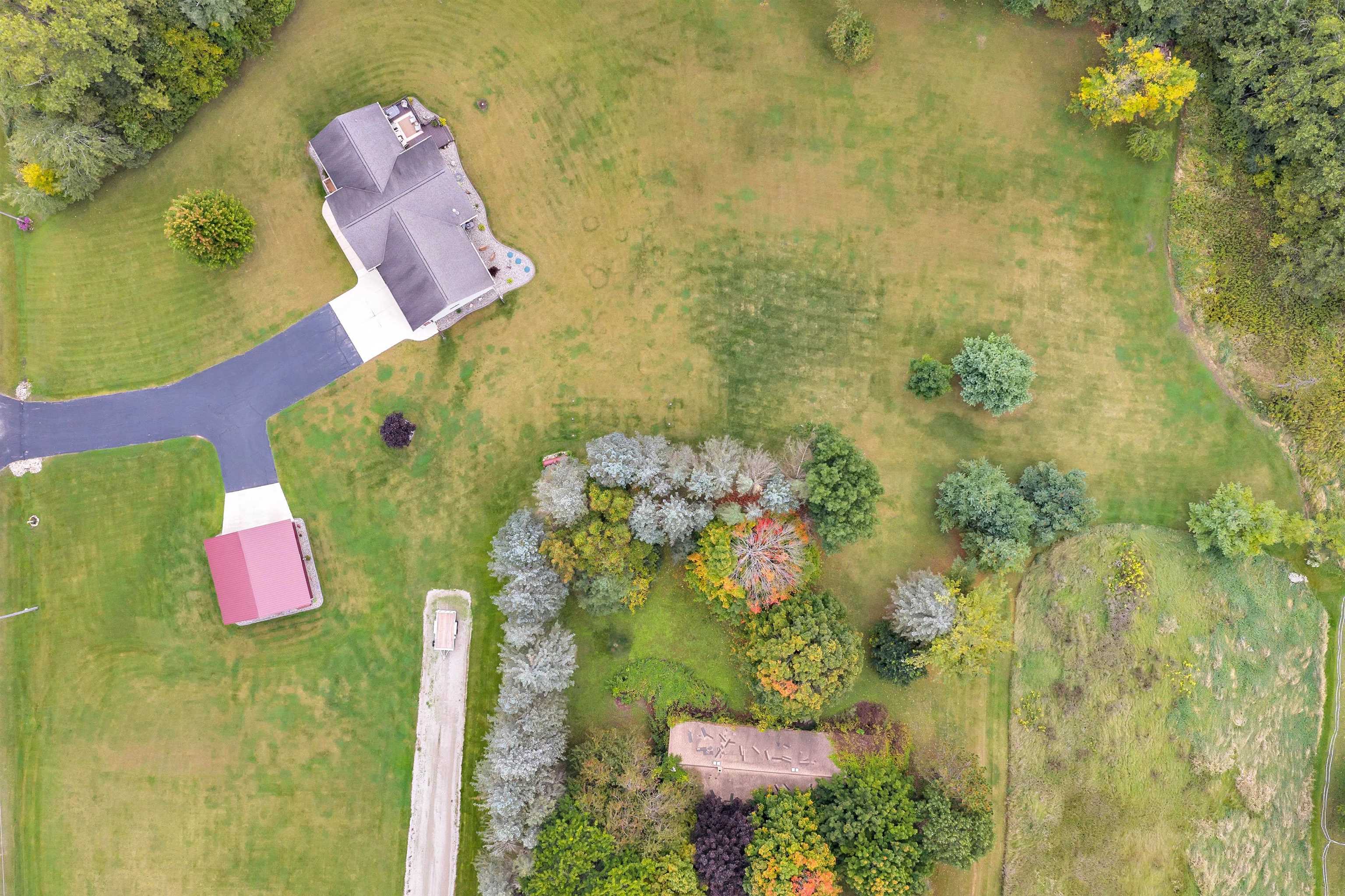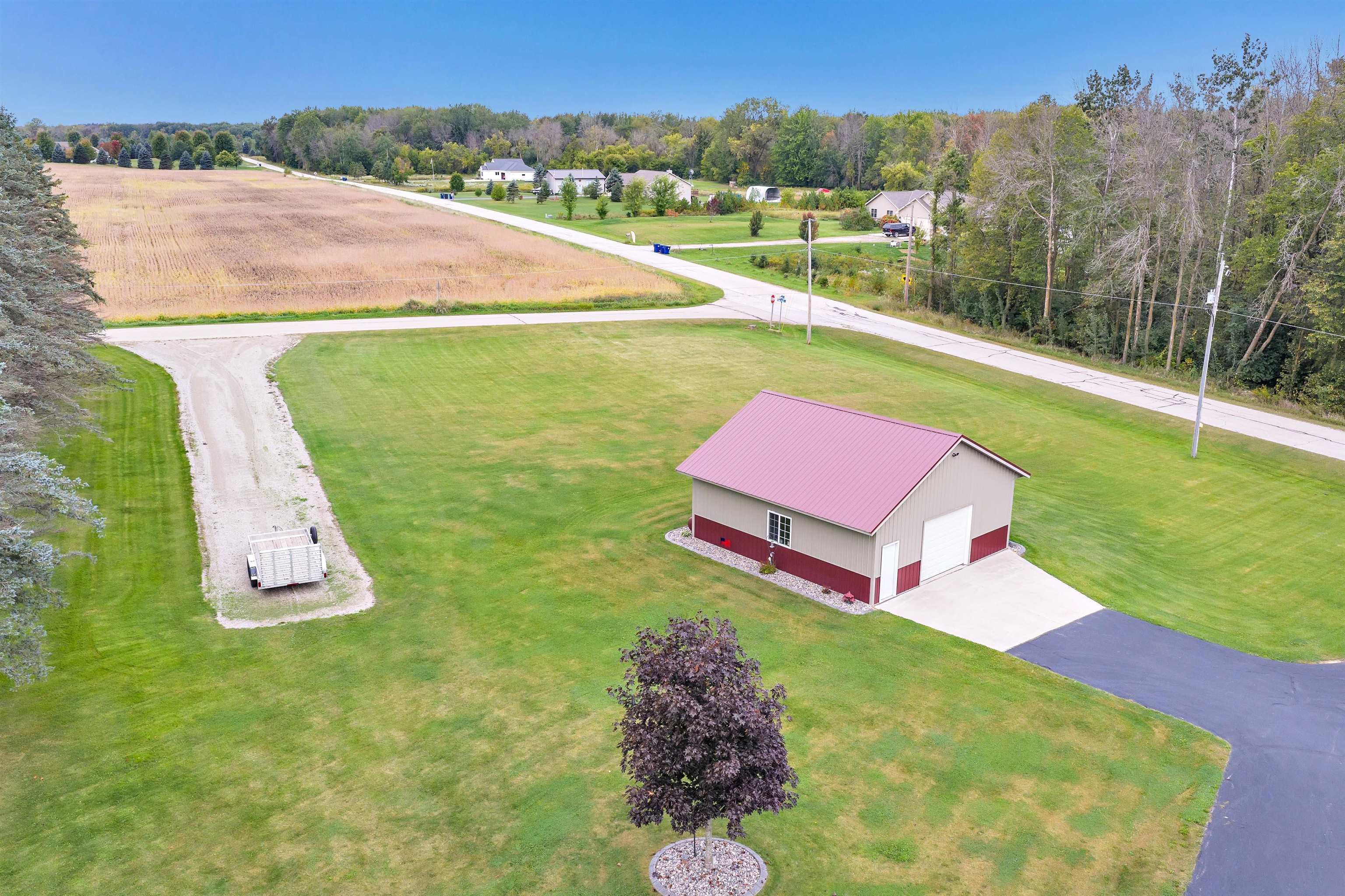 Exceptionally well maintained custom home on beautiful acreage. Property is conveniently located between Appleton, Green Bay, Shawano, and Pulaski. Home features a great open concept floorplan with stunning views of the property throughout. Main floor features a great flex space off the garage, currently being used as an office, 2 bedrooms and 2 full baths. Spacious living, dining, and kitchen area - great for entertaining. Kitchen has gorgeous hickory cabinets. Wood burning fireplace in living room. Lower level rec room features large windows, half bath, and abundant storage. Detached garage ready for your next project! Garage is heated and insulated. Garage has an outlet for welding. Path in woods great for walking! Move-in ready home!