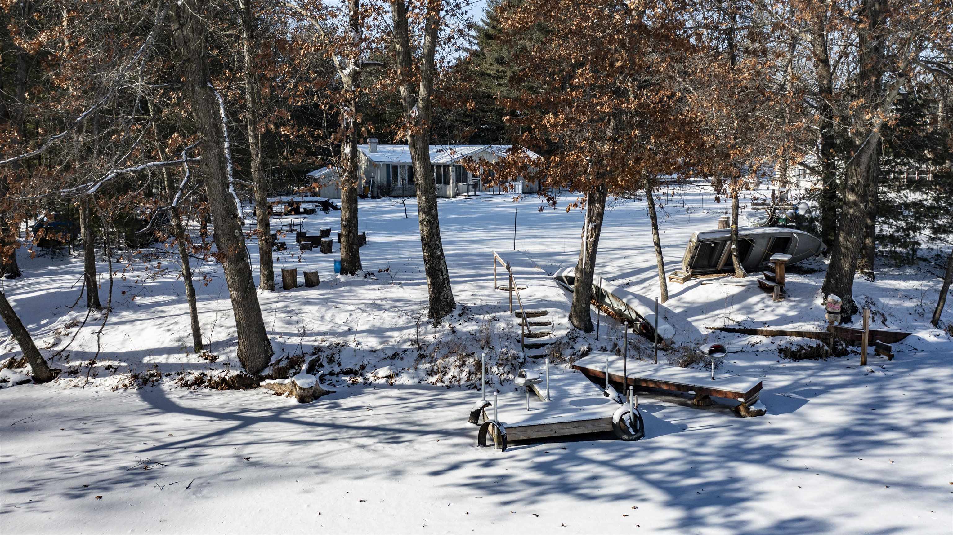 Nestled on over 1 acre, this home on Chalet Lake offers a tranquil setting for a full-time residence or retreat. Cozy up to the wood-burning fireplace or enjoy lake views from the 4-season sunroom. Open-concept kitchen, dining and living area. No-wake lake ideal for kayaking and fishing and is a short drive to the Chain O’ Lakes. Updates include new vinyl flooring with extra flooring for the kitchen, ceramic tile in sunroom, fresh paint throughout, enclosed and insulated porch for added entry and storage, deck addition, fence repairs, tree and stump removal, landscaping with hostas, blueberries and day lilies, fenced garden and kayak rack. Two small fishing boats and a canoe included. Home may be partially furnished or items removed per buyer preference. Property is being sold as is.