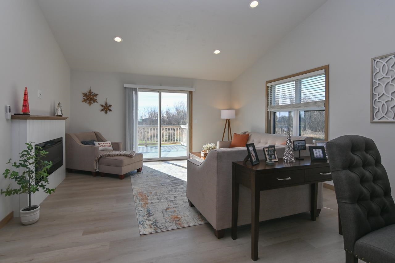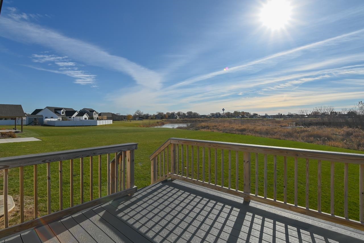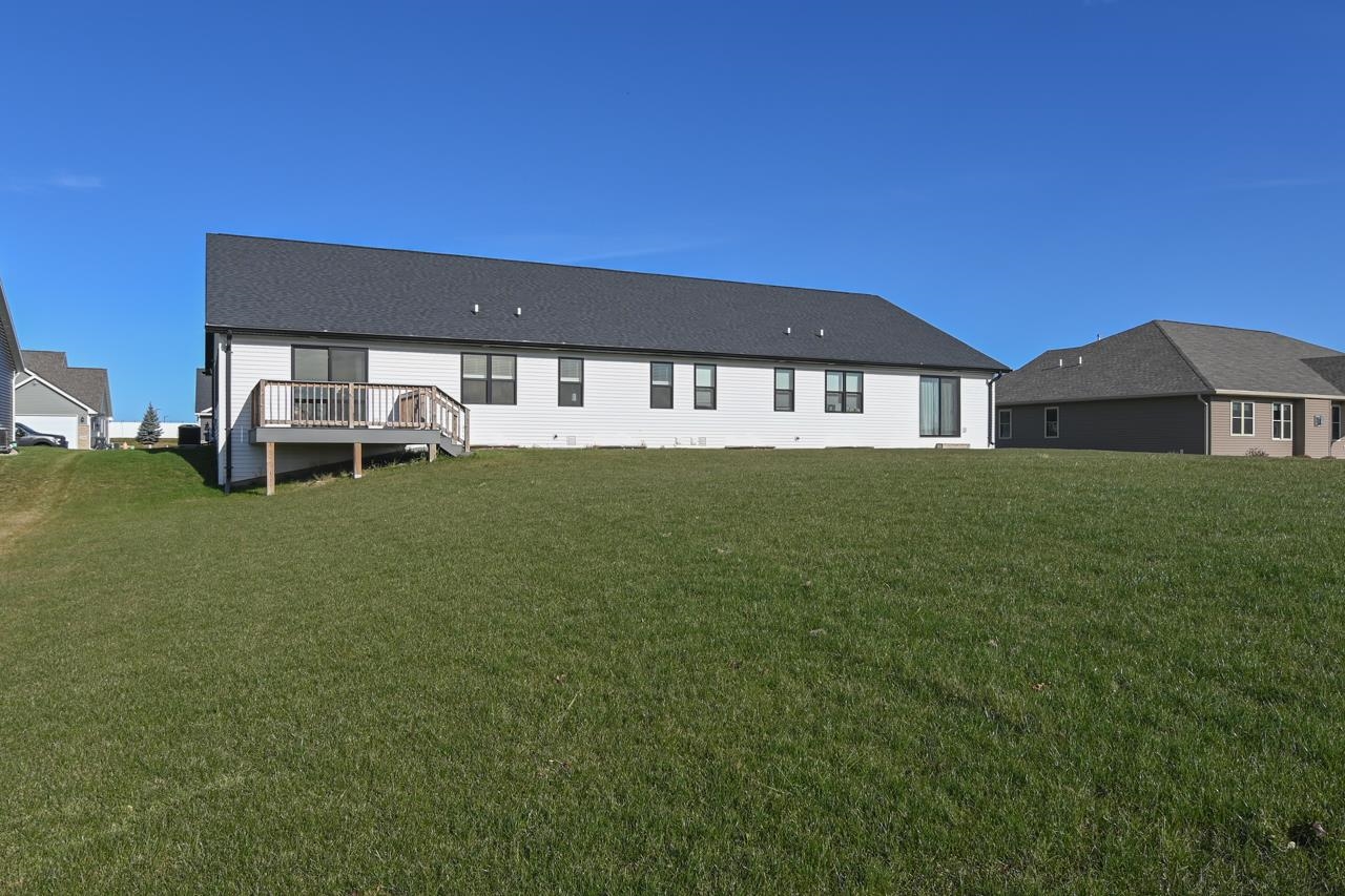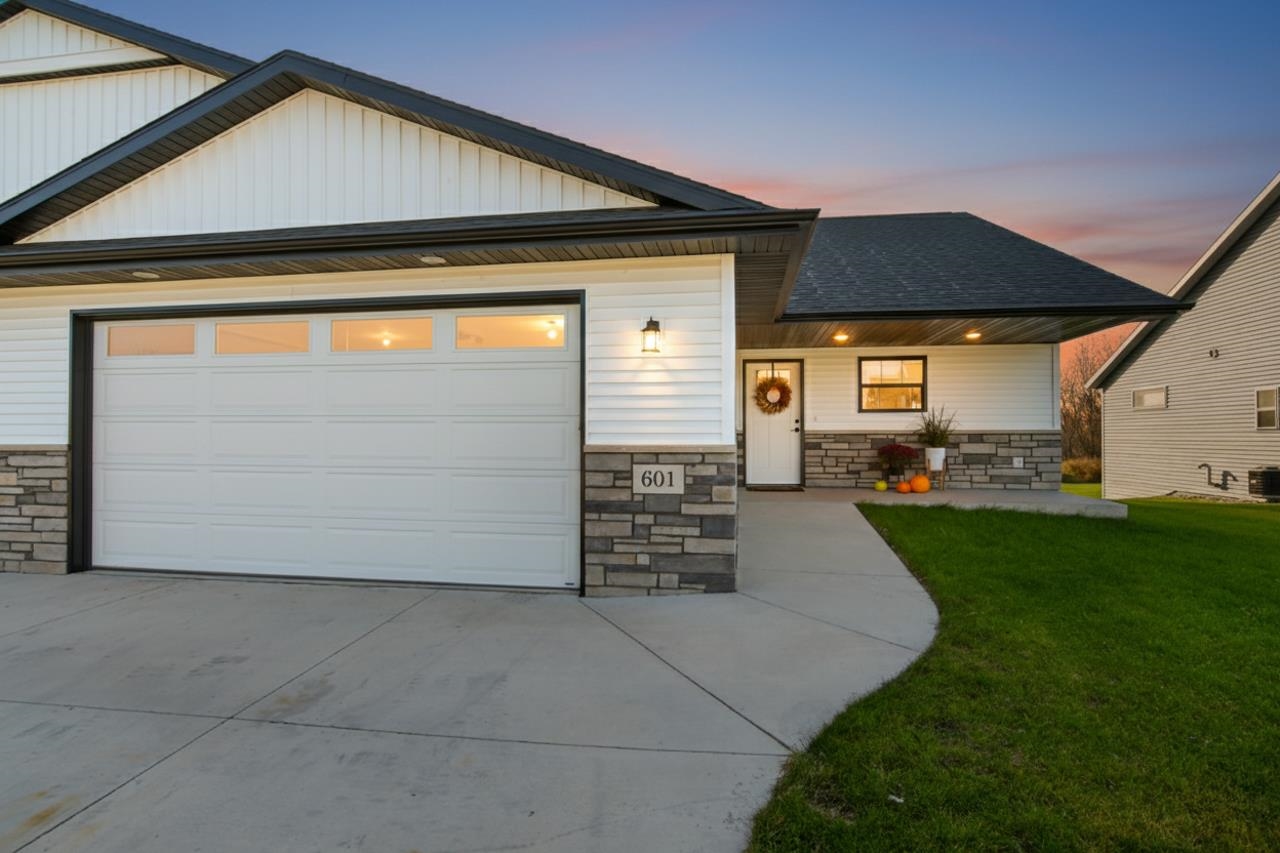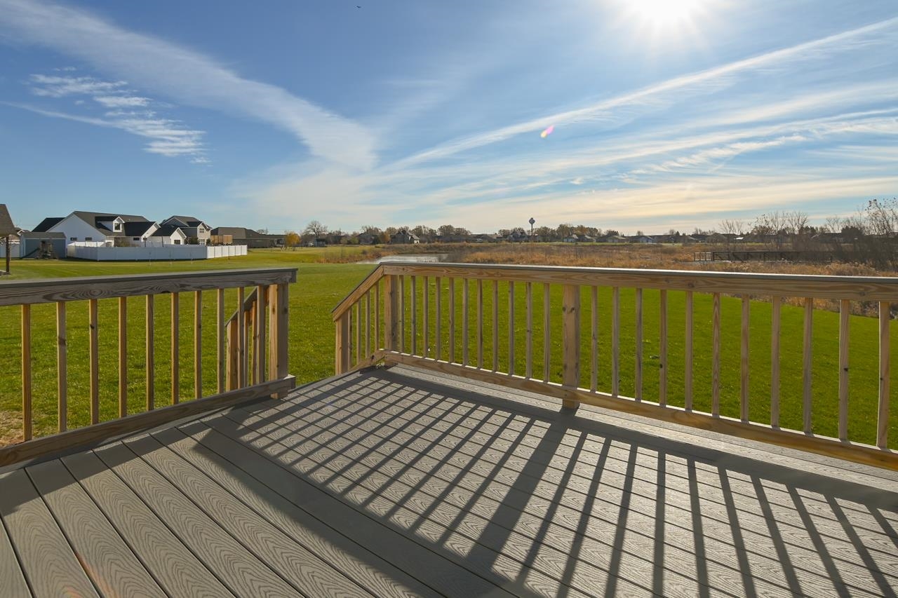Stunning zero entry ranch home w/ zero lot line situated on a generous sized lot, backing up to a pond & walking trails. Open concept layout w/ cathedral ceilings & cozy built-in fireplace. Gourmet kitchen w/center island, granite countertops, walk-in pantry & appliance pkg. Primary bedroom suite w/tray ceiling, WIC & private full bath. Add'l bedroom plus 2nd full bath is down the hall. Drop all area & FF laundry complete main floor. Full LL w/daylight windows make the spacious rec room & 3rd bedroom light, bright & airy. Unfinished area for storage, stubbed for 3rd bath. 2 car attached garage w/ openers. Relax on the deck as you enjoy a little peace & quiet w/ no neighbors behind you. Edge of town location w/ hwy access for easy commute. Schedule your showing today! 48 hr BA requested.