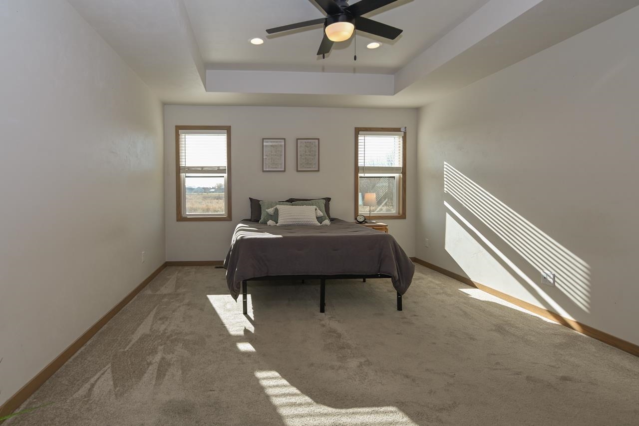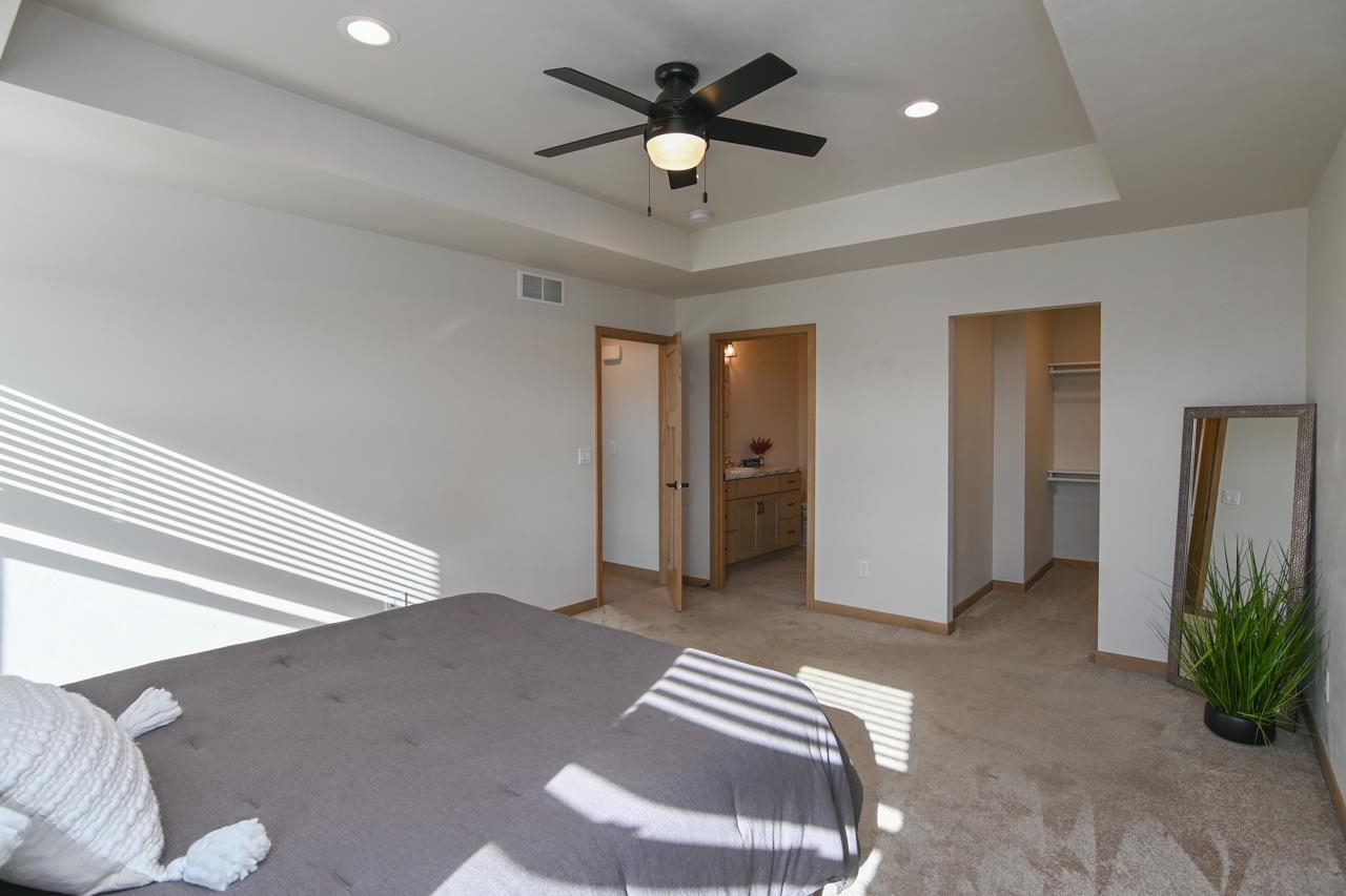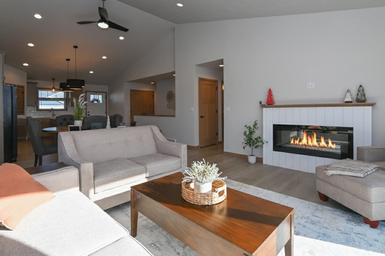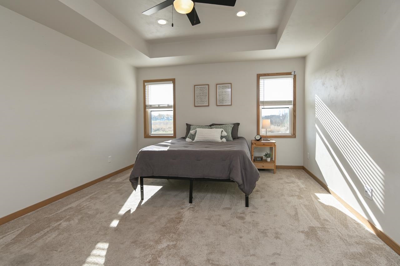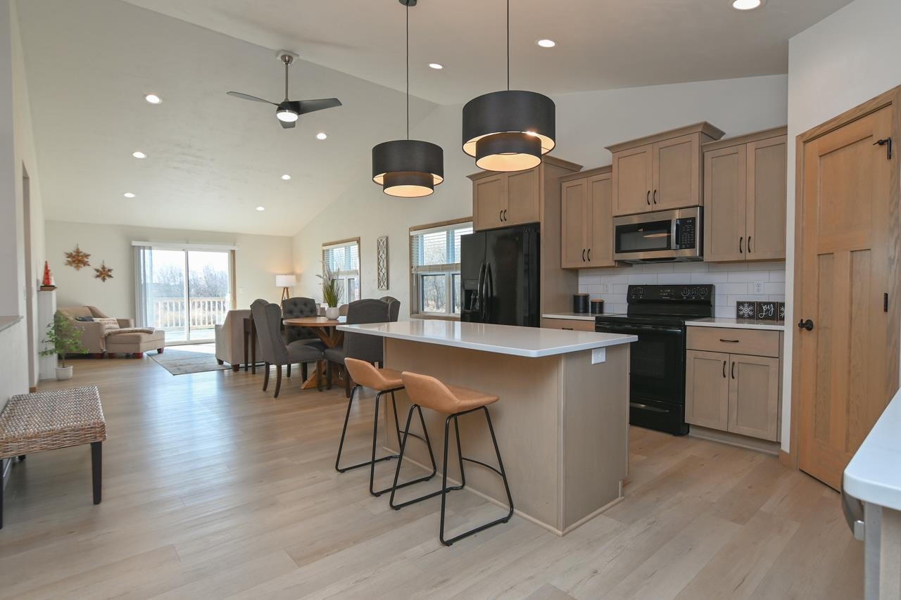 Stunning zero entry ranch home w/ zero lot line situated on a generous sized lot, backing up to a pond & walking trails. Open concept layout w/ cathedral ceilings & cozy built-in fireplace. Gourmet kitchen w/center island, granite countertops, walk-in pantry & appliance pkg. Primary bedroom suite w/tray ceiling, WIC & private full bath. Add'l bedroom plus 2nd full bath is down the hall. Drop all area & FF laundry complete main floor. Full LL w/daylight windows make the spacious rec room & 3rd bedroom light, bright & airy. Unfinished area for storage, stubbed for 3rd bath. 2 car attached garage w/ openers. Relax on the deck as you enjoy a little peace & quiet w/ no neighbors behind you. Edge of town location w/ hwy access for easy commute. Schedule your showing today! 48 hr BA requested.