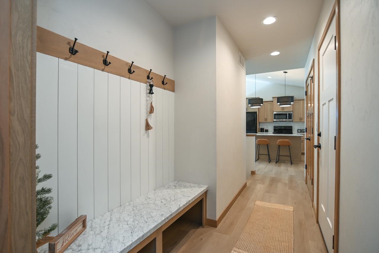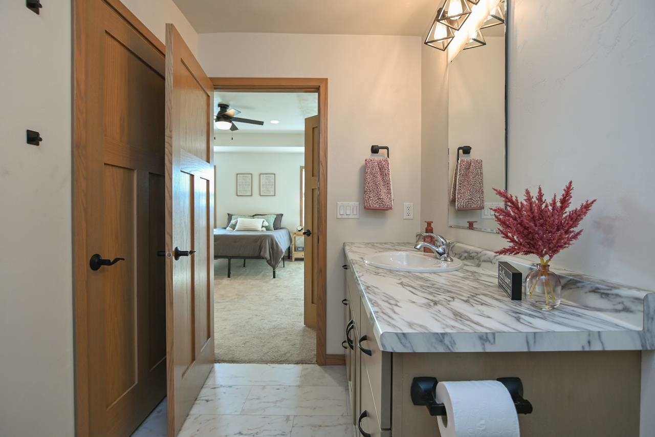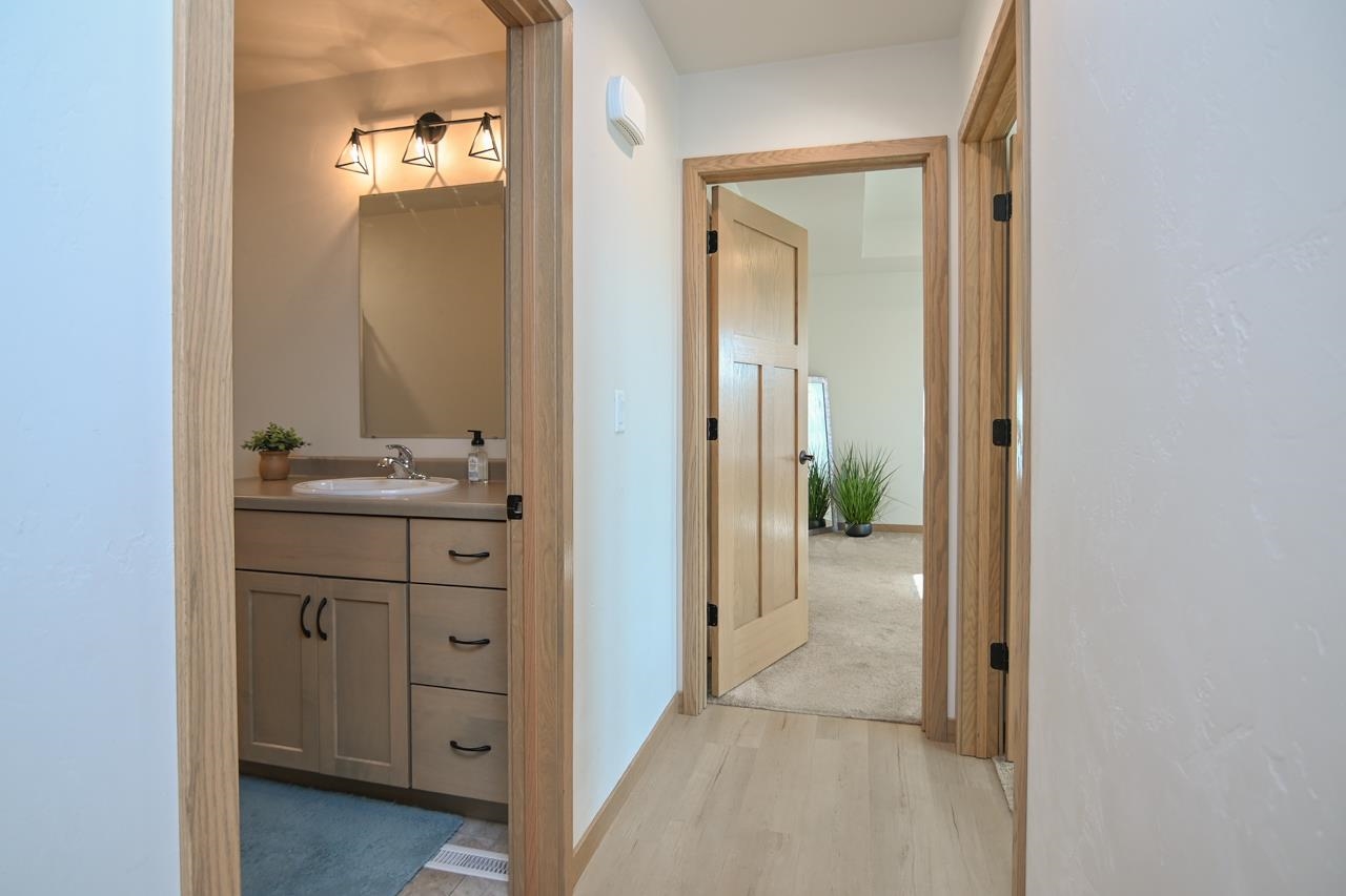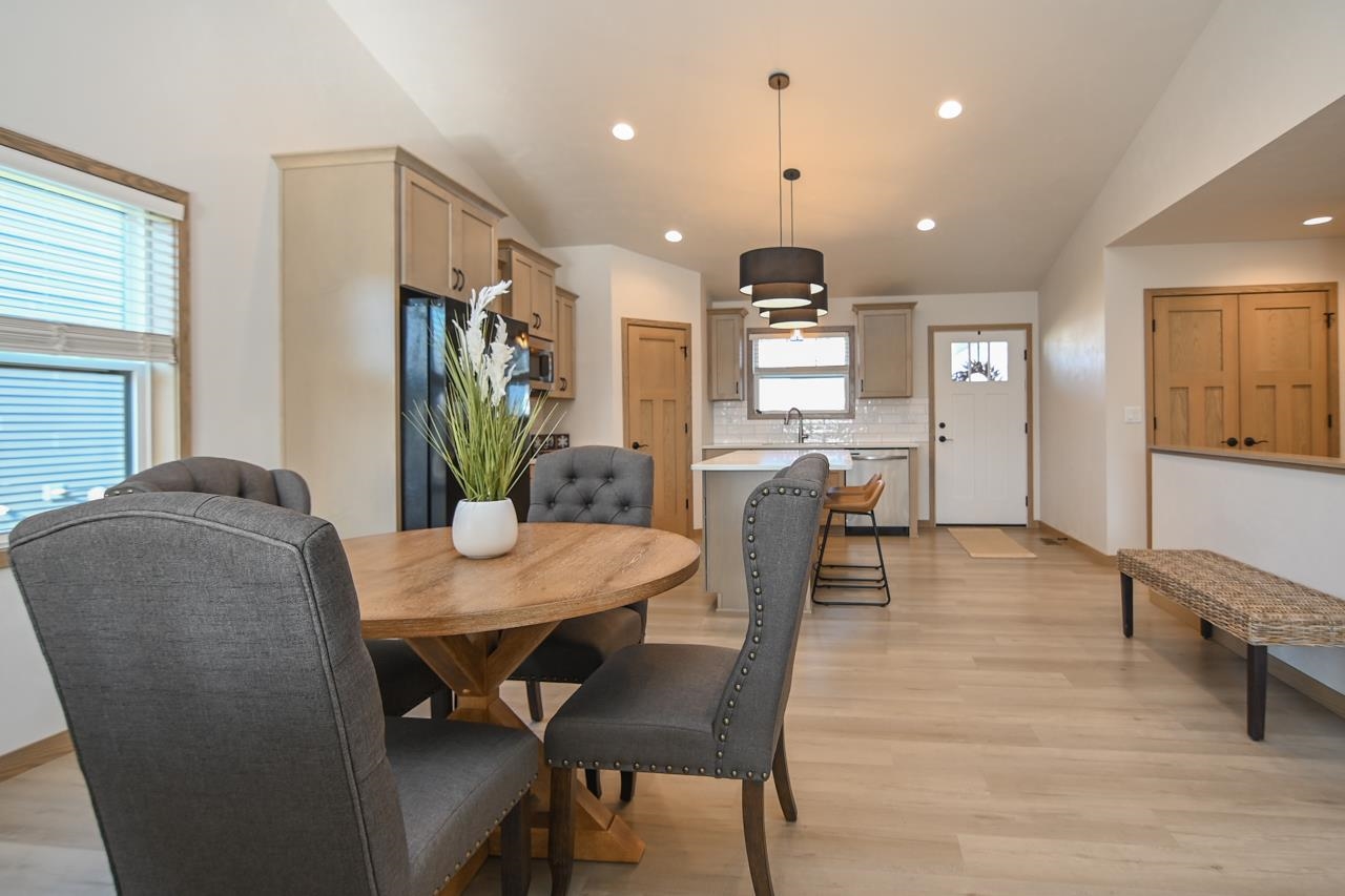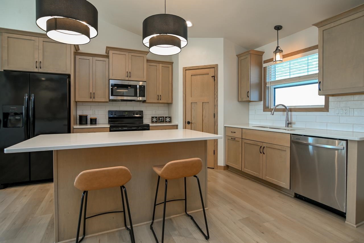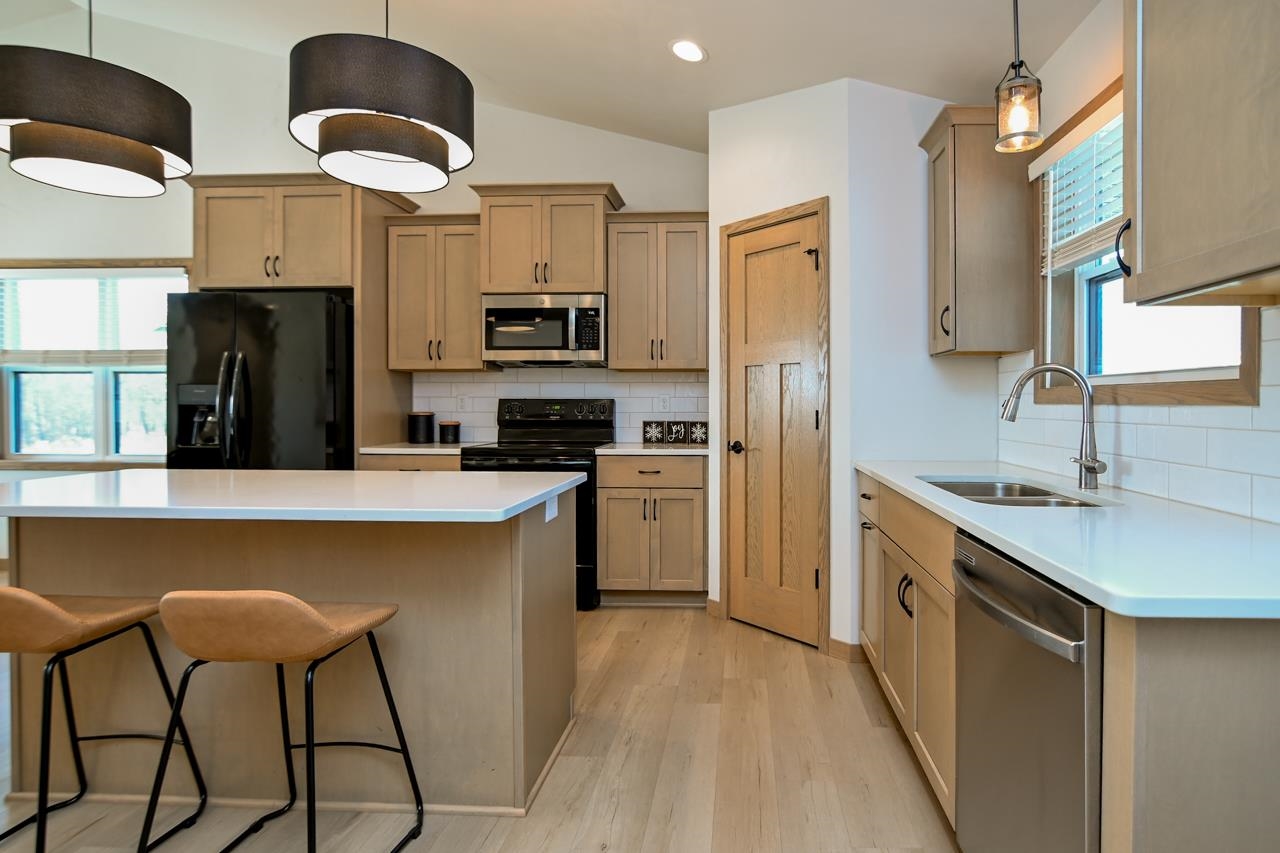 Stunning zero entry ranch home w/ zero lot line situated on a generous sized lot, backing up to a pond & walking trails. Open concept layout w/ cathedral ceilings & cozy built-in fireplace. Gourmet kitchen w/center island, granite countertops, walk-in pantry & appliance pkg. Primary bedroom suite w/tray ceiling, WIC & private full bath. Add'l bedroom plus 2nd full bath is down the hall. Drop all area & FF laundry complete main floor. Full LL w/daylight windows make the spacious rec room & 3rd bedroom light, bright & airy. Unfinished area for storage, stubbed for 3rd bath. 2 car attached garage w/ openers. Relax on the deck as you enjoy a little peace & quiet w/ no neighbors behind you. Edge of town location w/ hwy access for easy commute. Schedule your showing today! 48 hr BA requested.