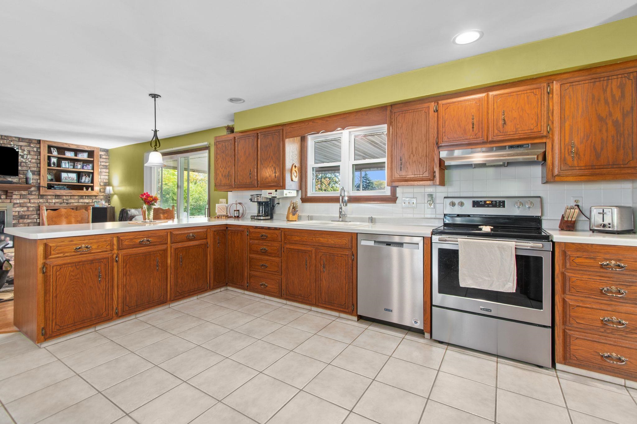 Location! Location! Tucked at the end of a quiet street in a private, serene setting, this sprawling ranch-style home offers comfort, space and charm in equal measure. The heart of the home is a spacious eat-in kitchen and dining area, seamlessly connected to a cozy hearth room featuring a gas fireplace. Patio doors lead to a covered raised deck overlooking the private backyard. The bright and airy great room is filled with natural sunlight, adding to the home’s welcoming atmosphere. The primary suite includes a private bath. Convenient main-floor laundry. The partially finished lower level offers additional living space and walk-out access to a lower patio. Zero-step covered front entry. Oversized 2-car garage. What more could you be looking for? Welcome home!