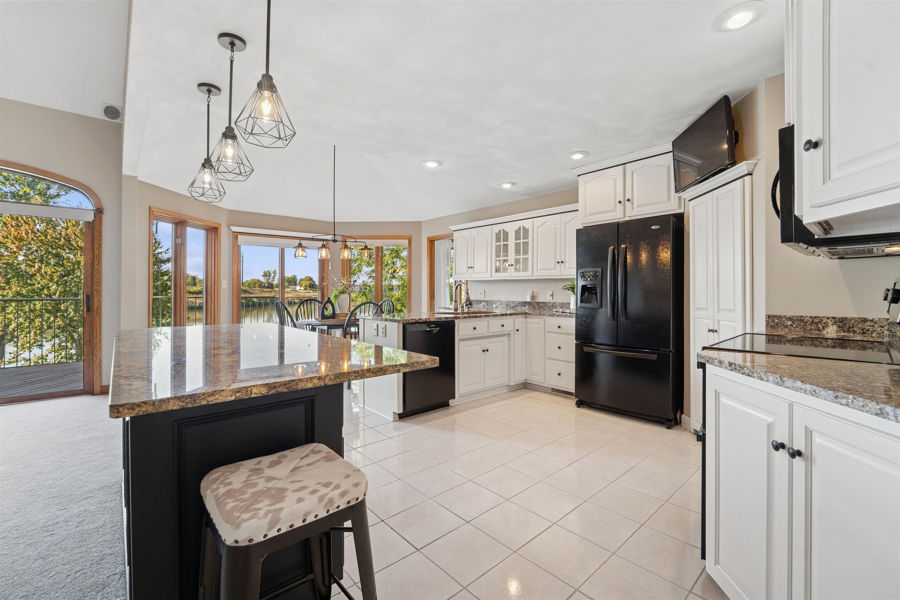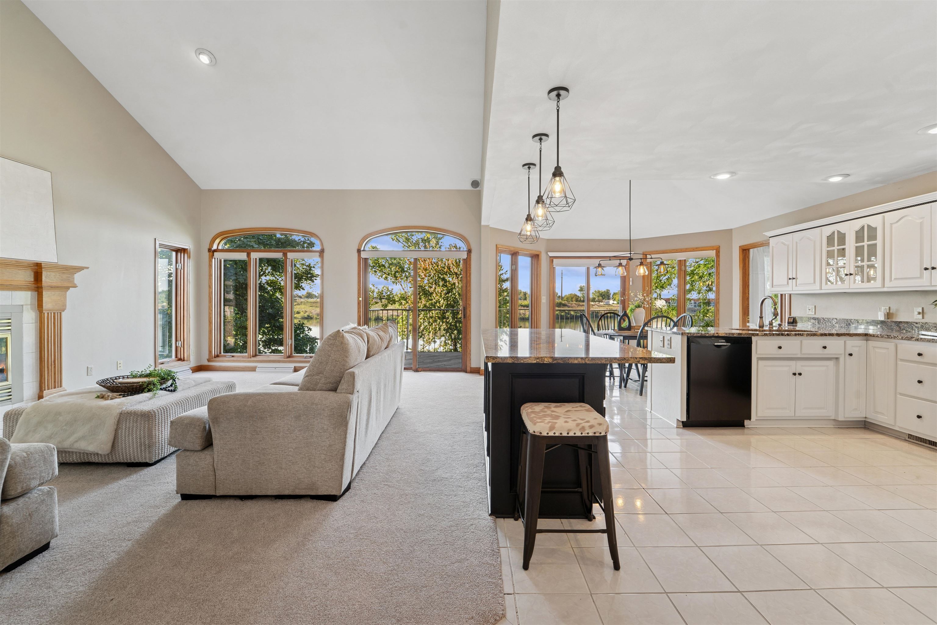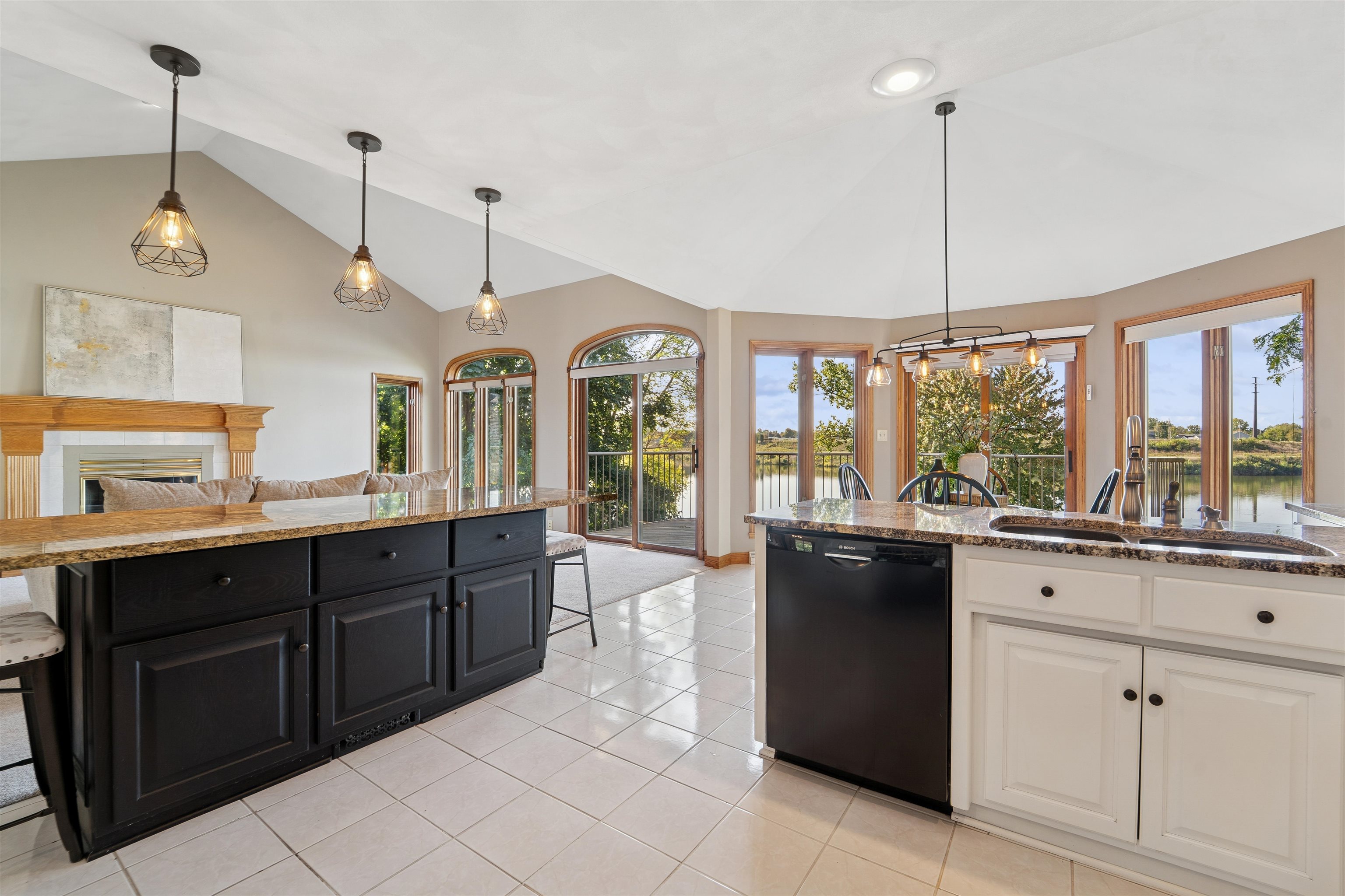 Home offers stunning panoramas from nearly every room, thanks to its design and expansive windows. The main level features an open-concept layout with a spacious living room anchored by a warm gas fireplace, seamlessly connecting to a chef-style kitchen equipped for both everyday living and entertaining. The primary suite offers comfort and ample space. The walk-out lower level adds even more versatility, featuring a generous family room with a second gas fireplace, two additional bedrooms, and a full bathroom—perfect for guests or extended living. Don’t miss the opportunity to make this exceptional riverfront property your own!