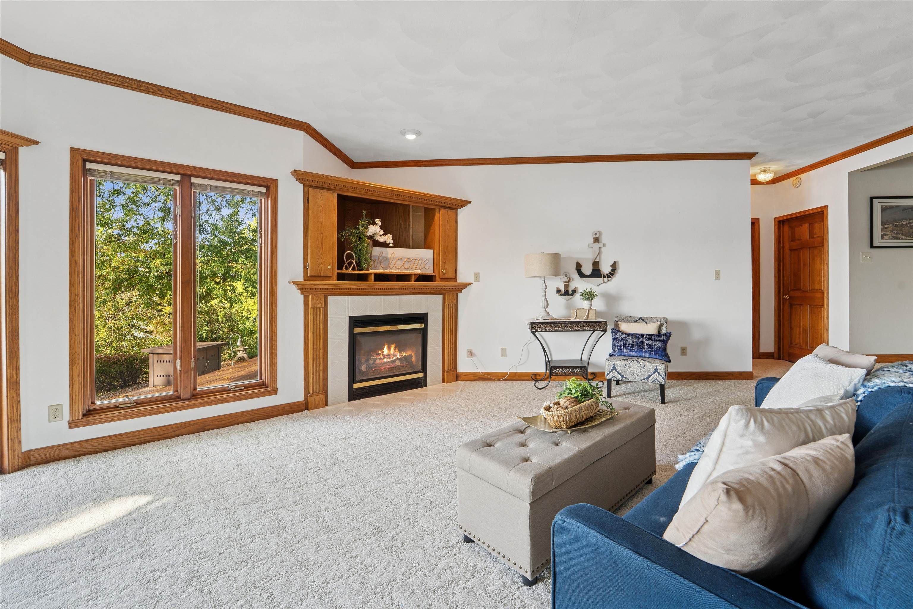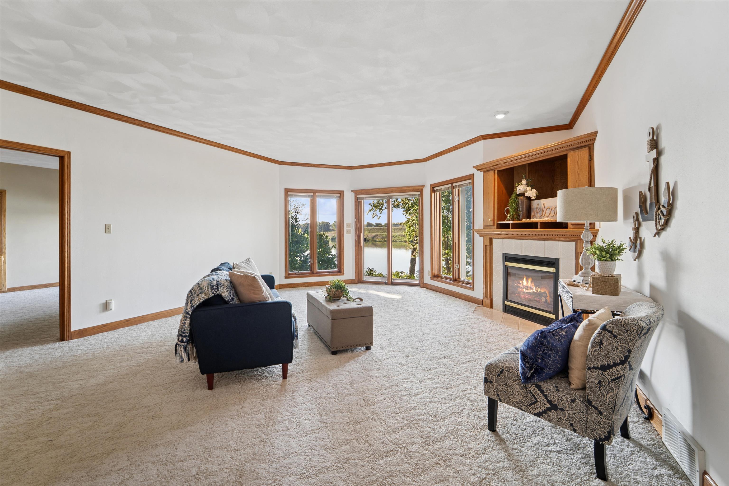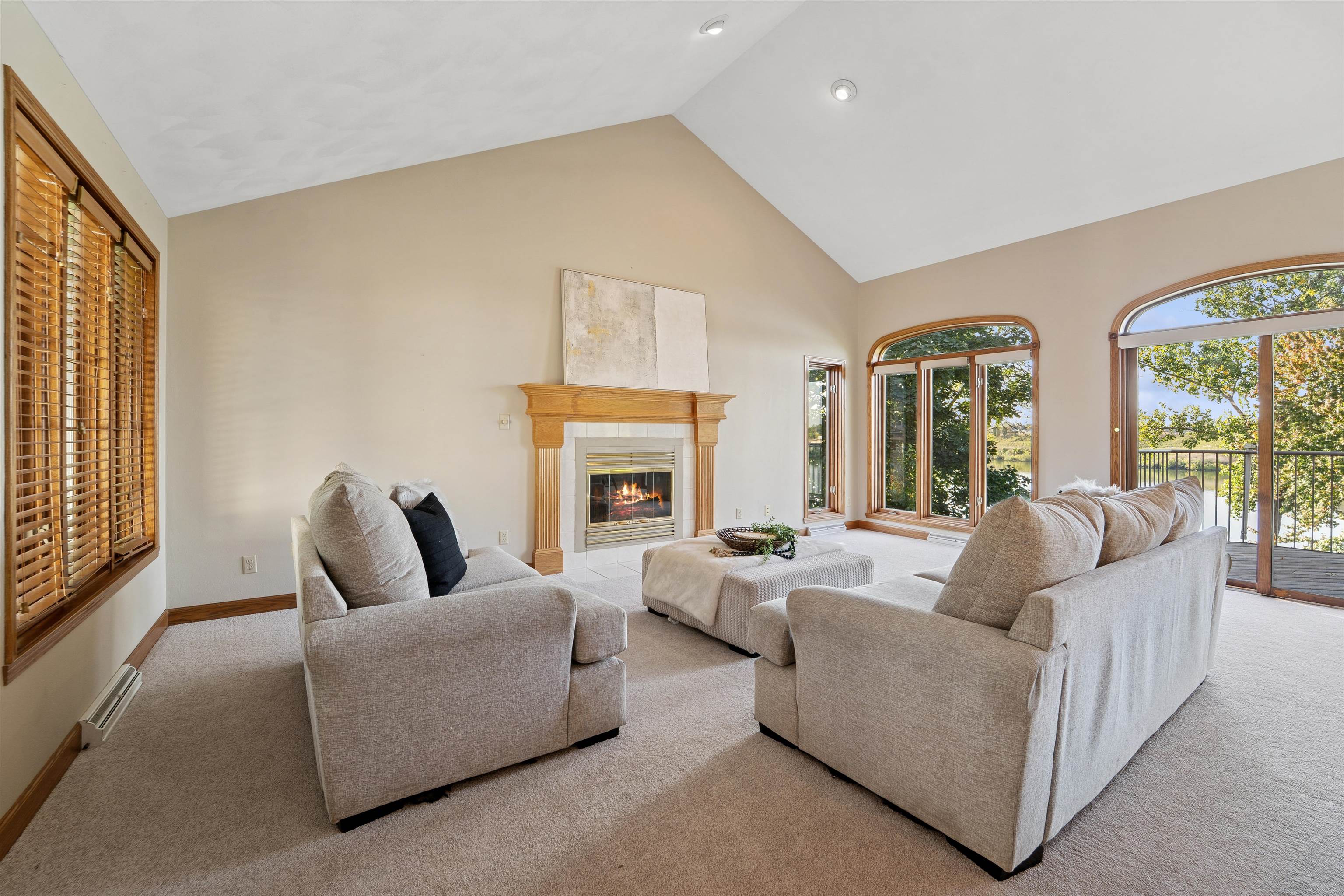 Home offers stunning panoramas from nearly every room, thanks to its design and expansive windows. The main level features an open-concept layout with a spacious living room anchored by a warm gas fireplace, seamlessly connecting to a chef-style kitchen equipped for both everyday living and entertaining. The primary suite offers comfort and ample space. The walk-out lower level adds even more versatility, featuring a generous family room with a second gas fireplace, two additional bedrooms, and a full bathroom—perfect for guests or extended living. Don’t miss the opportunity to make this exceptional riverfront property your own!