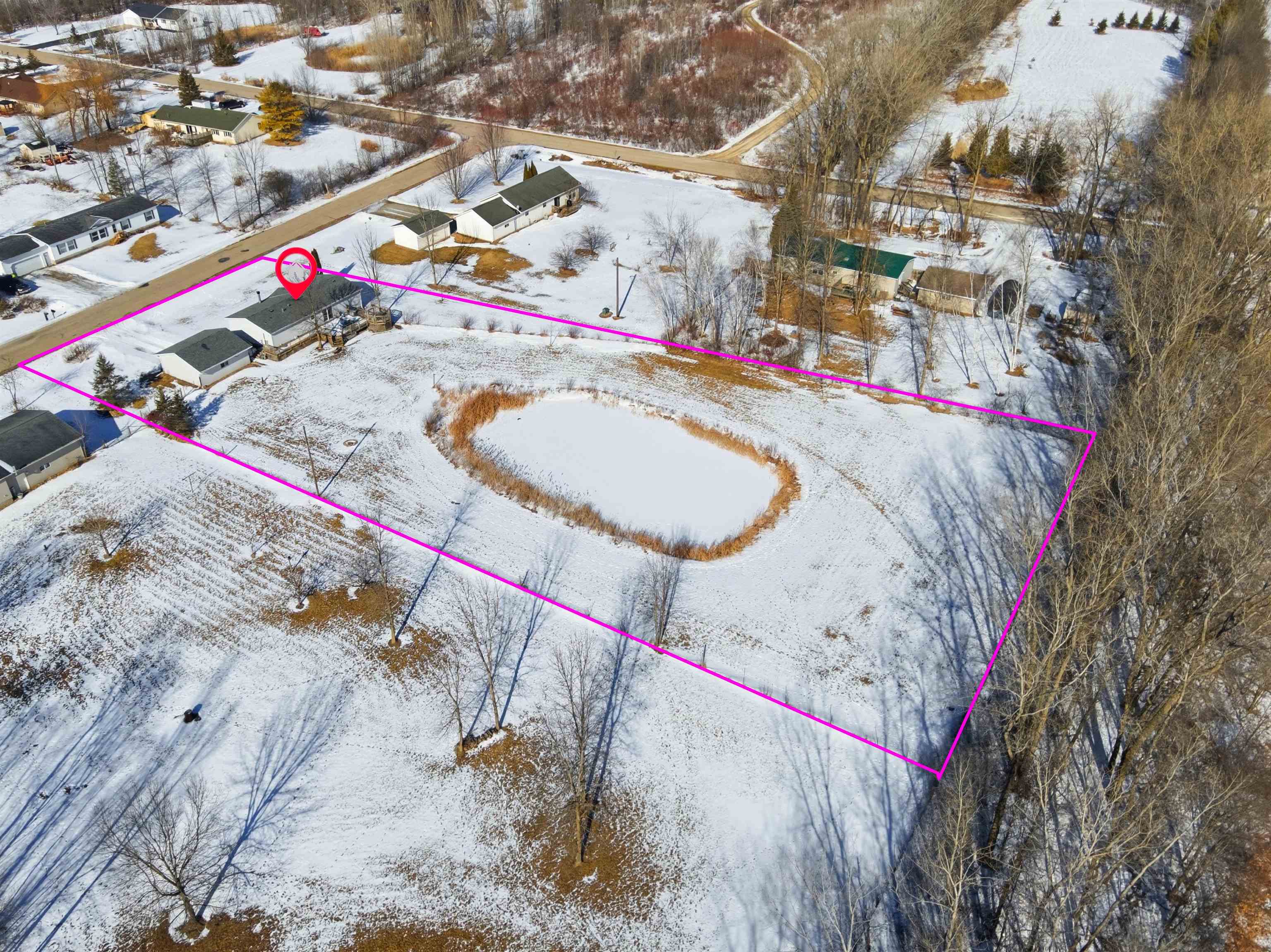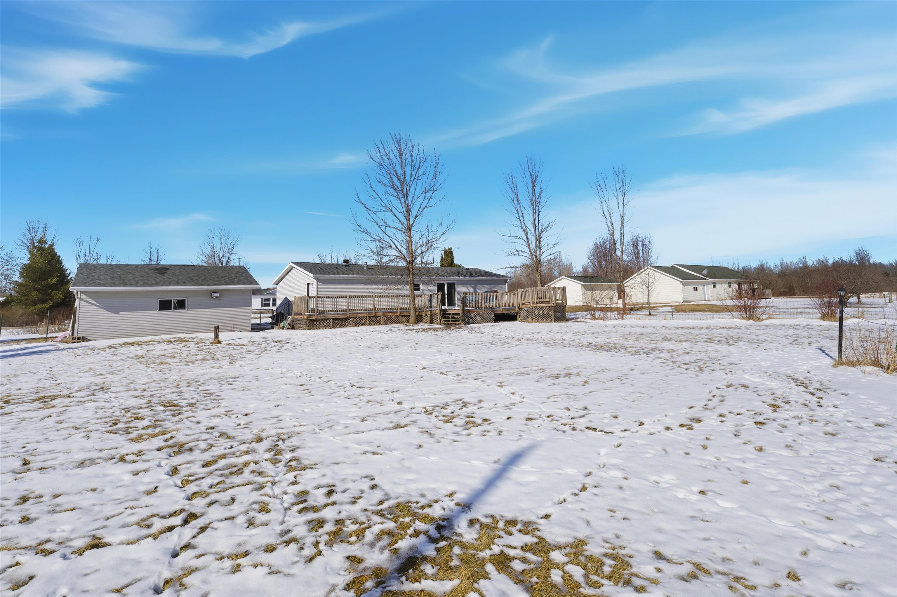 Rare opportunity in Little Suamico! Nestled in the country and surrounded by peaceful woods, this cozy split design 3-bedroom, 2 full bath ranch-style manufactured home sits on 1.5 acres with fence. Enjoy your own private pond complete with aerator, creating a serene setting right in your backyard. Inside, you’ll find comfortable living spaces including LR with vaulted ceiling and wood burning fireplace, primary w/ensuite. Updates per seller include a newer roof, windows, and updated bathroom featuring a walk-in shower. The 2.5-car detached garage provides plenty of room for vehicles, storage, or workshop space. 48 hour binding.
