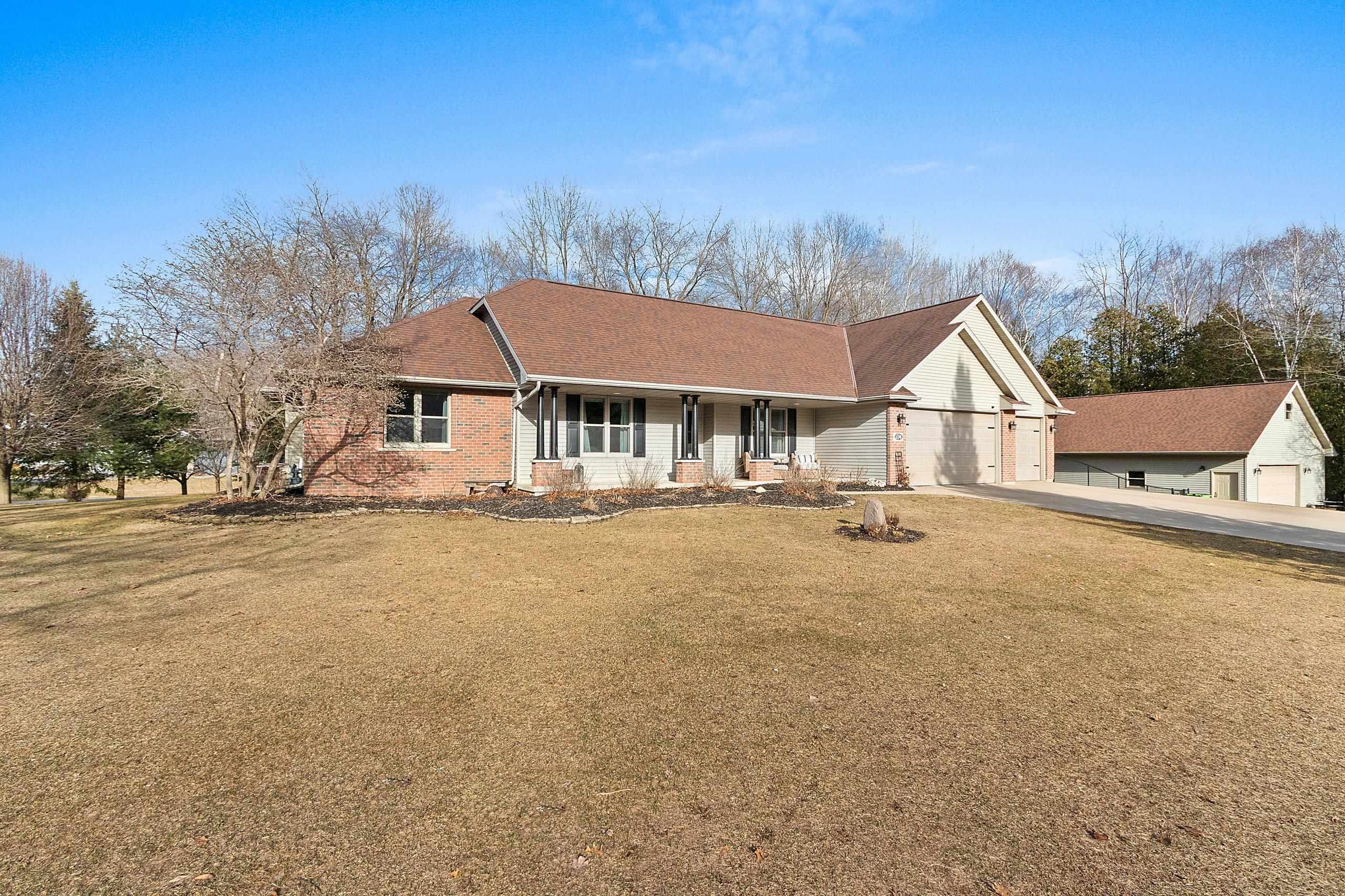 Enjoy country living on the outskirts of Green Bay. Situated on 5.9 acres, this property features mostly wooded land, and a private pond offering peaceful surroundings. The open-concept ranch home includes 4 bedrooms and 3 full bathrooms, with additional finished living space in the lower level. A second insulated and heated garage provides extra storage or workspace and a bonus room upstairs.