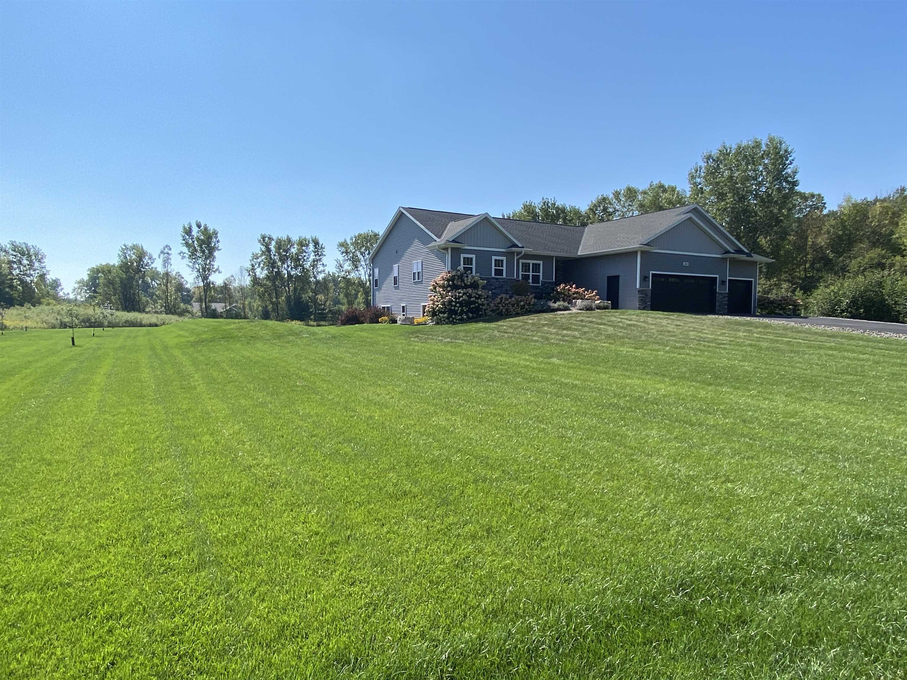 Enjoy the perfect blend of peaceful country living and city convenience in this beautifully crafted custom ranch-style home, set on 4 scenic acres just minutes from Green Bay. Built in 2018, this home combines modern finishes with thoughtful design and future expansion potential. Property highlights: 2 spacious bedrooms and 2 full bathrooms on the main level, plumbing and framing in place for a 3rd bathroom and bedroom on the lower level, open concept layout with modern finishes throughout, convenient dog wash station in garage, partially finished basement offers opportunity to easily expand living space, custom built in 2018, move in ready, quick access to major highways for an easy commute while enjoying the tranquility of a country setting. This home offers the best of both worlds.