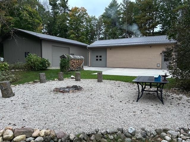 CAMP HILLTOP AWAITS! ALMOST 9 acres of wooded wonderfulness is here to enjoy with trails to walk or 4 wheel or snowmobile on! You have plenty of storage for all your "toys" as well as this home has a 18x40 "lodge" for storage or indoor games (or a place to hang out at) PLUS a 30x40 Pole Building ideal for your 4 wheelers, boats, campers etc... Did I mention the RV Shelter? The home has been updated with new hw floors, updated kitchen cabinets, 2 updated bths with walk in showers, large living room w/wood frplc, 3 bdrms with 2 of them having full length closets/built in drawers, a 3 season room w/hot tub, a semi finished rec room with bar & full bath with block walls, & an attached 2 car heated garage! Privacy awaits! Interior pictures coming 10/14.