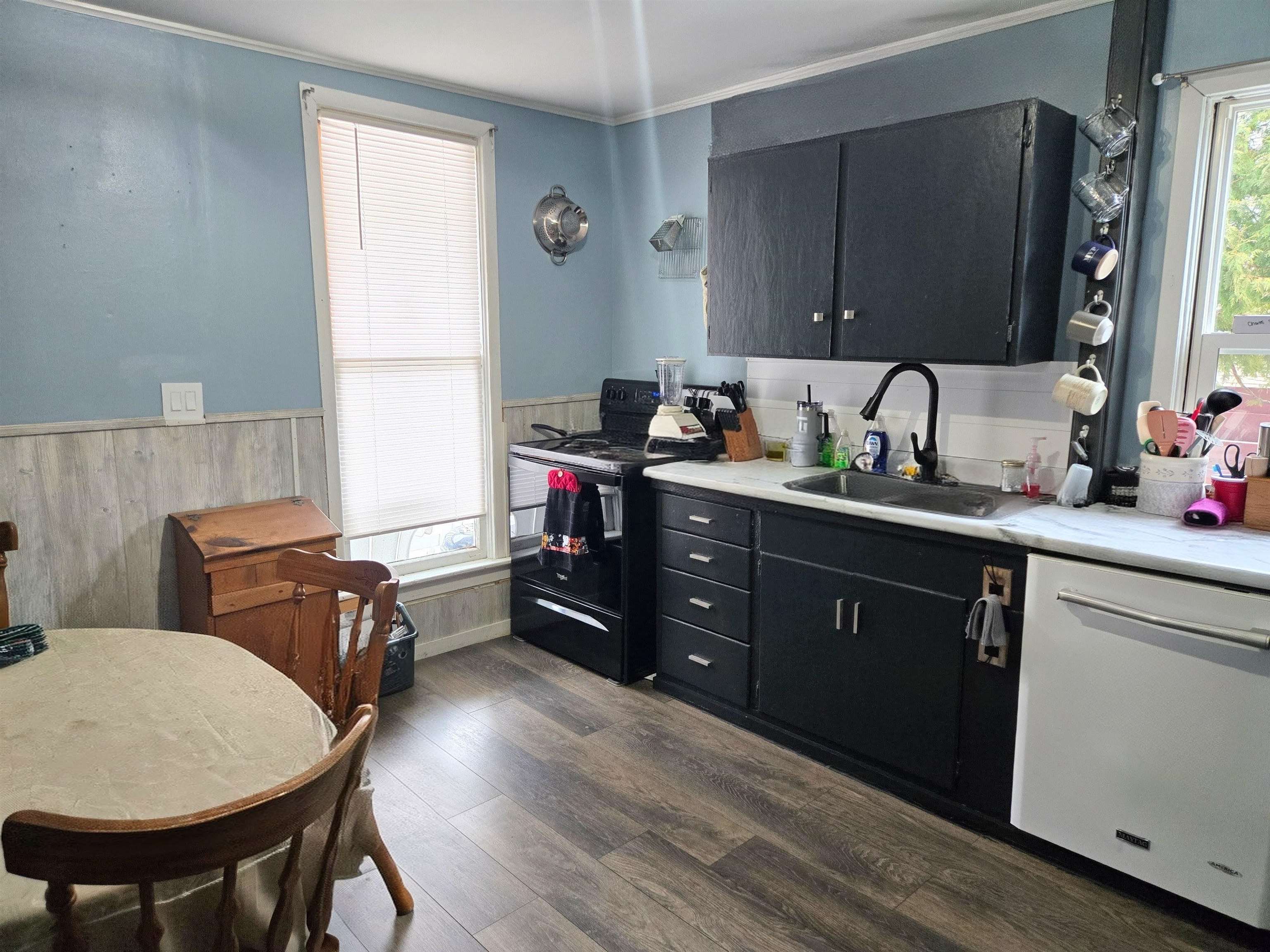 2 bedroom charmer with a bonus room upstairs that could be used for a den, playroom, office. Many recent updates including all new flooring, central air, new windows, lighting, kitchen counters, sink, bathroom, new water lines, driveway. Big living room and kitchen. All appliances included. Fenced in and very private yard. Very nice and inviting front porch. This home has the big items done----just pack your bags and move right in!