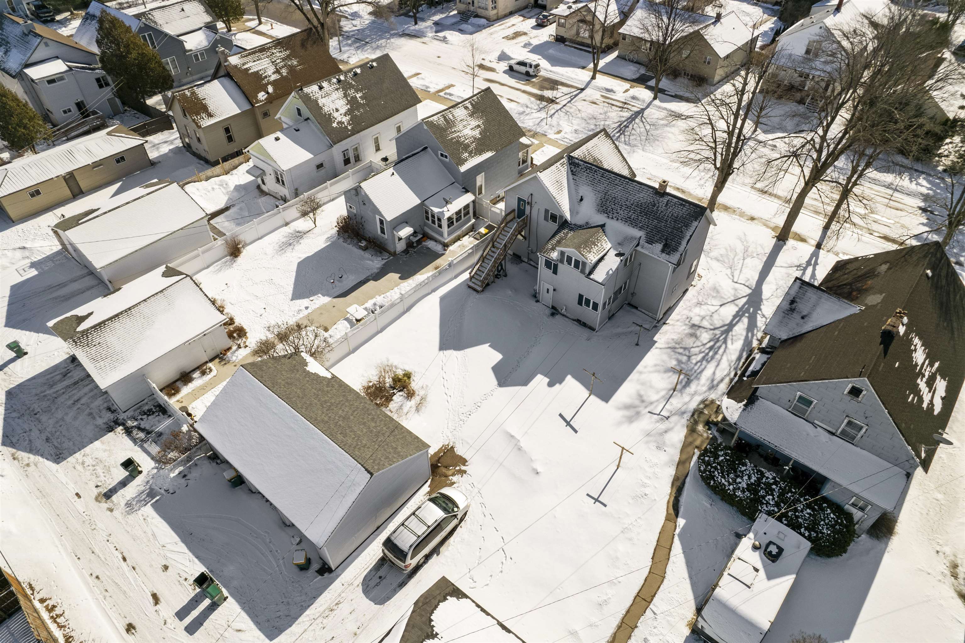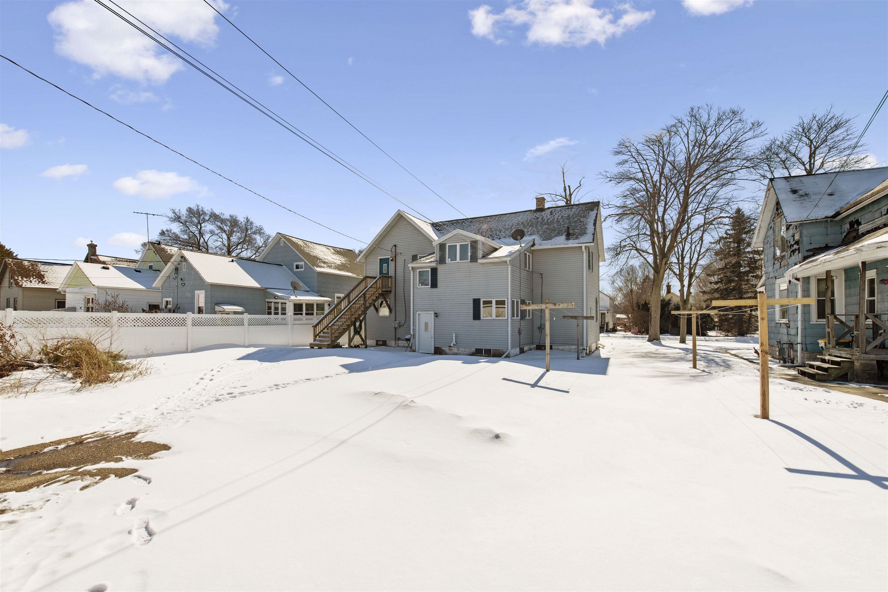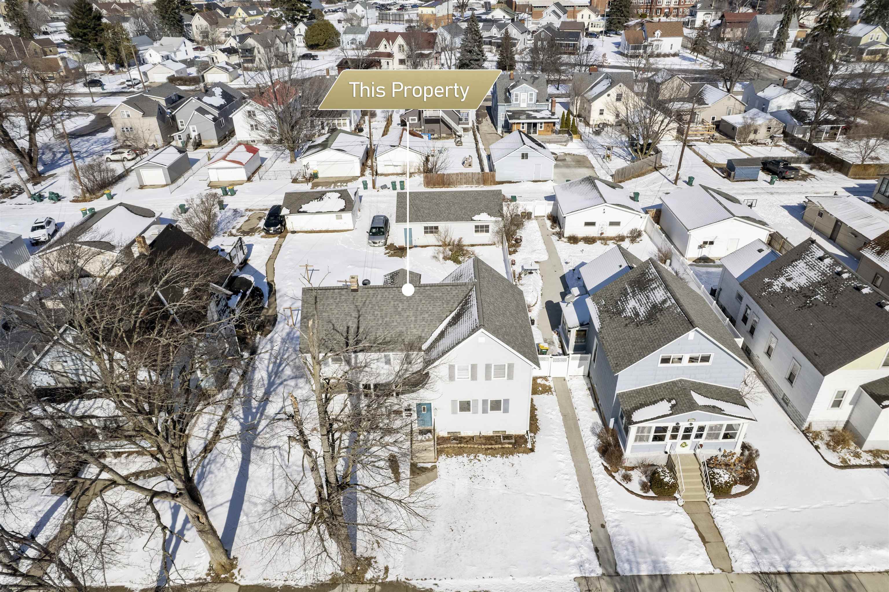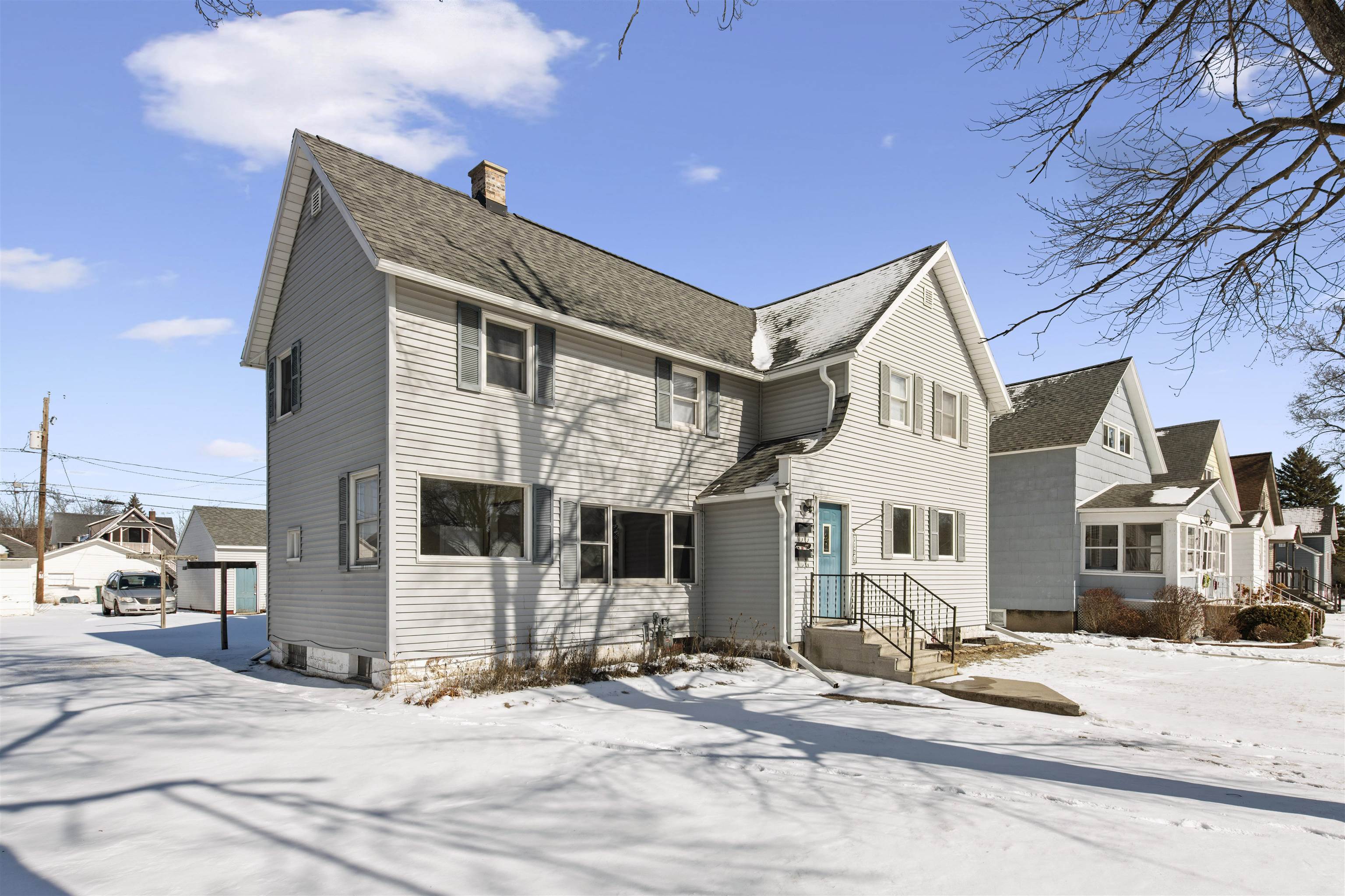 Great owner-occupied or investment opportunity! This well-maintained duplex features a spacious 3-bedroom, 1-bath lower unit and a comfortable 2-bedroom, 1-bath upper unit. A shared bonus room and an unfurnished basement area with an additional half bath provide extra flexibility and storage. The property includes a 3-car detached garage with brand-new overhead doors, a cement parking pad for additional off-street parking, coin-operated laundry in the basement, a newer roof (2021) and water heater (2025). Heat and water are currently landlord-paid due to no separate meters. Lower unit offers room for some TLC, making this a great opportunity to build equity while living in one unit and using rental income from the other to help offset your mortgage.