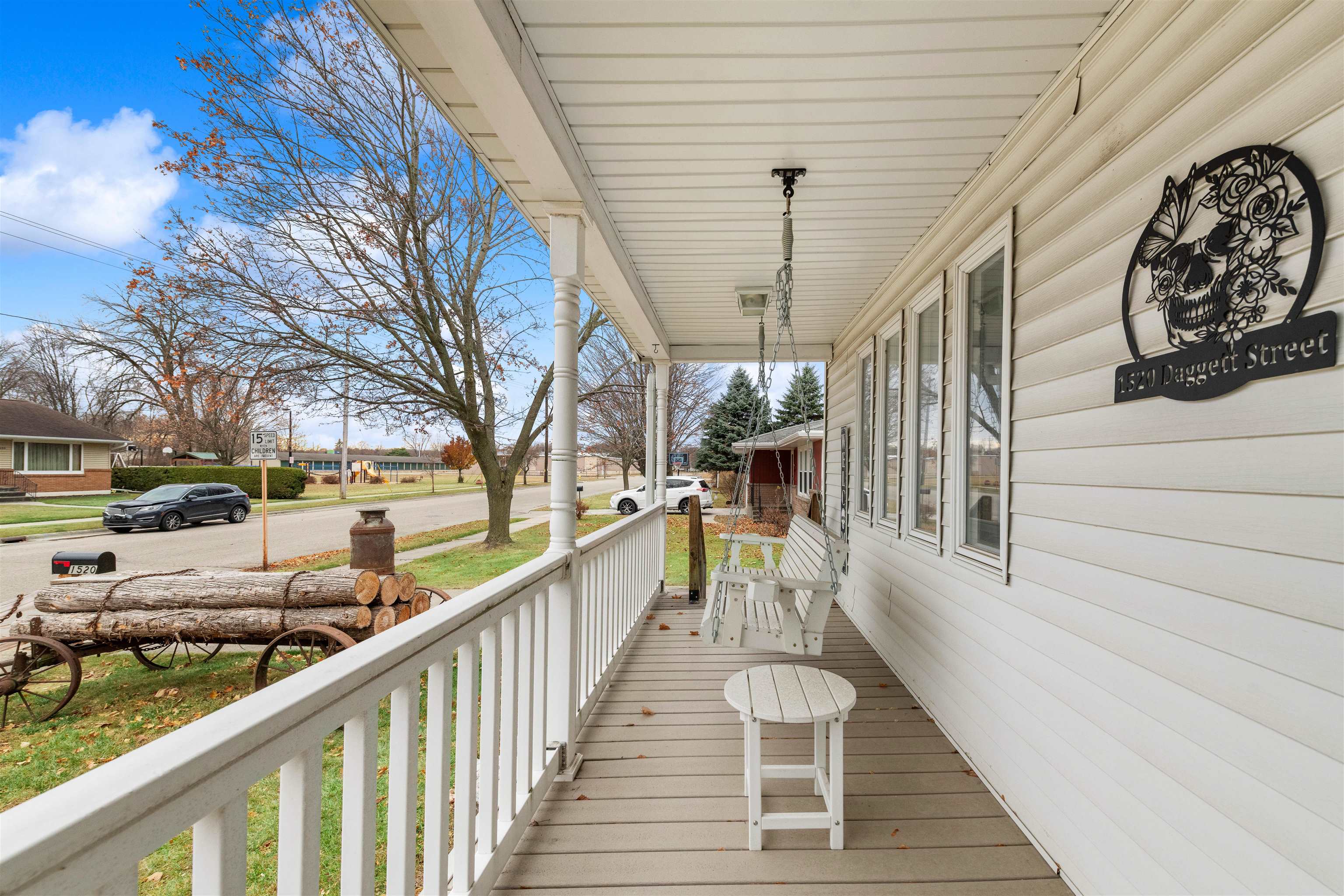 Take Pierce Ave to Daggett St. Left, to address and yard sign.