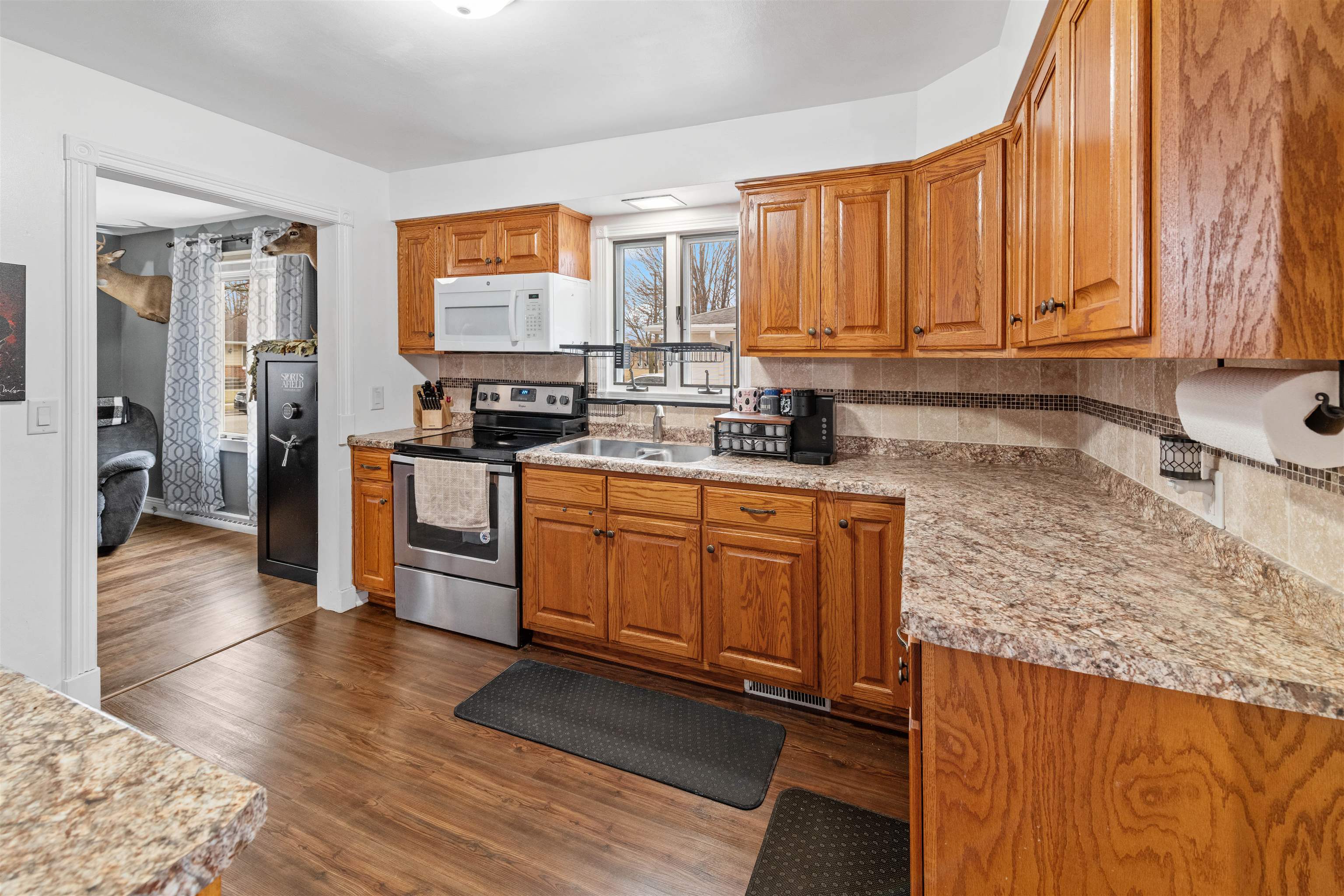 Impeccably maintained ranch-style home featuring 2 bedrooms and 1 bathroom, ideally situated in a prime location. Inside, the home is move-in ready, all the work has been done for you, just bring your belongings and make it your own! Spacious bedrooms, updates throughout, suredry system in basement and so much more. The garage is a dream come true—fully finished, insulated, and heated. Enjoy the privacy of walking out of your patio door to a fully fenced backyard and an extra concrete parking pad behind the garage.