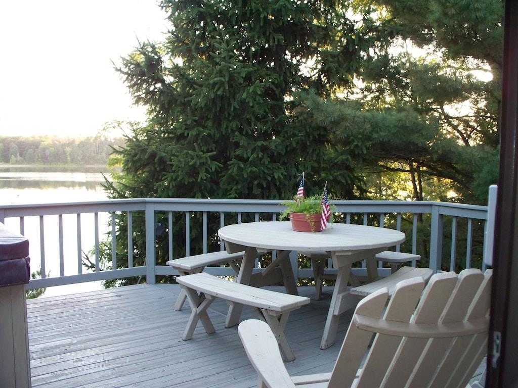 Little Hills Lake year-round vacation home offers a well-managed income producing lake property with over 100 feet of firm sand frontage on a full recreational lake in the heart of Wautoma Wisconsin. This turnkey home offers 3 bedrooms and 2 full baths + sauna room, open living area that leads to a large deck with hot tub to enjoy the sunset views. Steps lead to a private yard with a firepit to enjoy the peaceful evenings at the lake. Lakeside deck for spending time at the beach while you decide what water sports to explore each day. The home has been updated and comes with all the furnishing to continue the rental program making for an easy transition to steady income as well as personal usage options along the way. Big garage provides plenty of storage for the cars, boats & water toys!