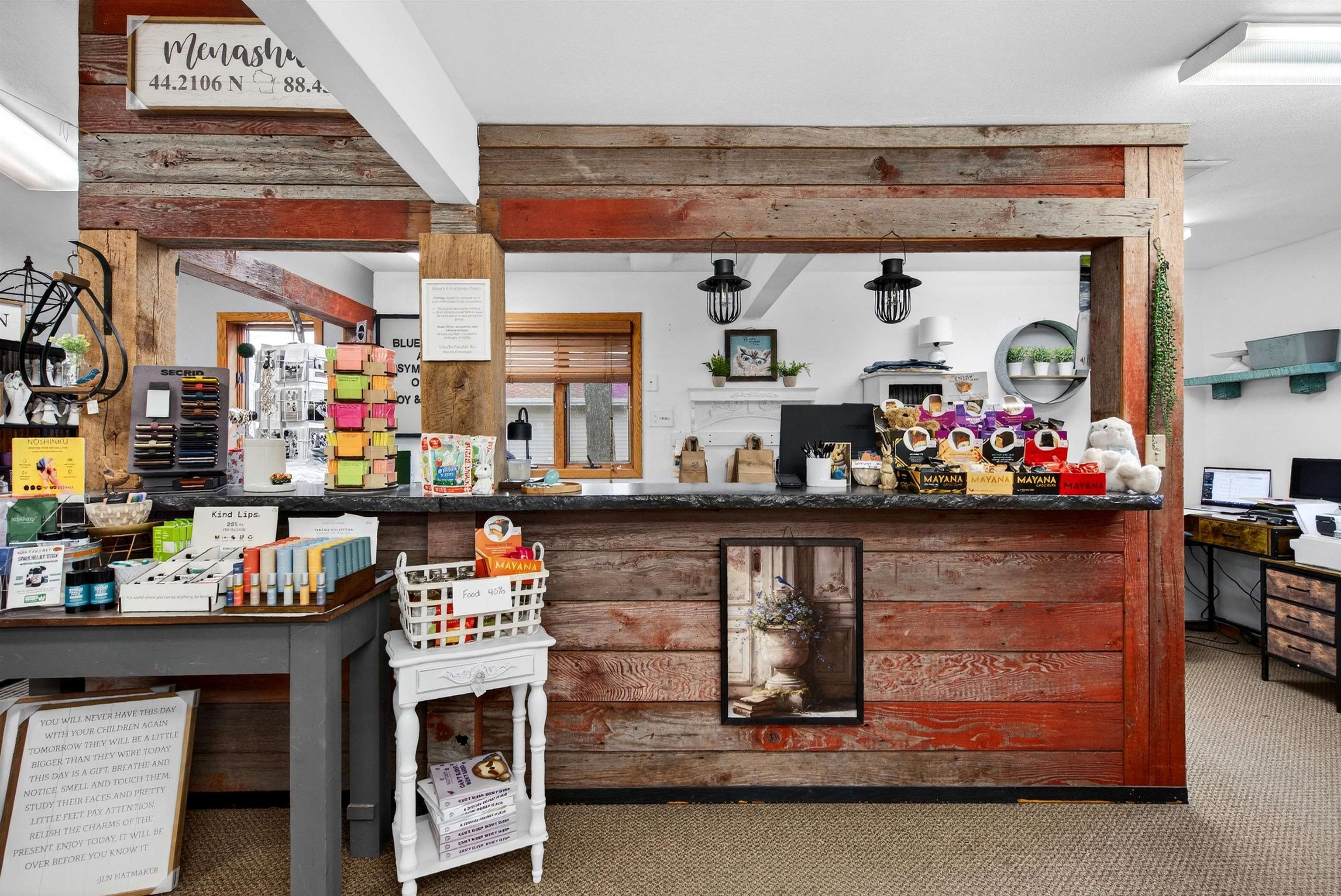 Well-suited for retail, office, service-based businesses, or contractor use, this commercial property offers 4,024 sq ft with a functional and flexible layout. The main level includes a large open shop/work area, front counter/reception space, office, and restroom. The full lower level provides additional finished space with multiple rooms, a kitchen area, bathroom, and storage. Situated on a .25-acre corner lot, the property offers strong visibility along Racine St with convenient access to Hwy 441. The building features a poured concrete foundation, forced air heat, central A/C, municipal water and sewer, and onsite paved parking.
